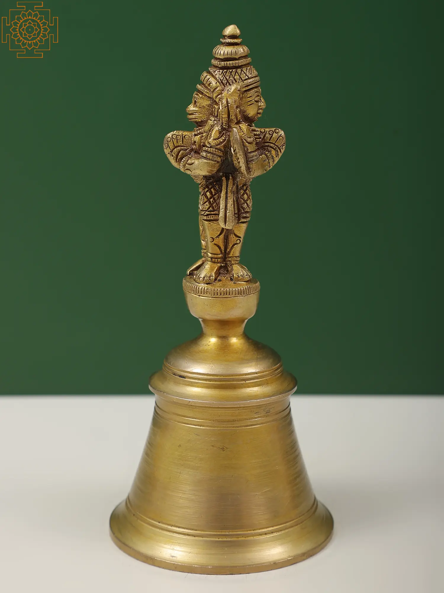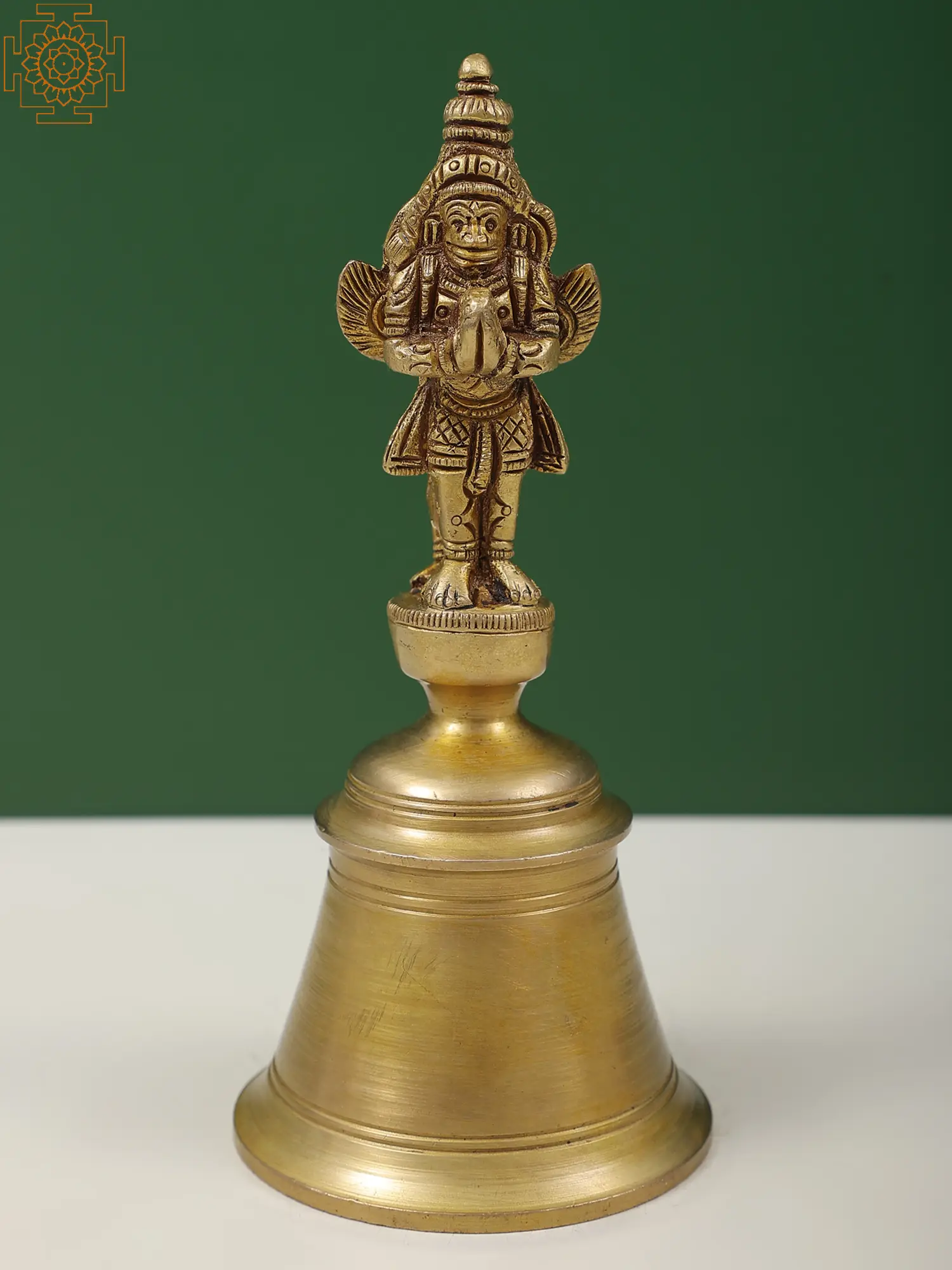 This is a handheld bell that contains the forms of Lord Hanuman on one side and Lord Garuda on another side.