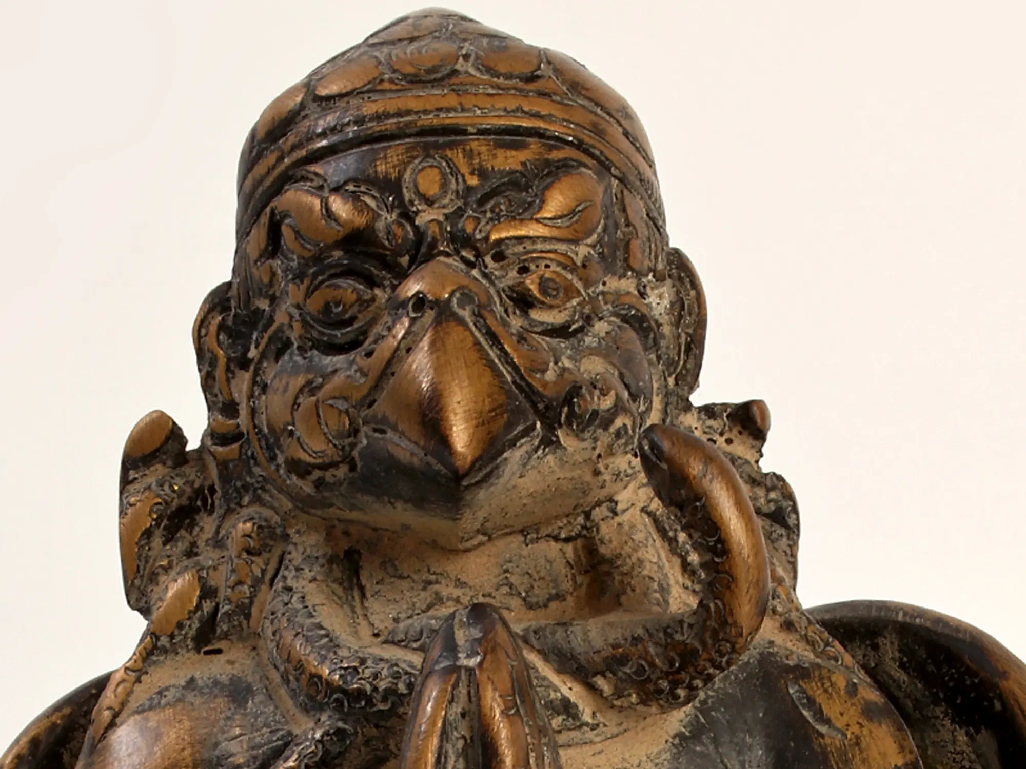 A superbly intelligent humanoid bird with a wingspan of many miles, the flapping of Its wings is known to block out the sun and send off tornadoes on either side. This glowing brass sculpture in which He is poised in divine greeting is a great token of welcome in a home or an office.