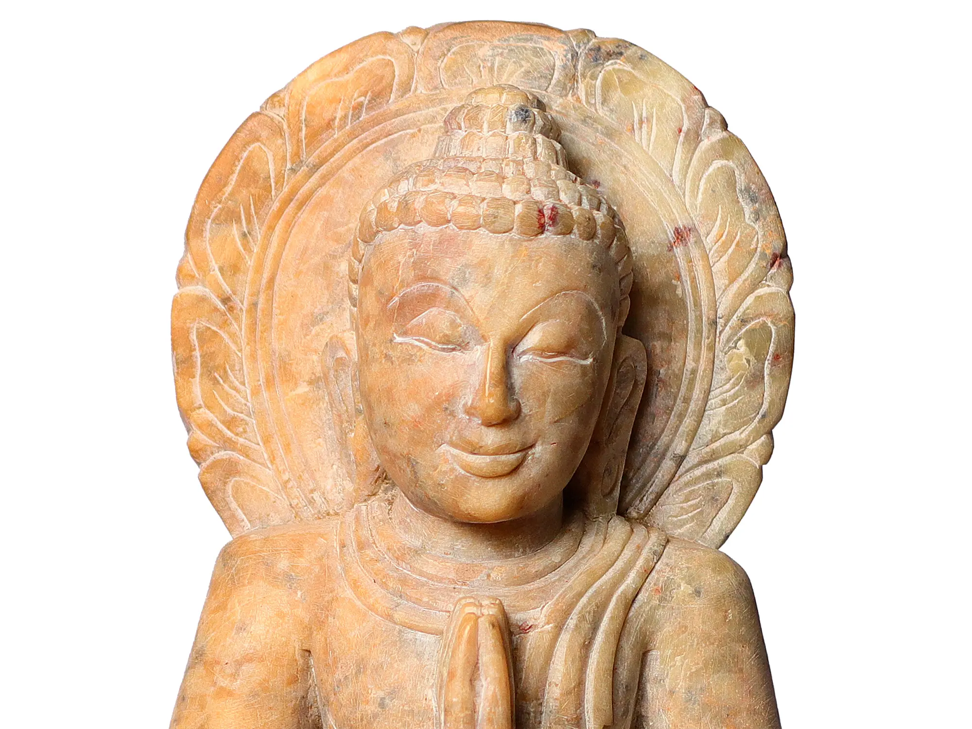 Originating from the rich artistic landscape of Odisha, India, renowned for its ancient temples and skilled artisans, this statue embodies a heritage deeply rooted in spirituality and craftsmanship. The natural variations in the pink stone lend a unique character to each piece, making yours a truly individual representation of this sacred form. The subtle tones and textures of the stone evoke the earth from which it was carved, grounding the spiritual essence of the Buddha in a tangible, beautiful reality.