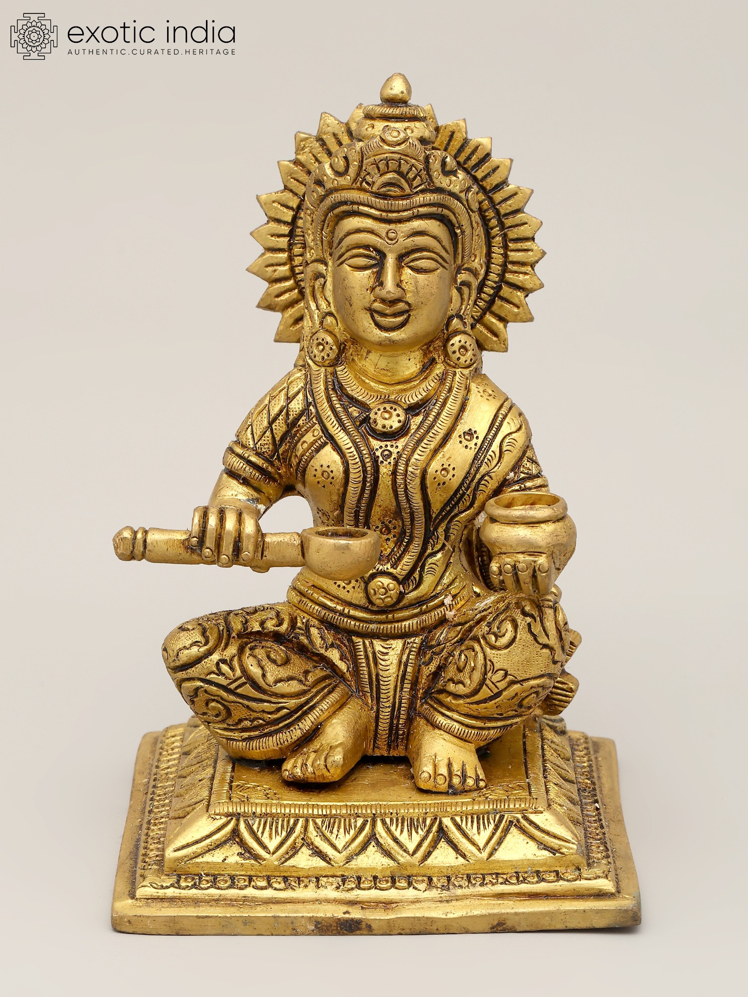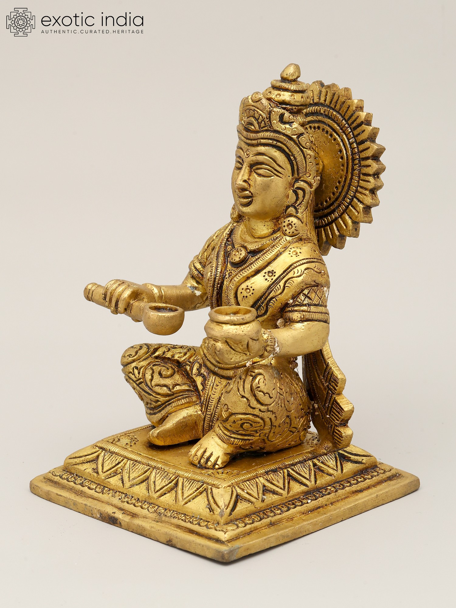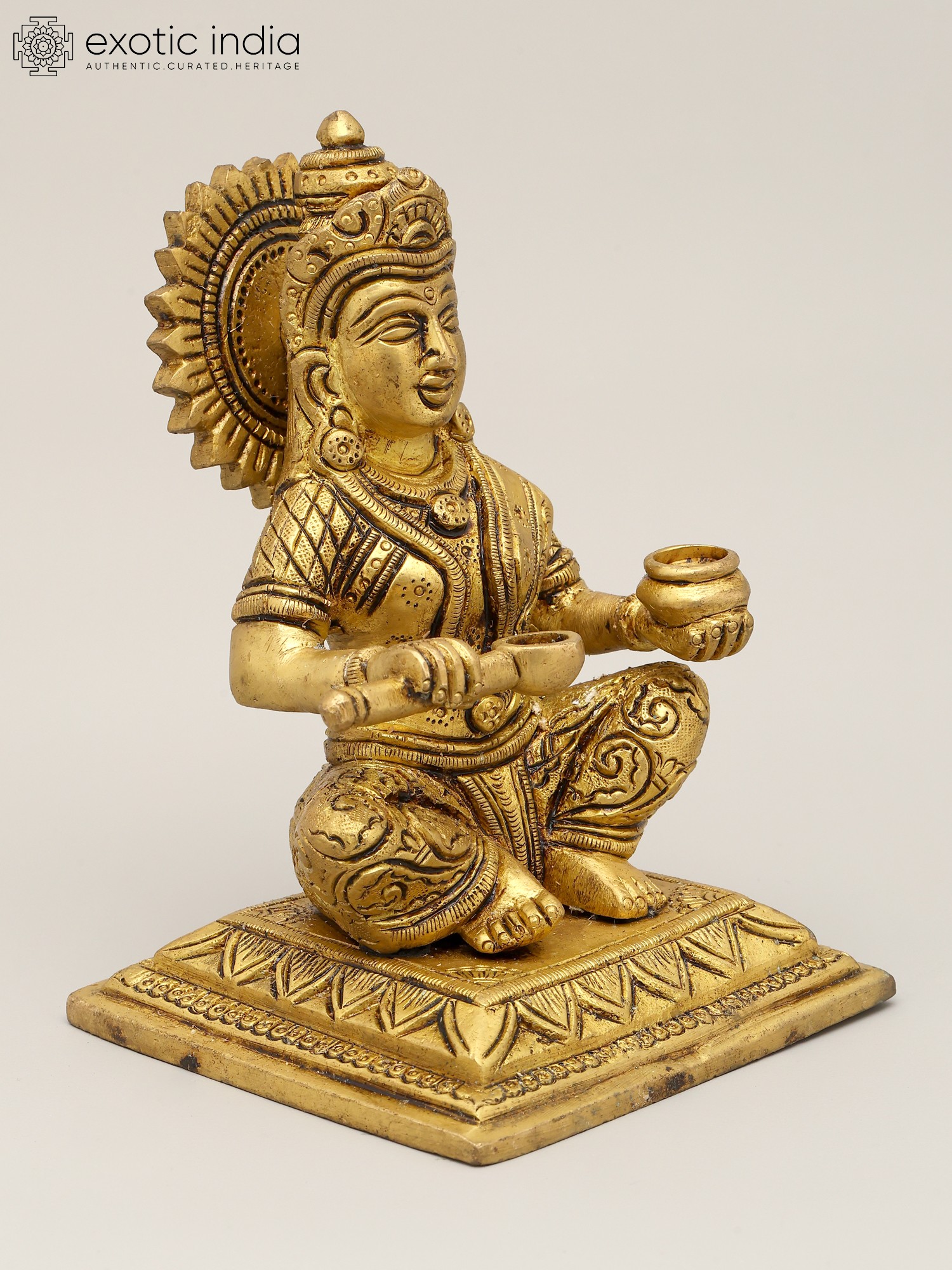 16" Brass Goddess Annapurna Idol Seated on Pedestal
