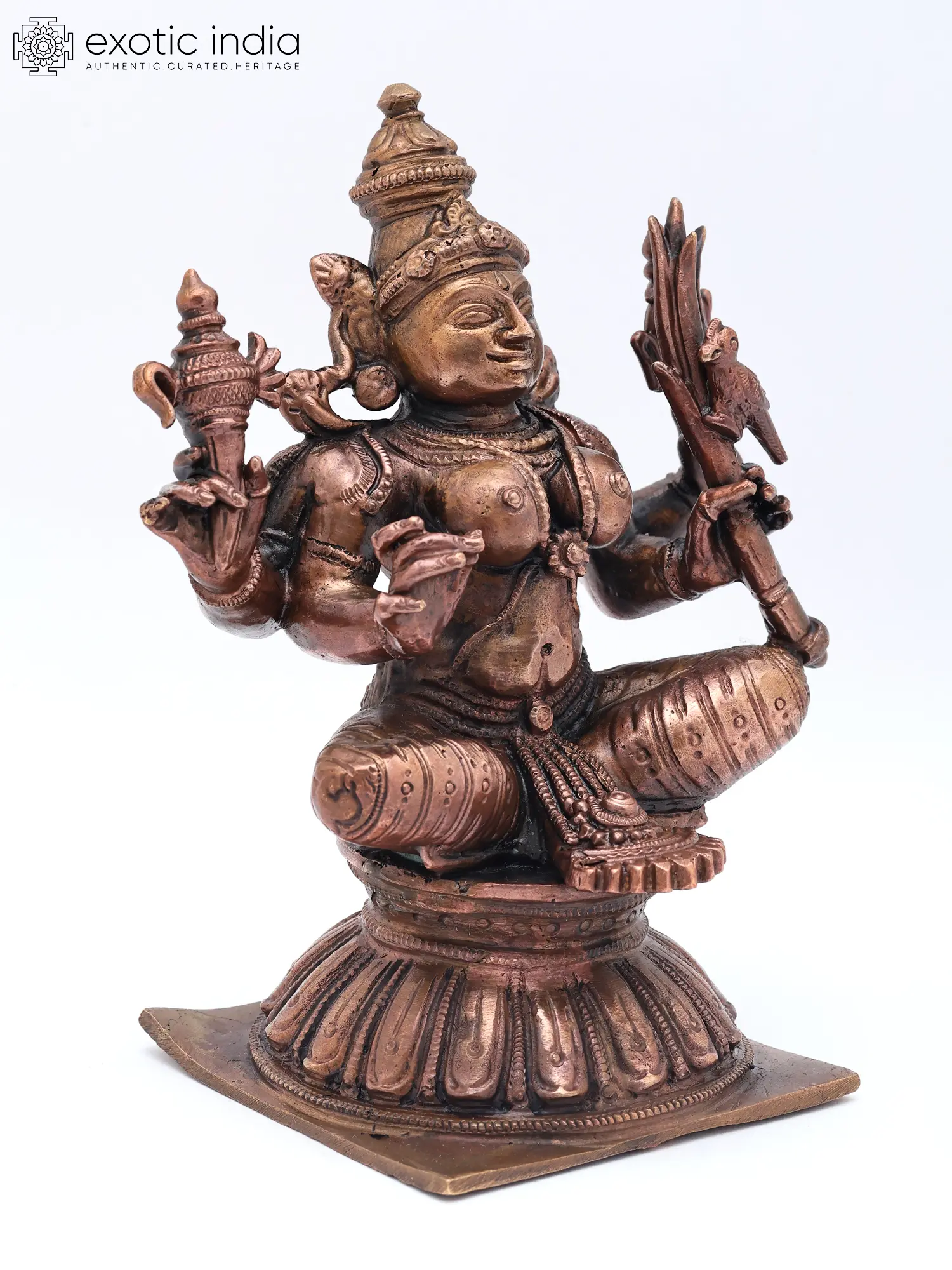 6" Goddess Kamakshi - Divine form of Goddess Parvati | Copper Statue | Made in India