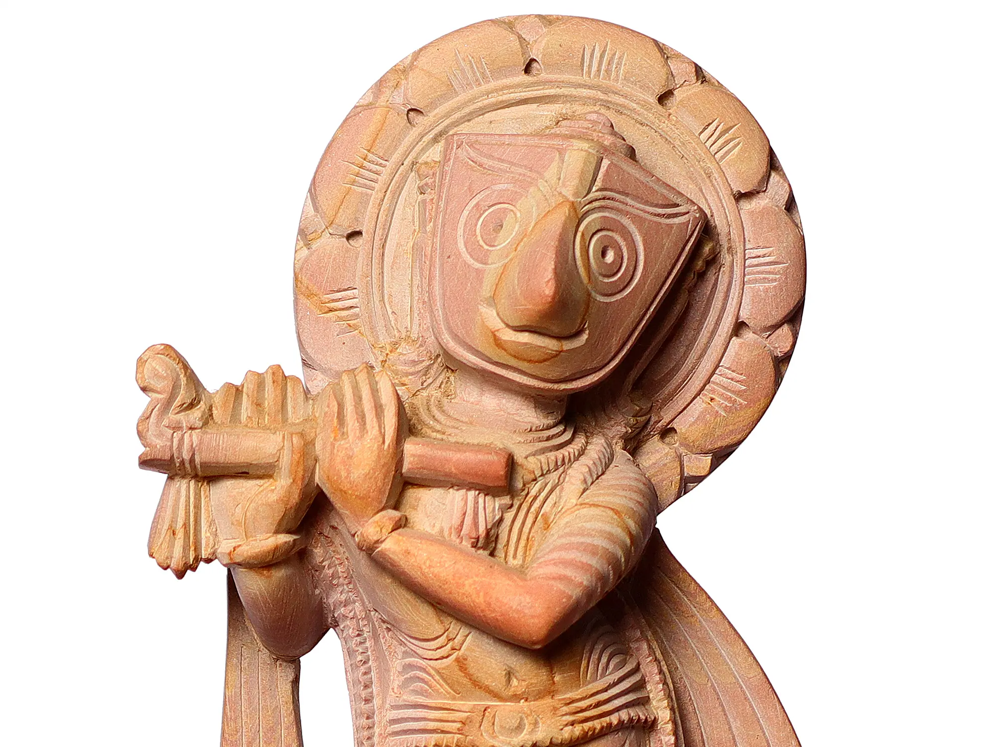 15" Lord Jagannath With Balabhadra And Subhadra Pink Stone Statue