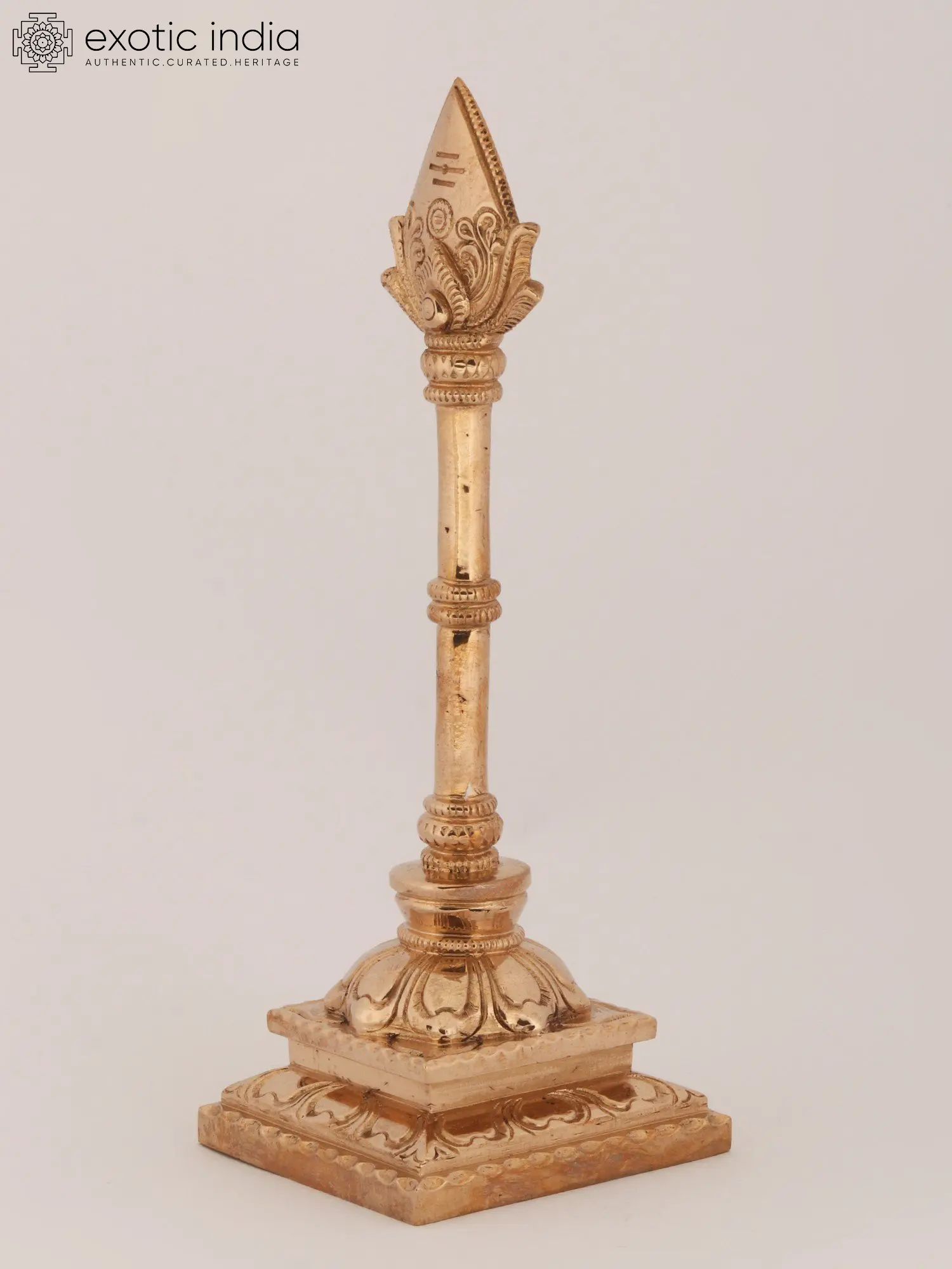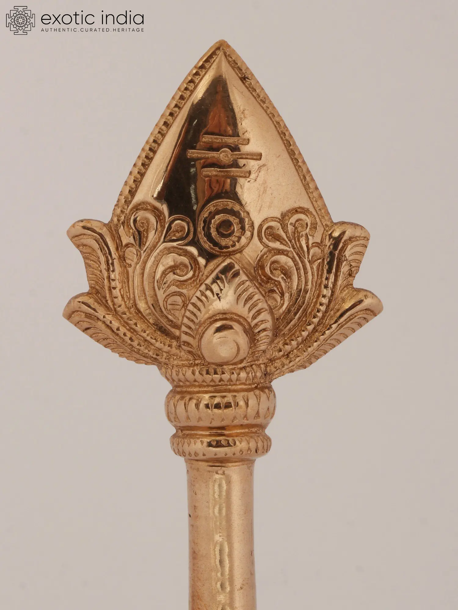Murugan's Vel is seen as a stand-in for the Lord himself. Lord Murugan is supposed to have received the Vel from his mother, Parvati, as the tremendous Shakti (Parashakti) power that dispels all illusions and allows him to study things logically. This wonderfully created bronze sculpture has the distinctive Tripundra, which represents Lord Shiva's holy ash marks, and the Tilak, which represents spiritual wisdom, on the forehead. The statue is intelligently positioned on a lotus pedestal, emphasizing the deity's relationship with beauty and transcendence.