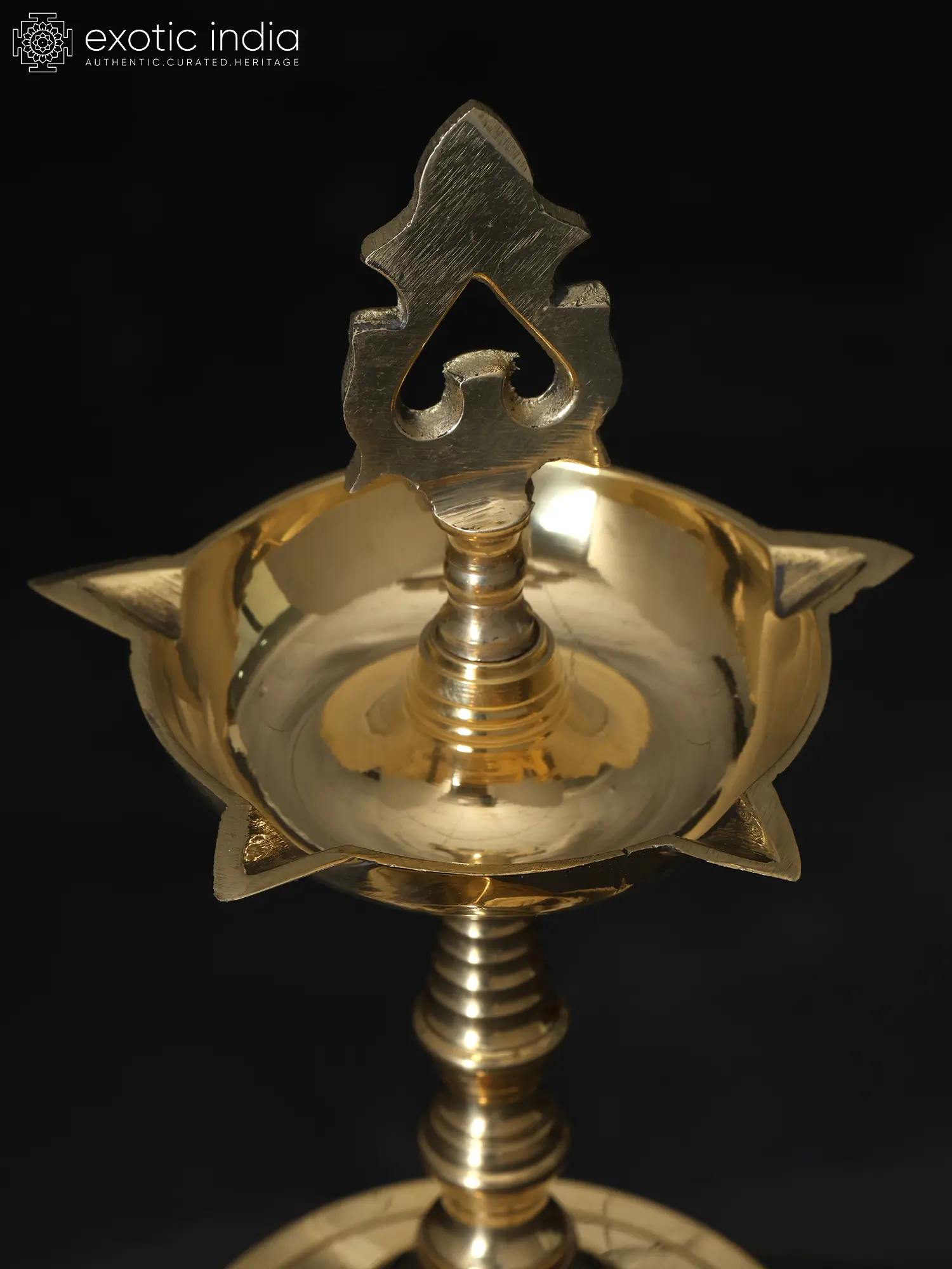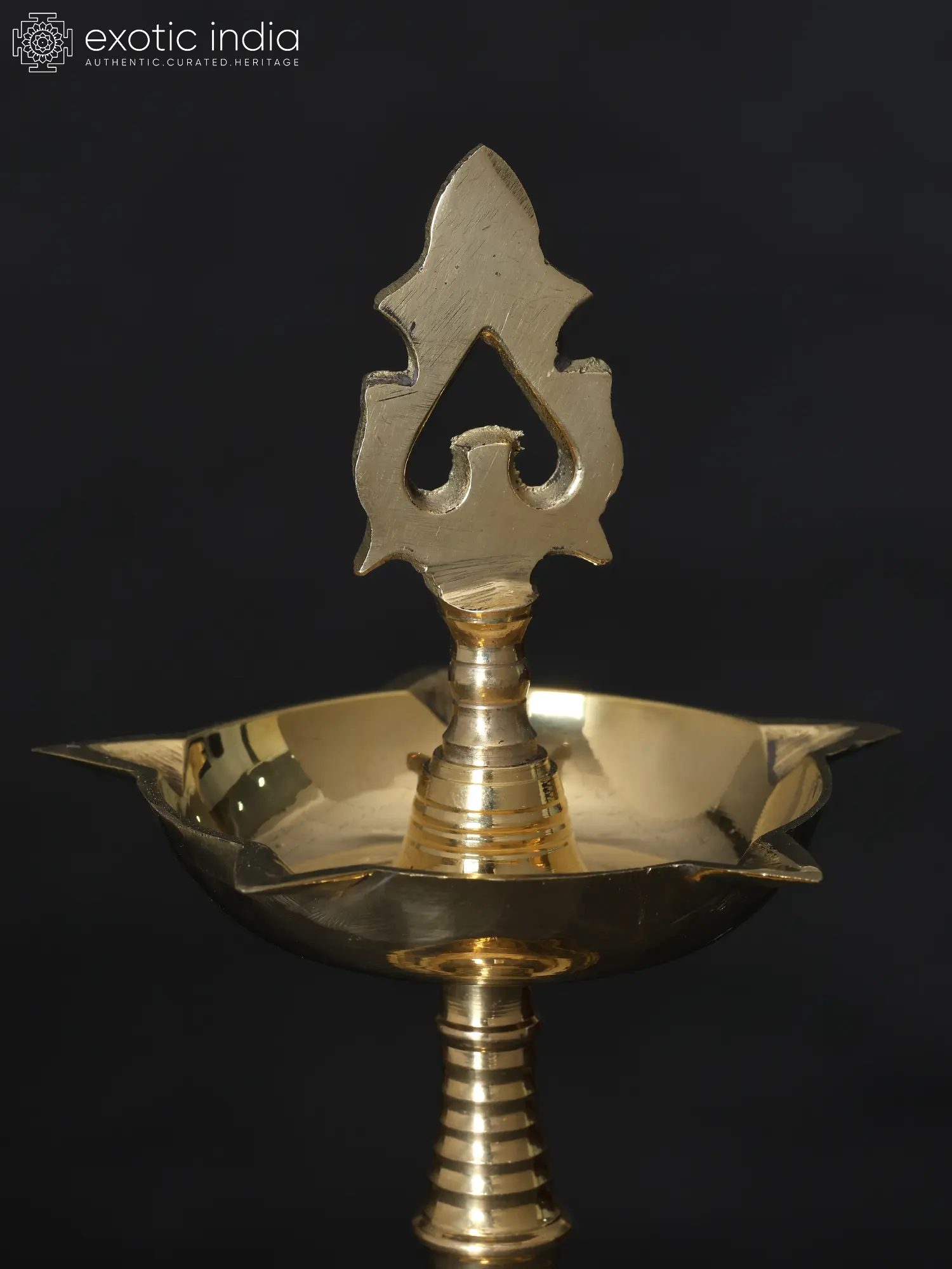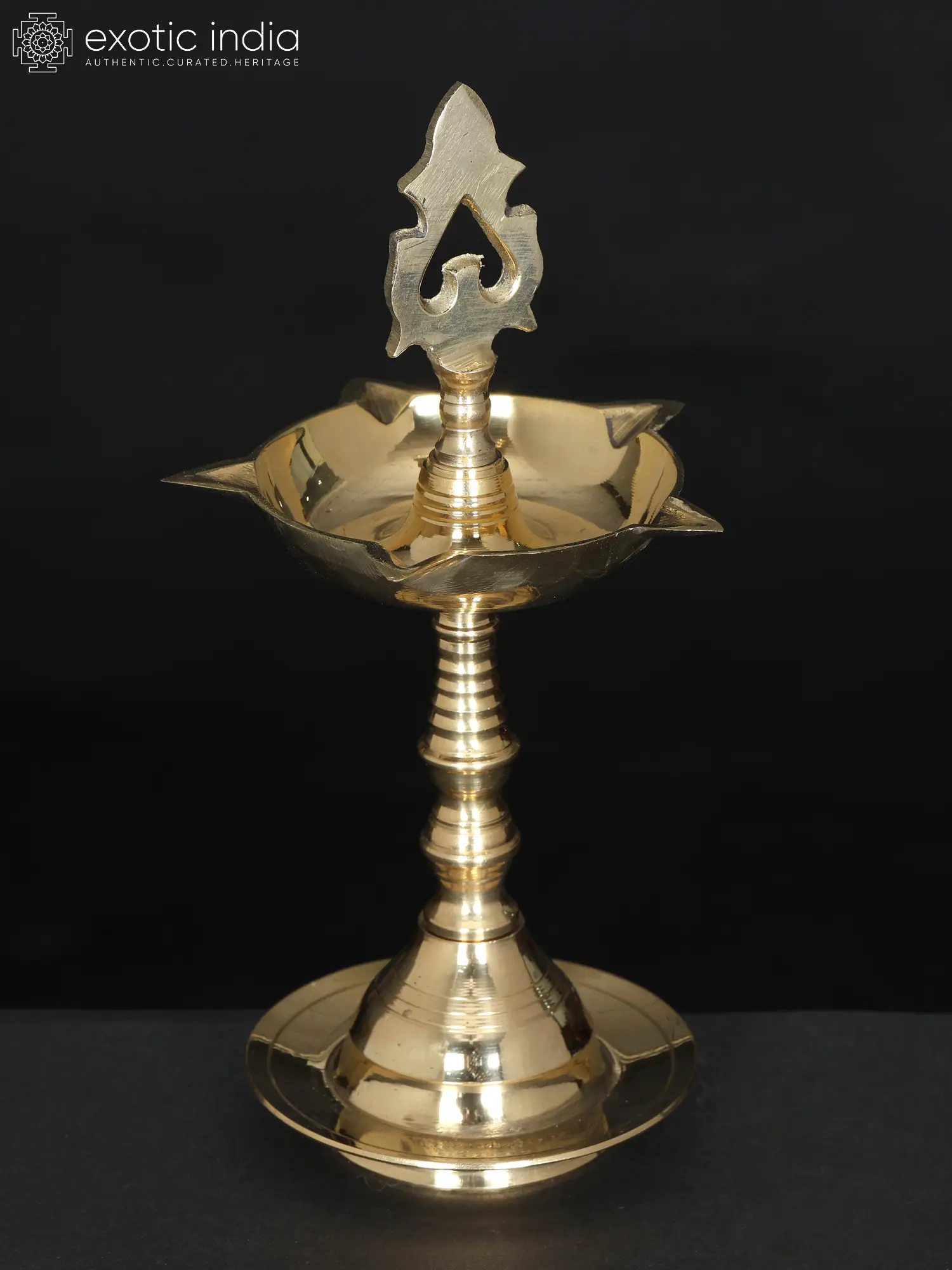 6" Indian Brass Pooja Lamp (Deepam) with Leaf Top