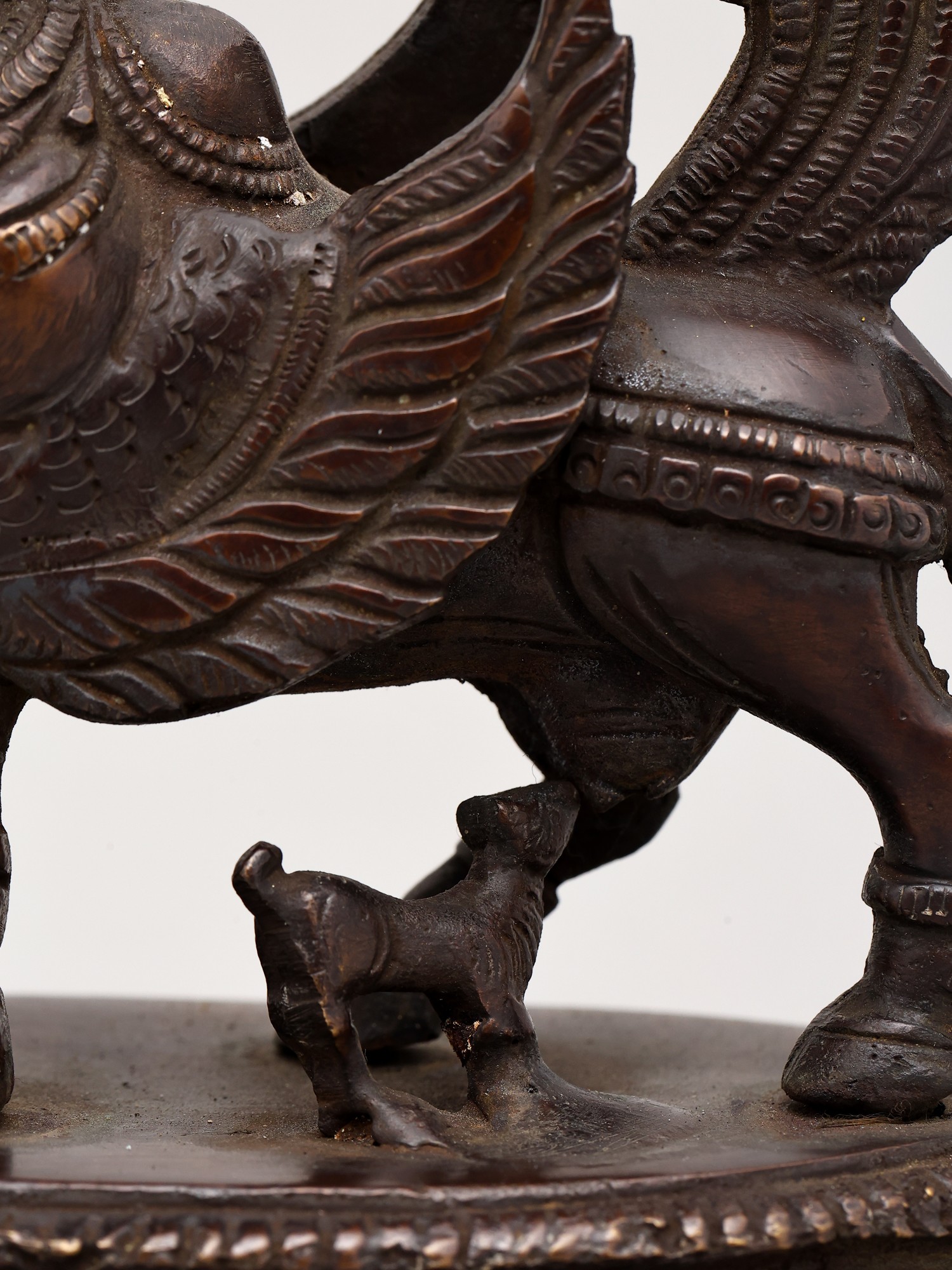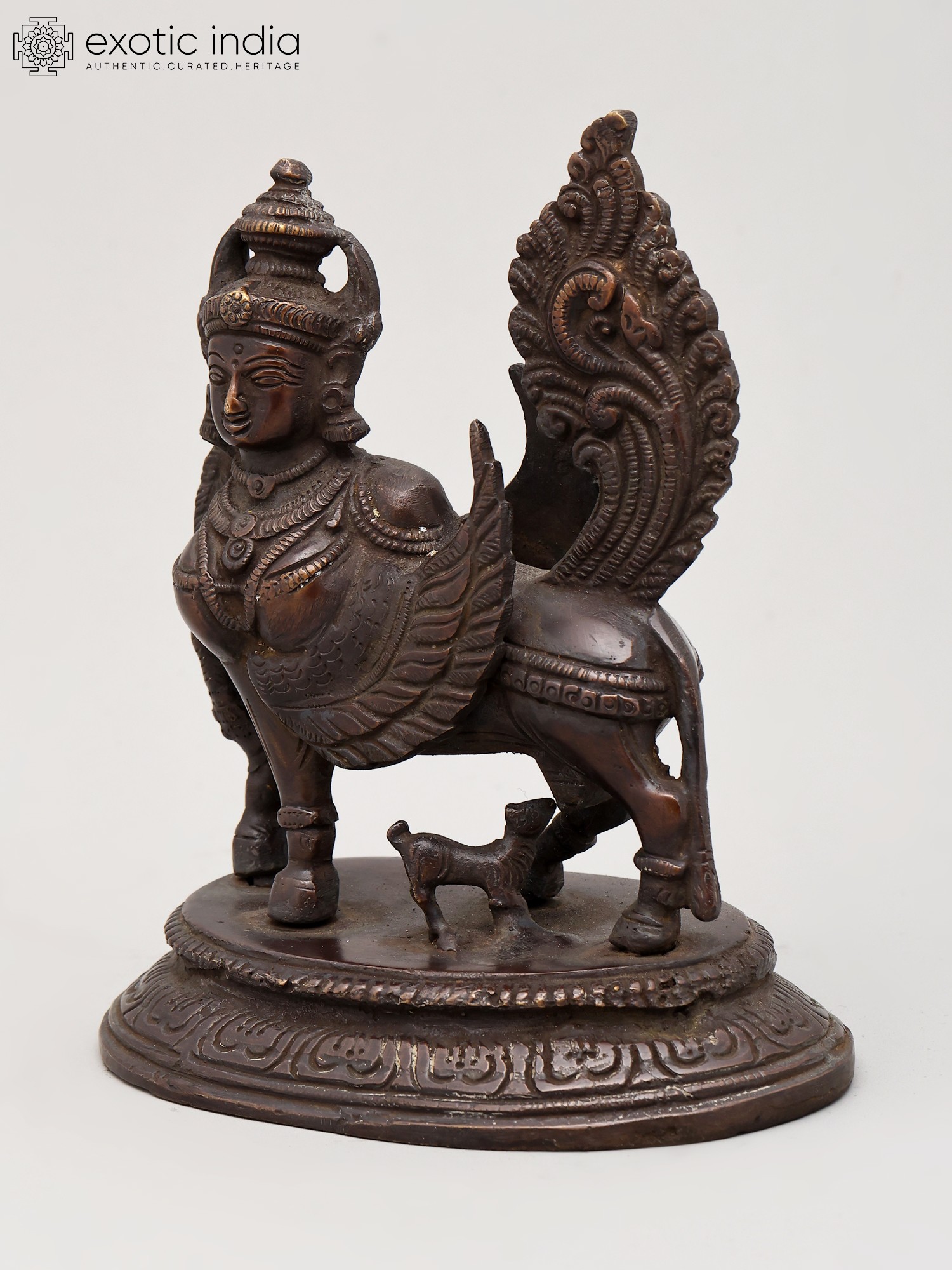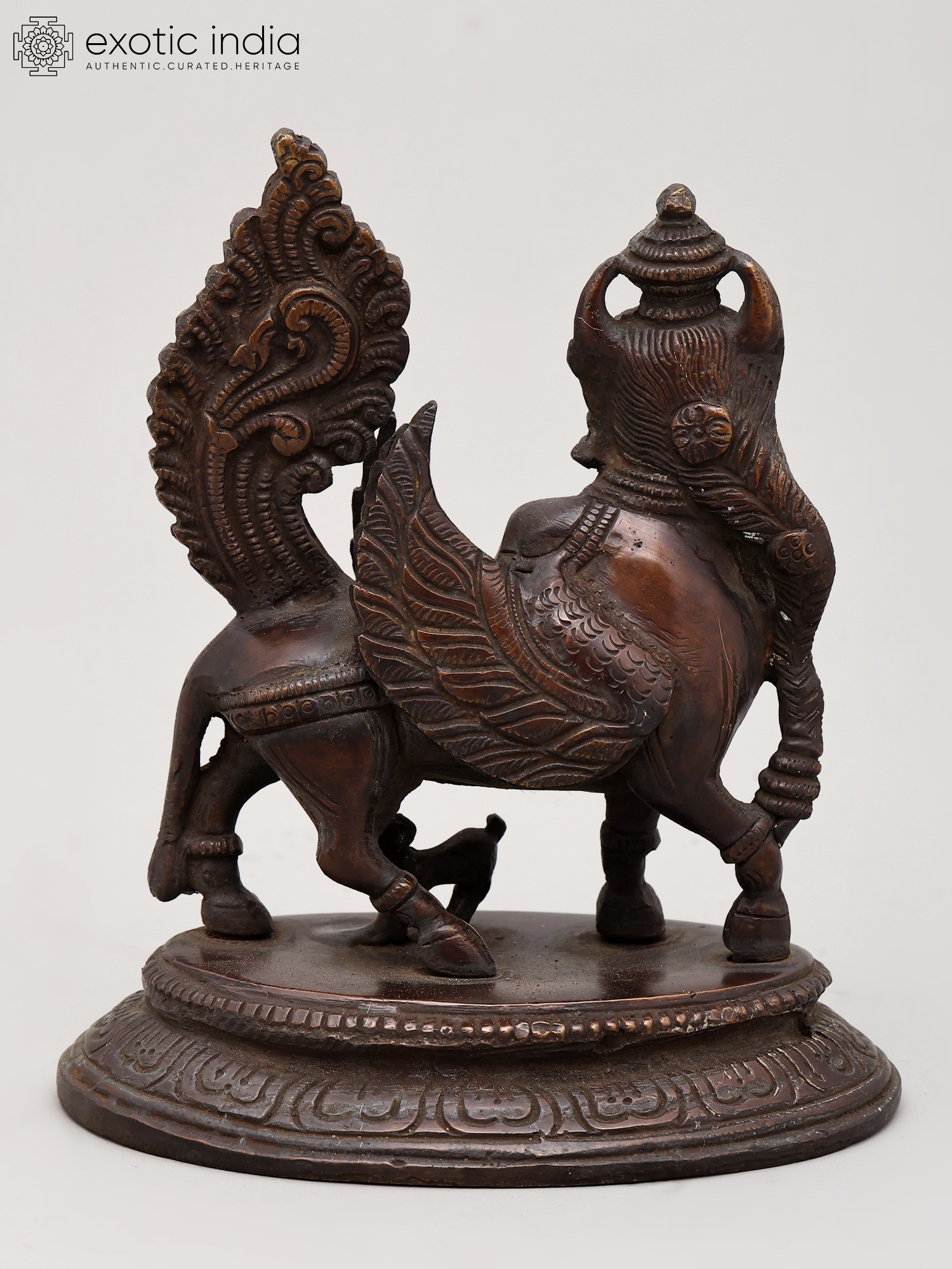 Crafted with the mastery that transcends time, this sculpture portrays Kamadhenu in all her resplendent glory - Kamadhenu, the cow of miracles, radiates an aura of abundance and celestial grace, inviting us to seek her blessings for our material and spiritual endeavours. Cast in the enduring elegance of artistic representation, this brass sculpture stands as a tribute to the legends and beliefs that have shaped cultures for ages. The intricacies of Kamadhenu's form evoke the aspiration for a life marked by fulfilment, inspiring us to cherish both the earthly and the divine.