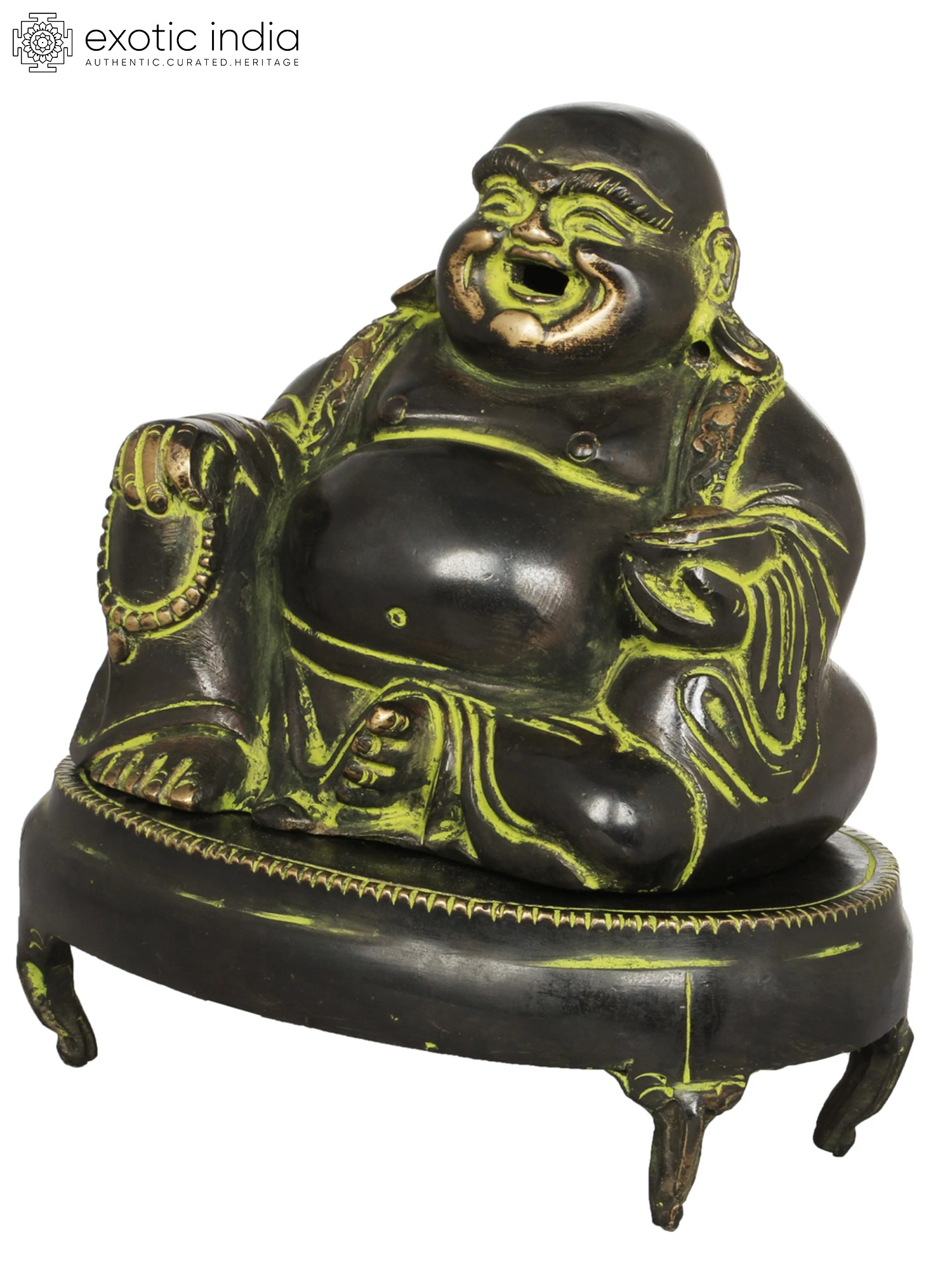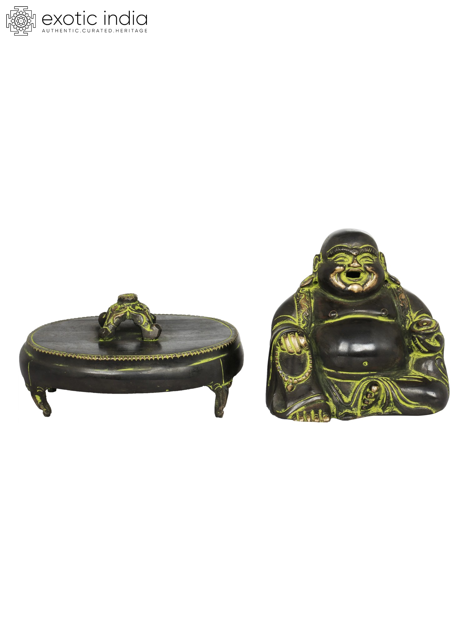 This Laughing Buddha Incense Burner in Brass is both a symbol of joy and a functional incense holder. Burning incense is a very special ritual in many cultures. Loban, or the perfumed resin, is burnt to create an aromatic smoke that cleanses the air. This jovial figure radiates positive energy and is a beautiful and tranquil way to fill your space with the fragrant incense of Loban, bringing an aura of happiness and abundance.
