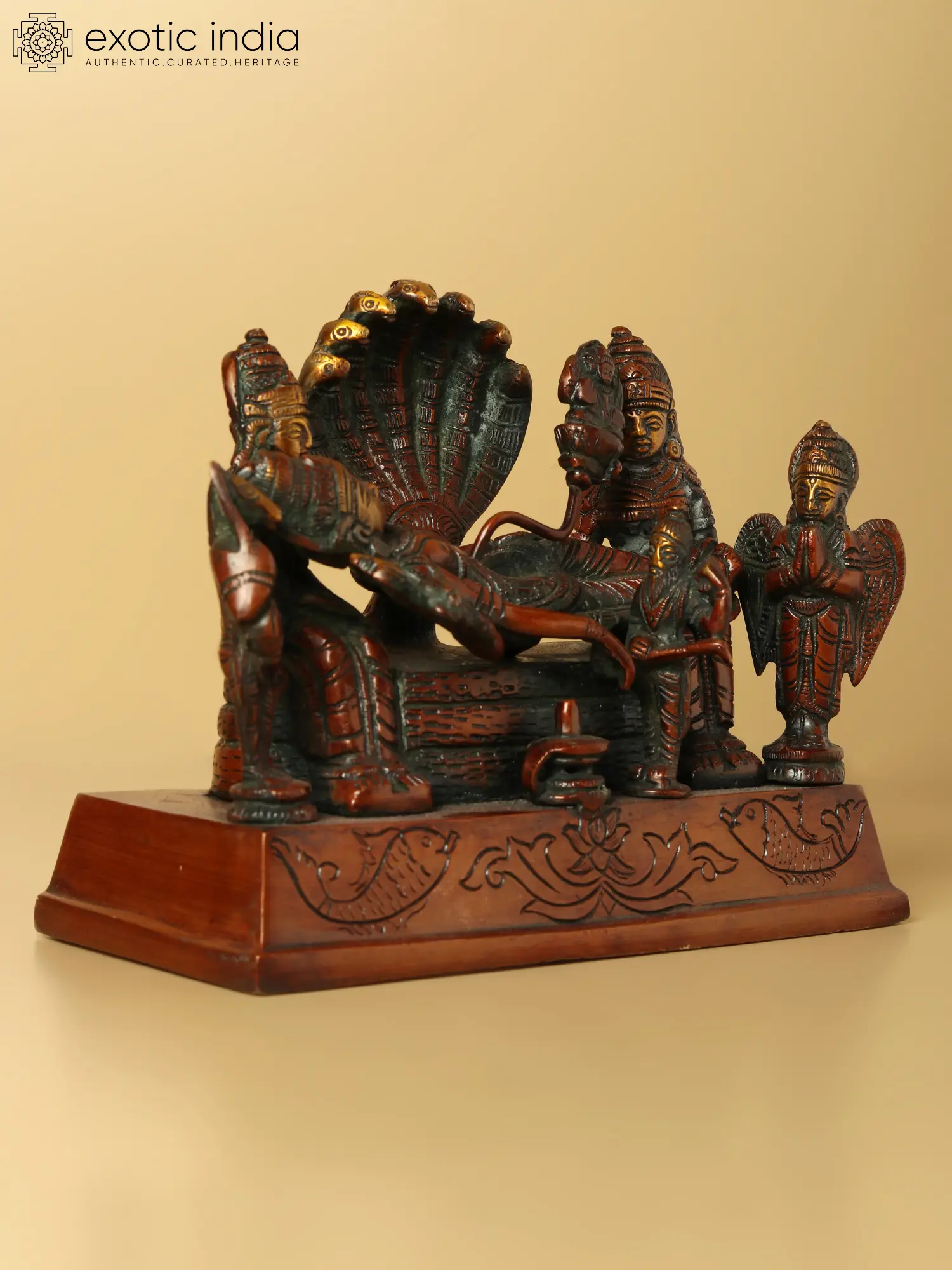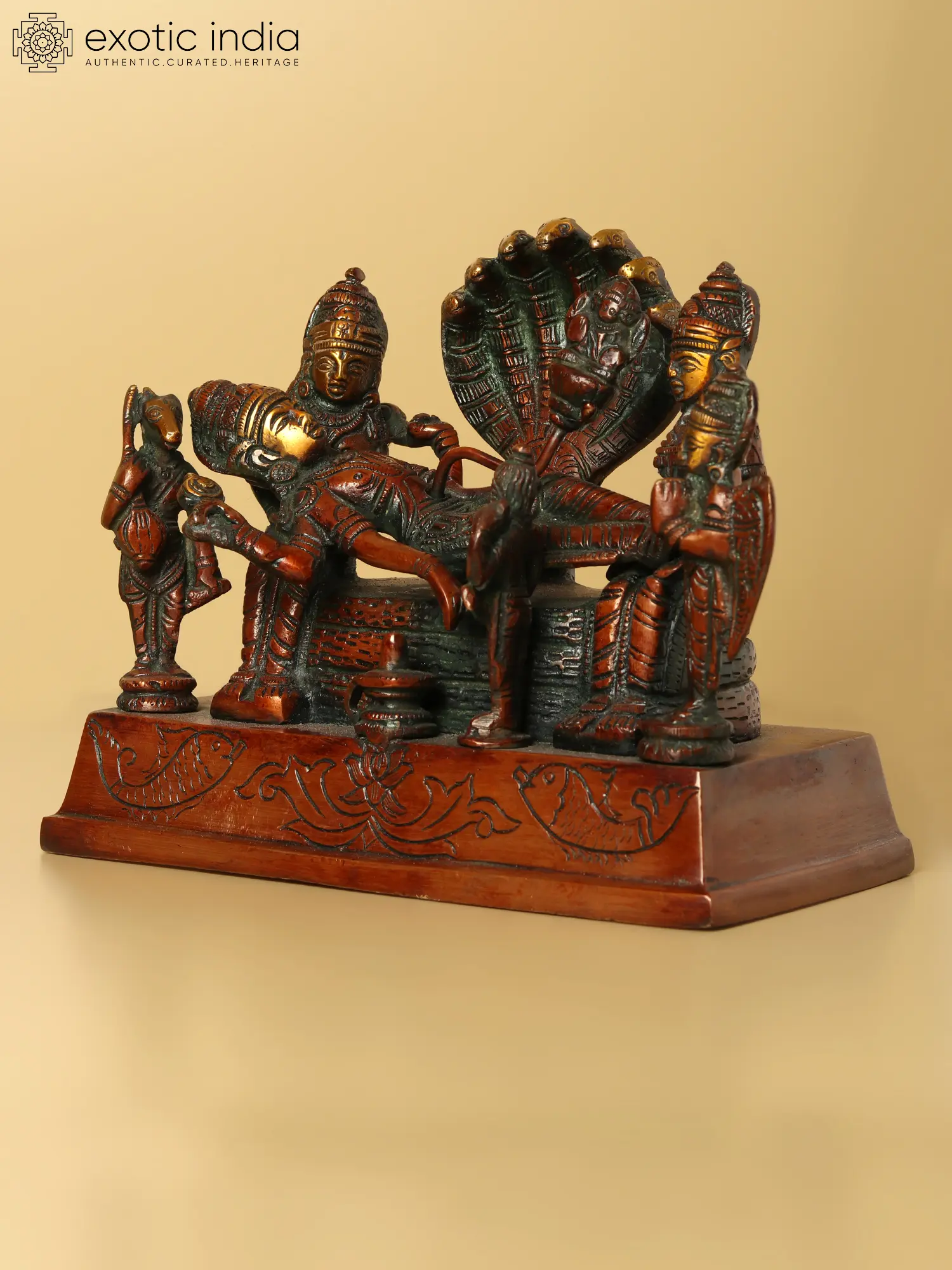 In the quietude of eternity, where the threads of cosmos intertwine, emerges a masterpiece that beckons us to contemplate the intricate dance of creation. This sculpture transcends mere craftsmanship, elevating itself to a symphony of spiritual symbolism and profound contemplation. As the molten brass flowed like rivers of time, skilled hands sculpted every detail with a reverence reserved for the divine. Lord Brahma, the creator of all existence, rises ethereally, his four heads aglow with the wisdom of the ages. The very act of his emergence from the navel of Lord Vishnu embodies the eternal cycle of creation, preservation, and dissolution, echoing the heartbeat of the universe.