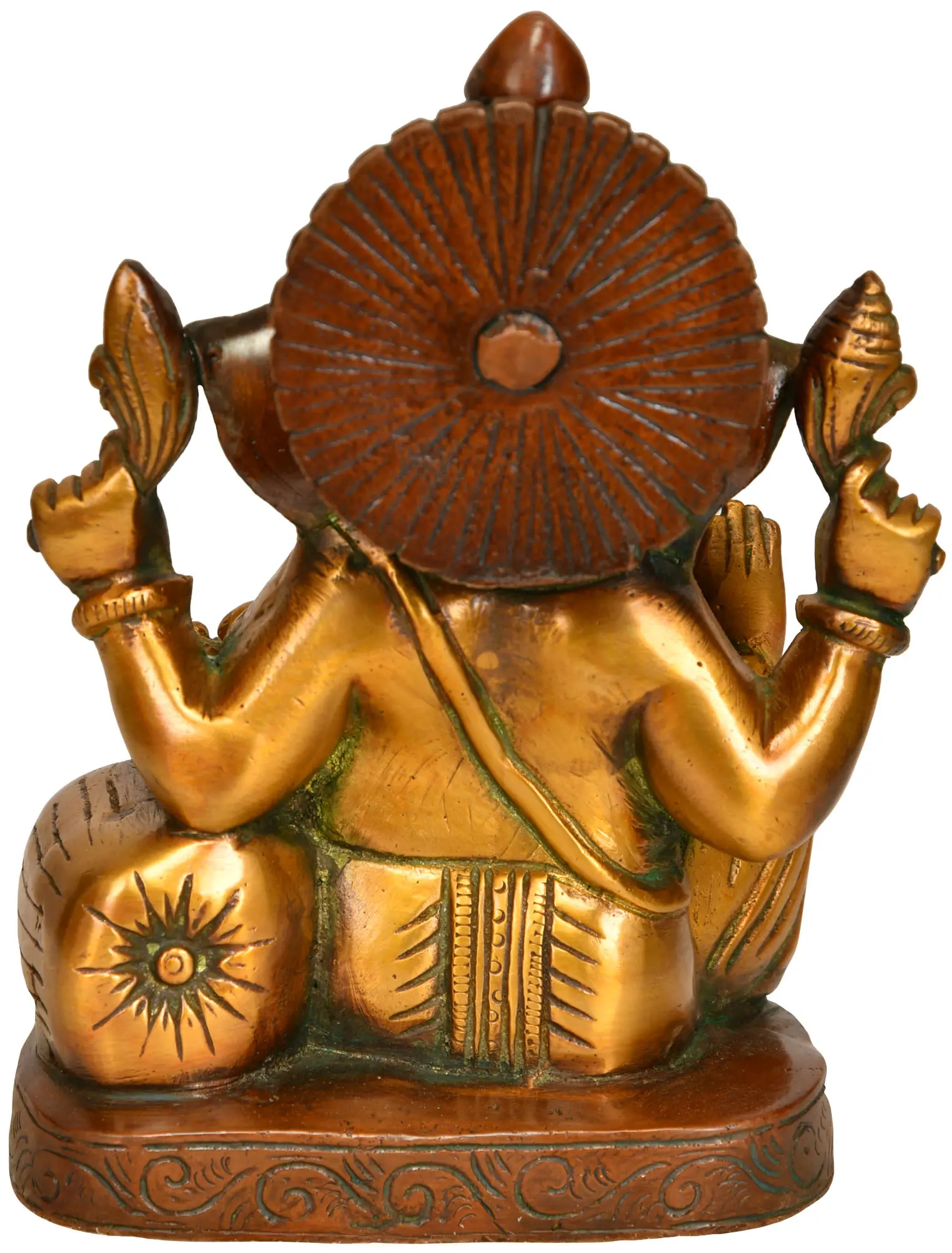 This serene Lord Ganesha in brass becomes more than a sculpture – it is an embodiment of timeless wisdom, an eloquent expression of the cosmos, and a source of solace for the seeker's soul. Elevate your space and spirit with this masterpiece, and let the presence of the divine grace your life with unwavering serenity and boundless inspiration.