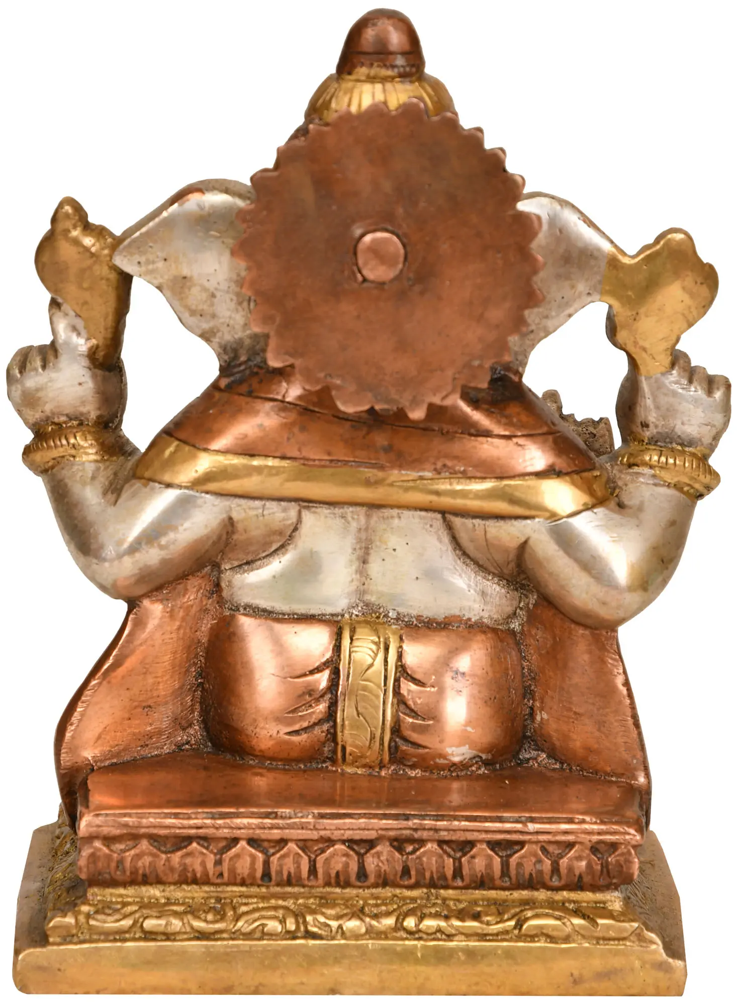Upon his lotus patterned plinth, Ganesha sits like a sovereign monarch, his presence permeating the atmosphere with an undeniable aura of power. The intricate details that grace his form are not just symbols, but verses etched onto the canvas of his being – they narrate tales of cosmic creation, the dance of dualities, and the union of spiritual and material realms.