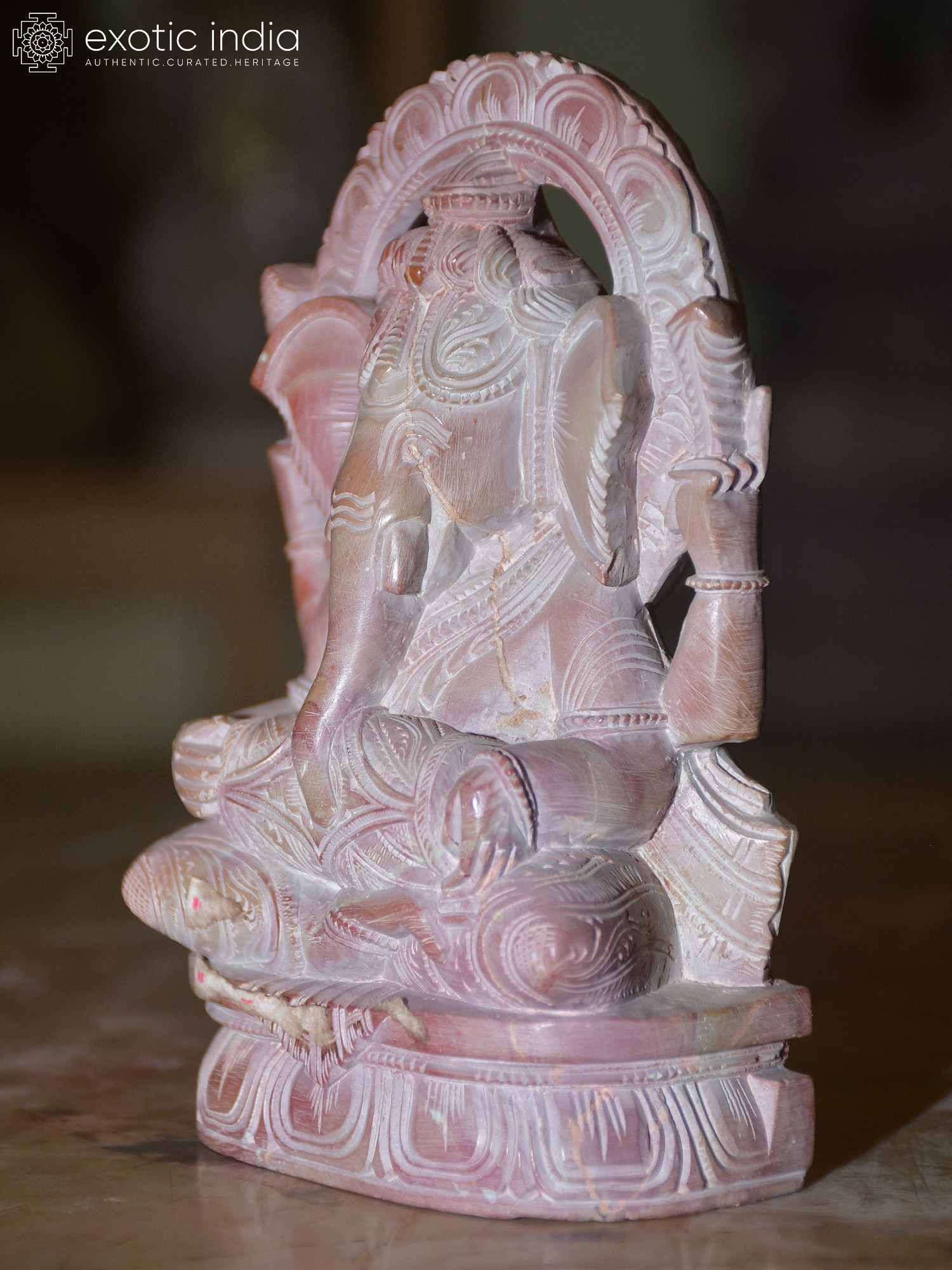 The art of stone carving in Orissa, particularly from the region of Balasore and Bhubaneswar, boasts a legacy that stretches back centuries. The Orissa stone, known for its fine grain and ability to hold intricate details, has been the medium of choice for generations of master artisans. This sculpture is a testament to their skill, evident in the delicate carvings of Ganesha's ornaments, the flowing lines of his dhoti, and the expressive detail of his visage. The arched aureole behind him, a common motif in Indian sculpture, symbolizes divine energy and protection. Each groove and curve is a testament to the artisan's deep understanding of their craft and their devotion to the deity. The very texture of the stone, with its subtle striations, adds a tactile dimension to the visual appeal, making it a truly engaging piece.