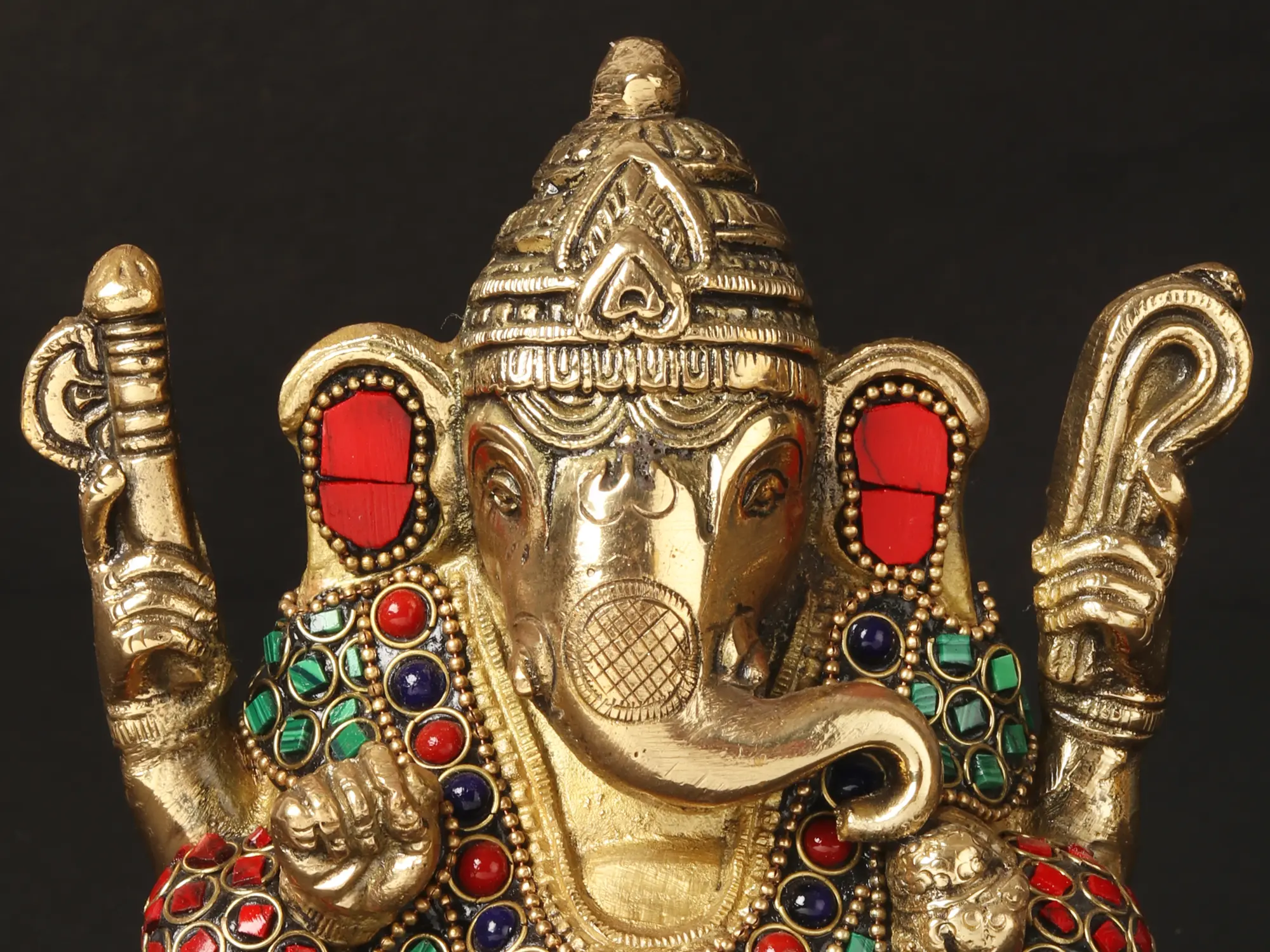 19" Brass Lord Ganesha with Inlay Work | Handmade
