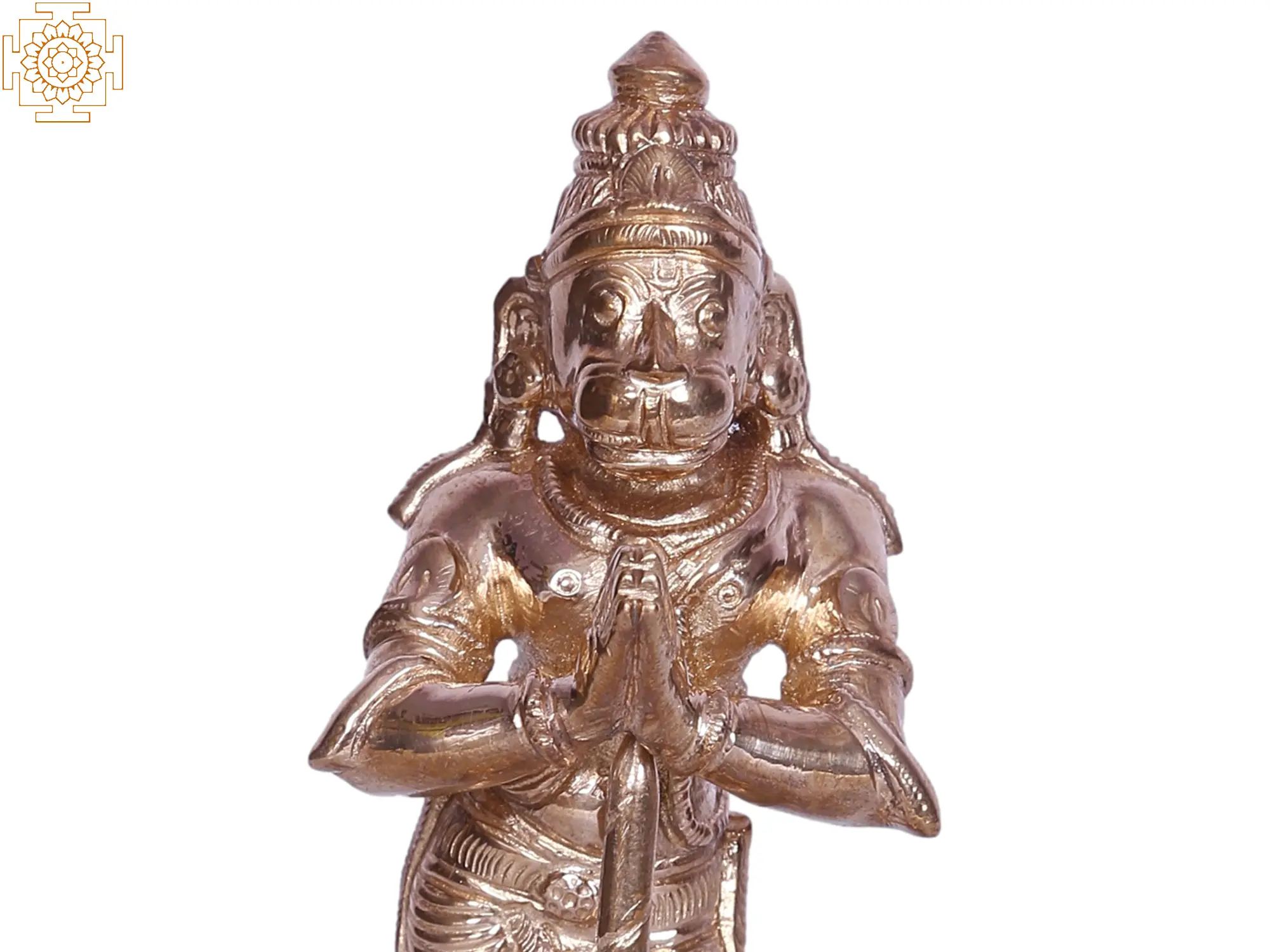 This statue is not merely an idol but a work of art. The skilled artisans have brought Lord Hanuman to life through the ancient and revered method of bronze casting. The lustrous finish of the bronze highlights the sharp features of Hanuman’s face, the musculature of his powerful form, and the intricate patterns of his attire. The base, adorned with traditional motifs, provides a stable and elegant pedestal for the divine figure. The combination of artistic finesse and the enduring quality of bronze ensures this statue will be a cherished possession for generations.