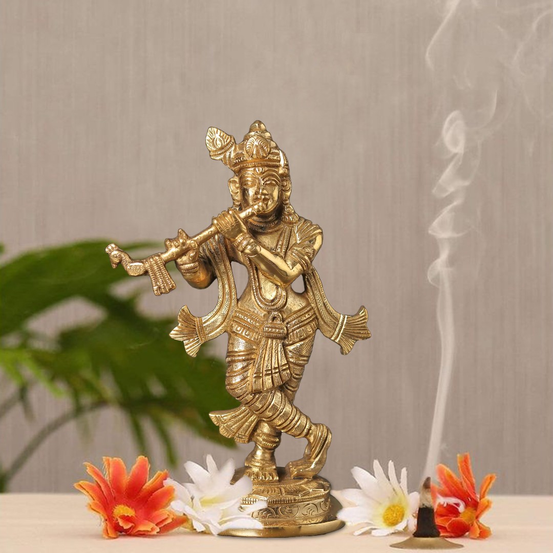 6" Small Bhagawan Krishna Playing Flute | Copper Statue