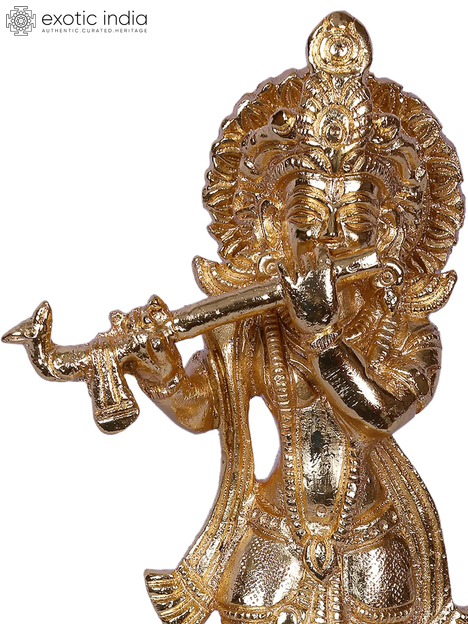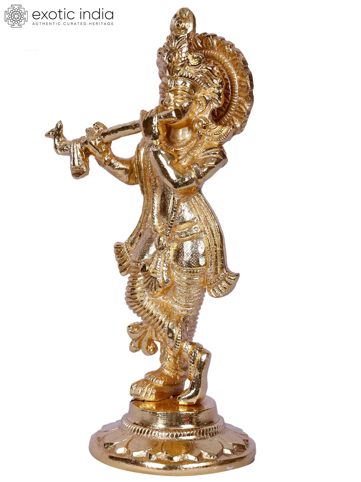 6" Lord Krishna Standing With Flute | Gold Plated Brass Statue