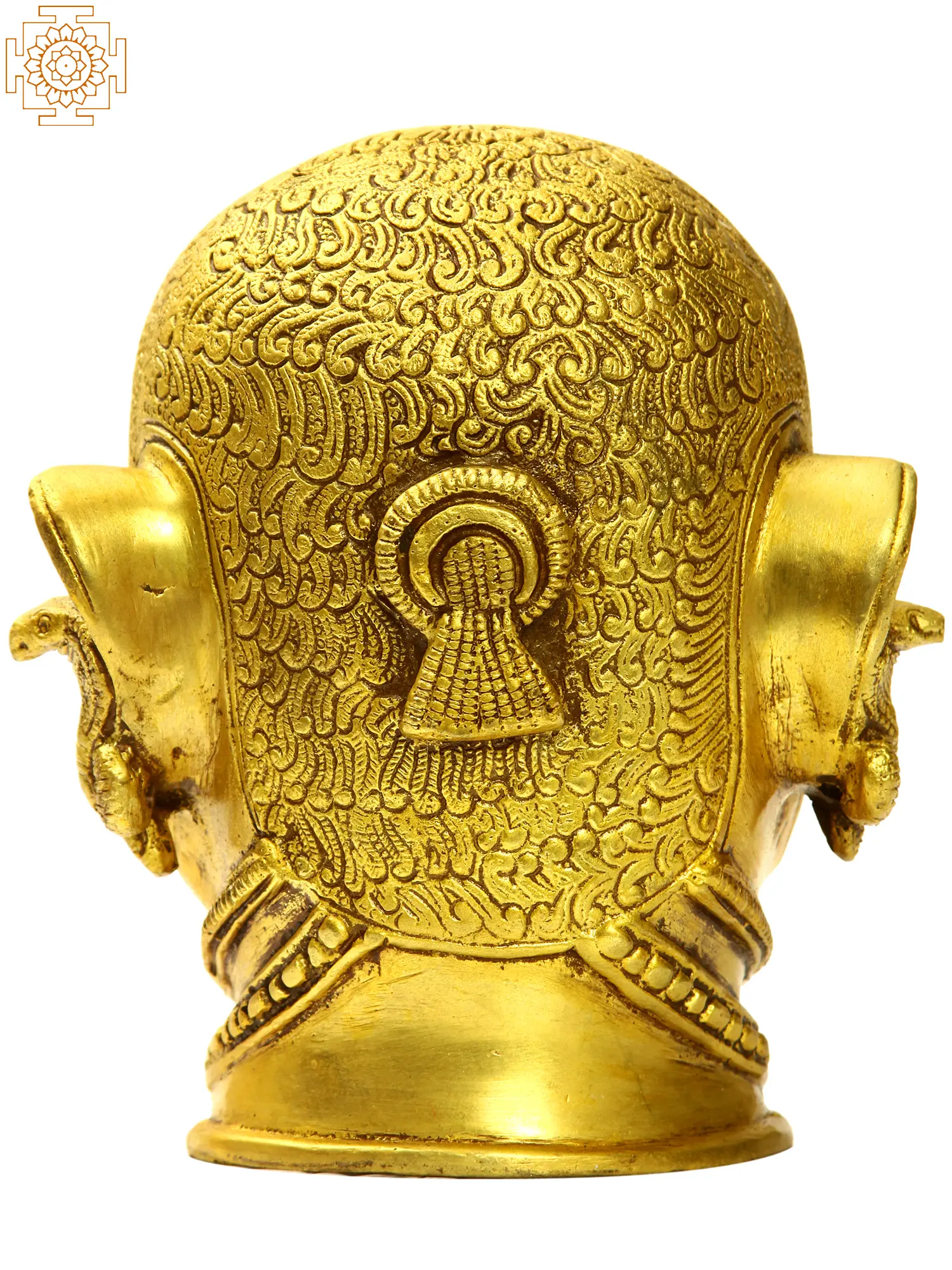 This exquisitely crafted brass sculpture of Lord Shiva as Bhairava (Head) emerges as the fierce Bhairava, embodying the divine force of destruction and transformation. The intricately detailed design captures Shiva's dynamic energy as he bestows blessings upon his devotees. Holding a trident, symbolizing his power to conquer the three realms, Shiva's dreadlocked hair and third eye evoke his untamed and all-seeing nature. The artistry depicts the cyclical nature of life, reminding us of the impermanence of the material world. As we gaze into the eyes of Bhairava, we are urged to embrace change and find enlightenment in chaos.