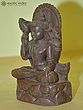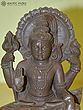 13" Superfine Idol of Four Amred Lord Vishnu with Oil Lamp and Wood Base | Brass Sculpture