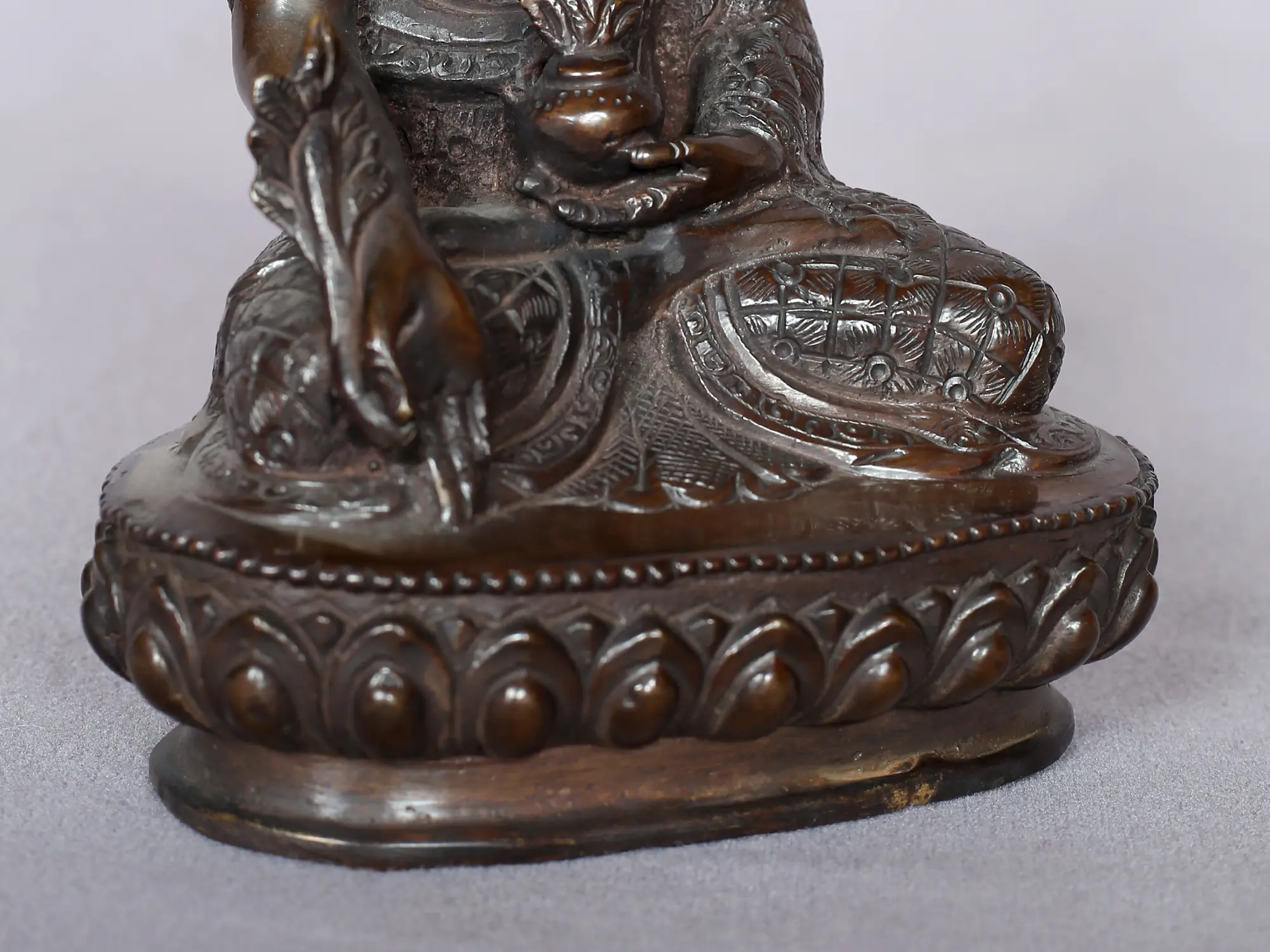 Visualize the Medicine Buddha seated in serene meditation, one hand bestowing fearlessness and the other gently cradling a healing bowl. His compassionate influence extends universally, a comforting guide on the journey toward holistic well-being.
