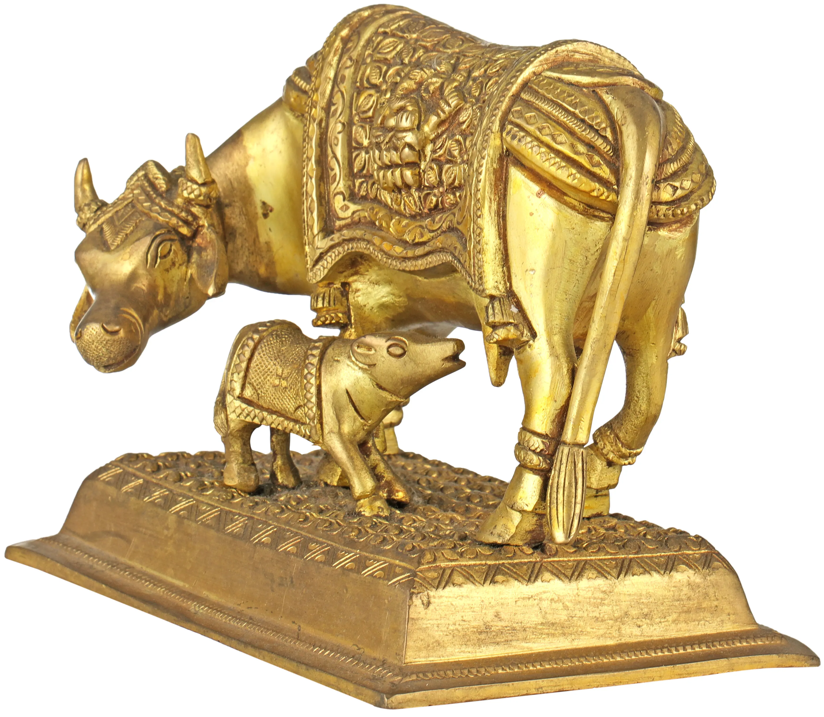 The cow holds a particularly significant place in Hindu mythology and daily life. It is often referred to as "Gau Mata" or "Mother Cow," and is considered a representation of Lakshmi, the goddess of wealth and prosperity. Offering milk from a cow is seen as an act of immense purity and is central to many religious rituals. This statue, therefore, serves not only as a beautiful piece of art but also as a reminder of these deep-seated cultural values. Its presence can bring a sense of tranquility and blessings to any space, be it a home altar, a meditation room, or a living area. The handmade nature of this brass statue ensures that each piece is unique, carrying with it the spirit and dedication of the artisan who brought it to life. It is a piece that will be cherished for its aesthetic beauty and its profound symbolic meaning.