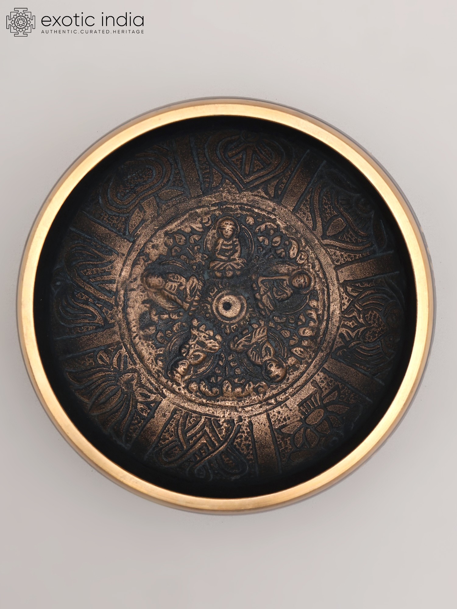 4" Black Tibetan Singing Bowl with Five Dhyani Buddhas Engraving - Sacred Meditation & Sound Healing