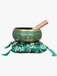 Immerse yourself in the profound tranquility of Buddhist tradition with this exquisite singing bowl. Crafted from high-quality brass and meticulously handmade in India, this bowl is more than just an object; it's a conduit to inner peace and mindful reflection. The rich, emerald green hue, accented with intricate golden detailing, evokes the lush landscapes of the Himalayas, the spiritual heartland of Tibetan Buddhism.
