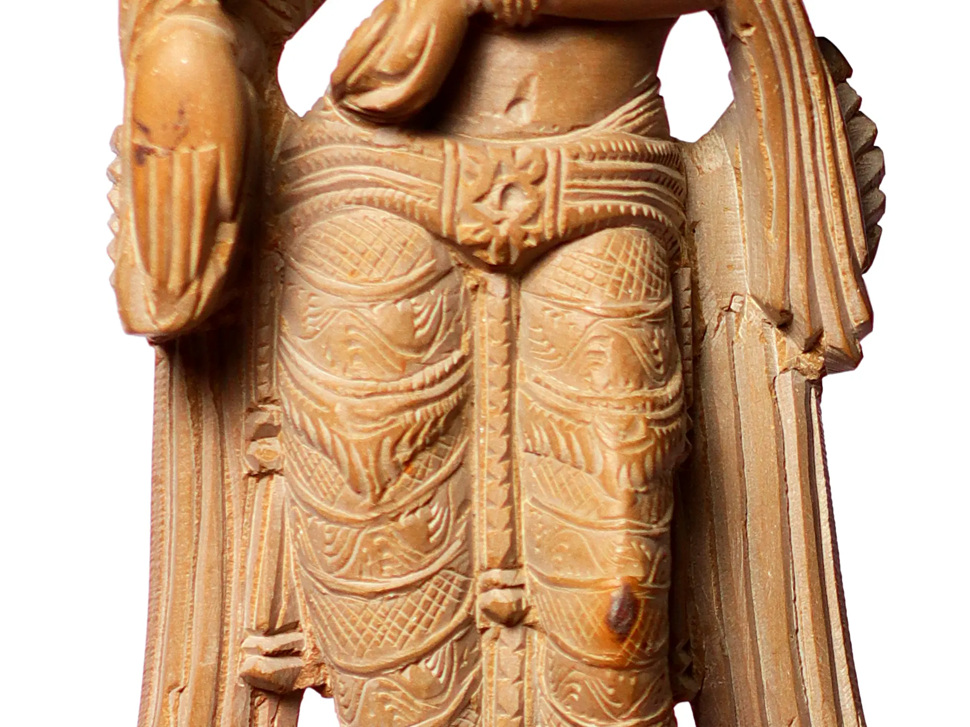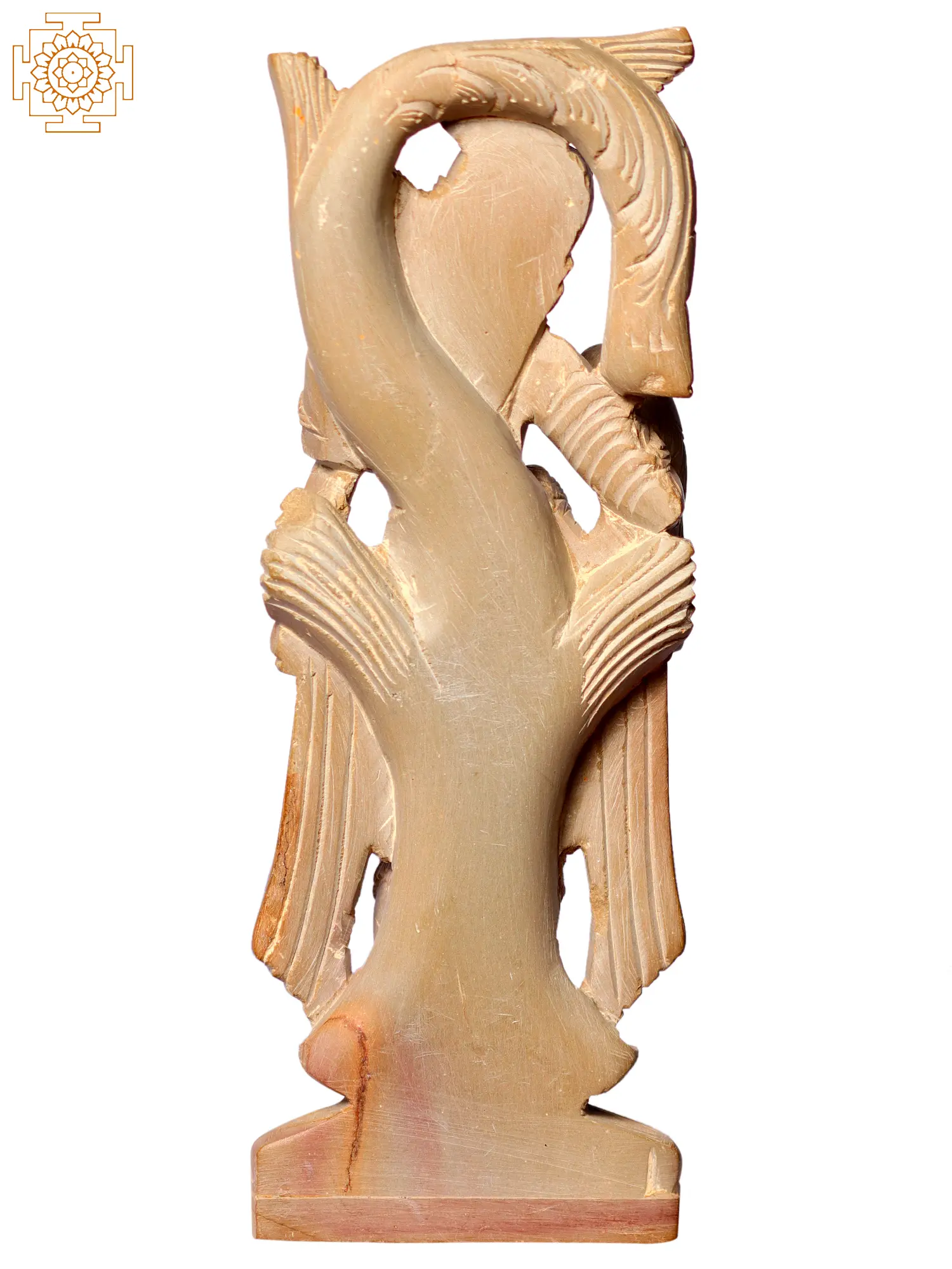 In this intricately sculpted piece, Padmavati holds her beloved parrot in her gentle hands. The parrot, a symbol of love and devotion, reflects the divine connection between the goddess and nature. As a messenger of love and beauty, the parrot signifies Padmavati's role as a mediator between the devotees and the divine.