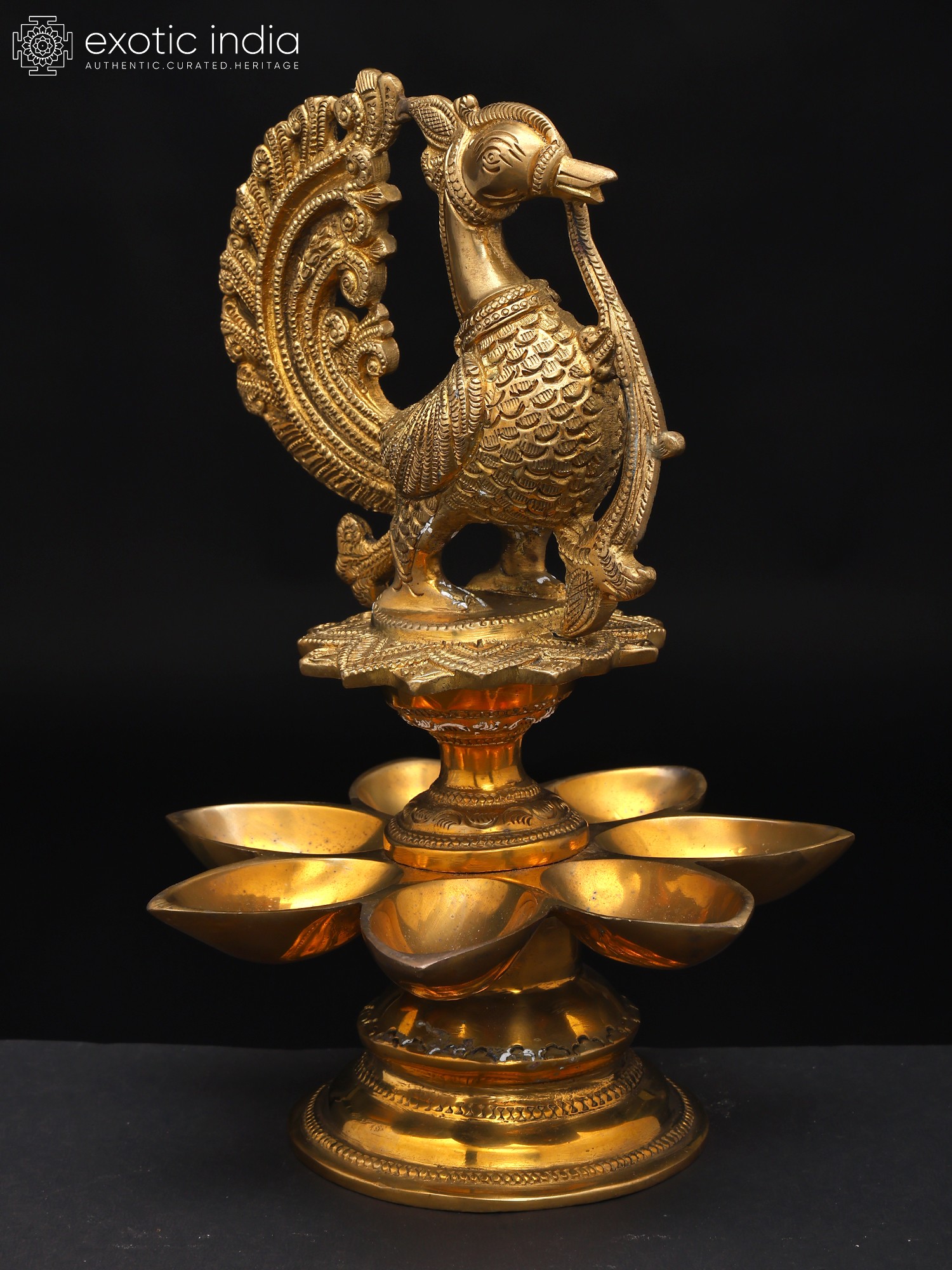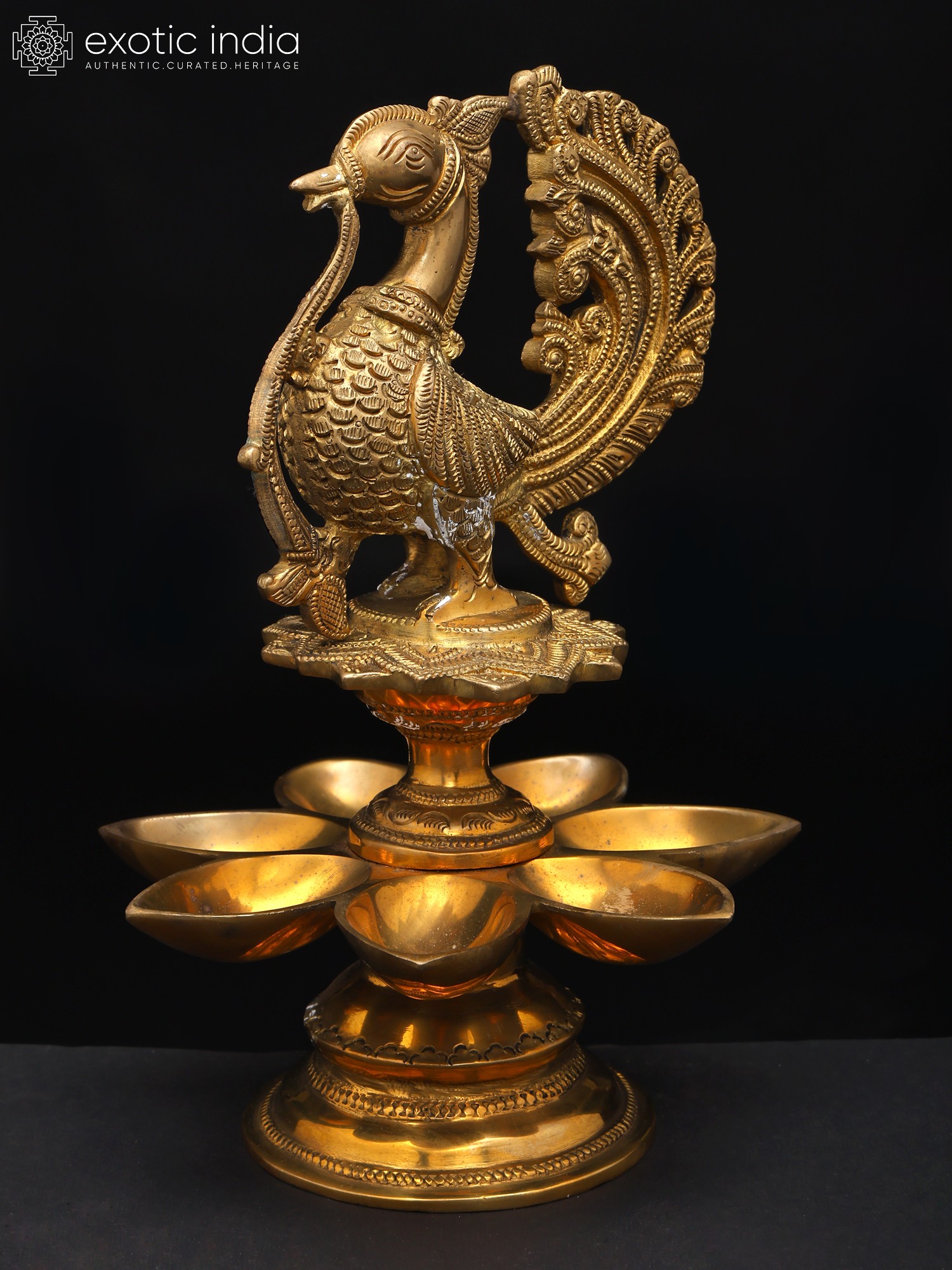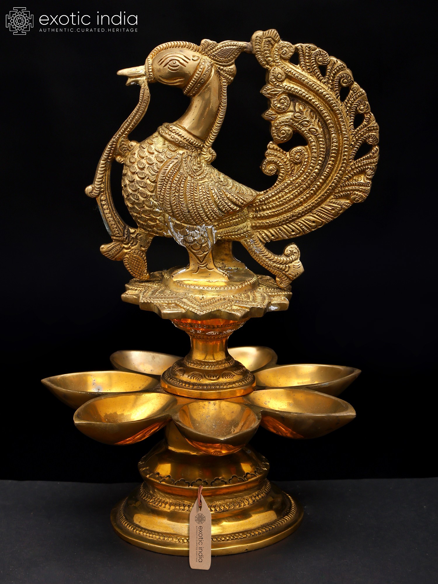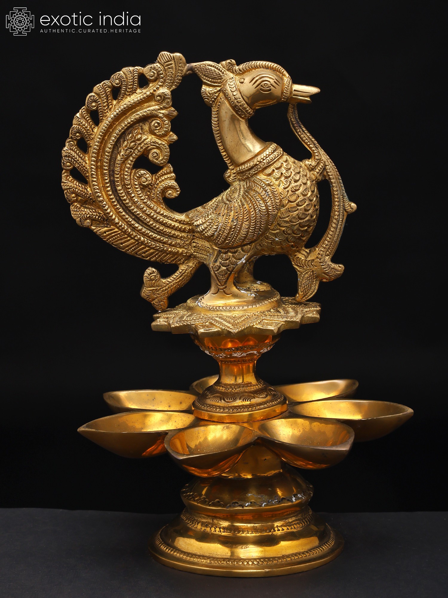 In Hinduism, the peacock is connected to gods such as Lord Murugan and Goddess Saraswati and is considered a symbol of grandeur. Special meaning is attached to the number of wicks. They could stand for the days of the week or the chakras, each with a distinct heavenly link. They find use as artistic ornaments outside of religious rites, and the eco-friendliness of their use of biodegradable oils enhances their allure. Accept the skill and love that went into its making as it adds a touch of India's rich history to your house and adds a touch of elegance and spirituality to your existence.