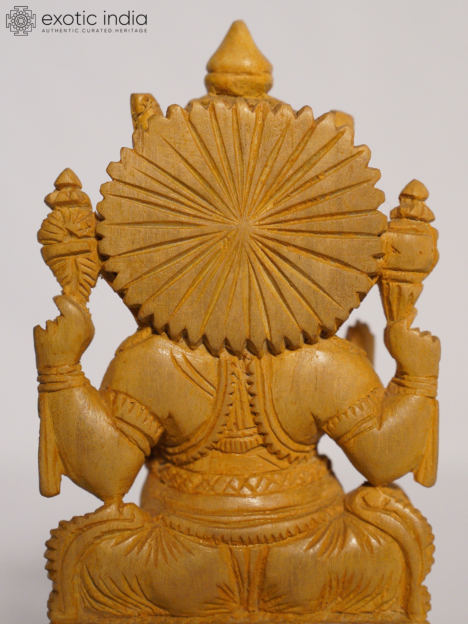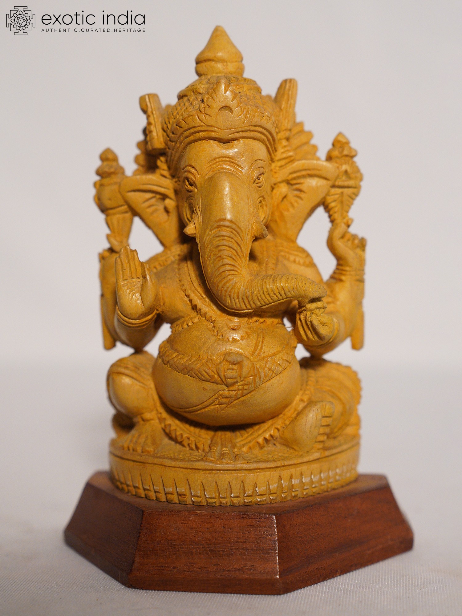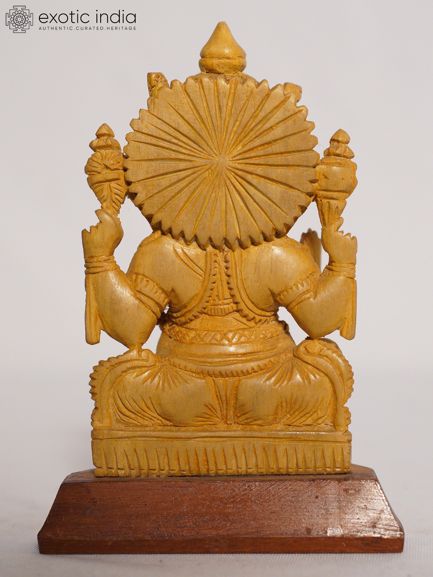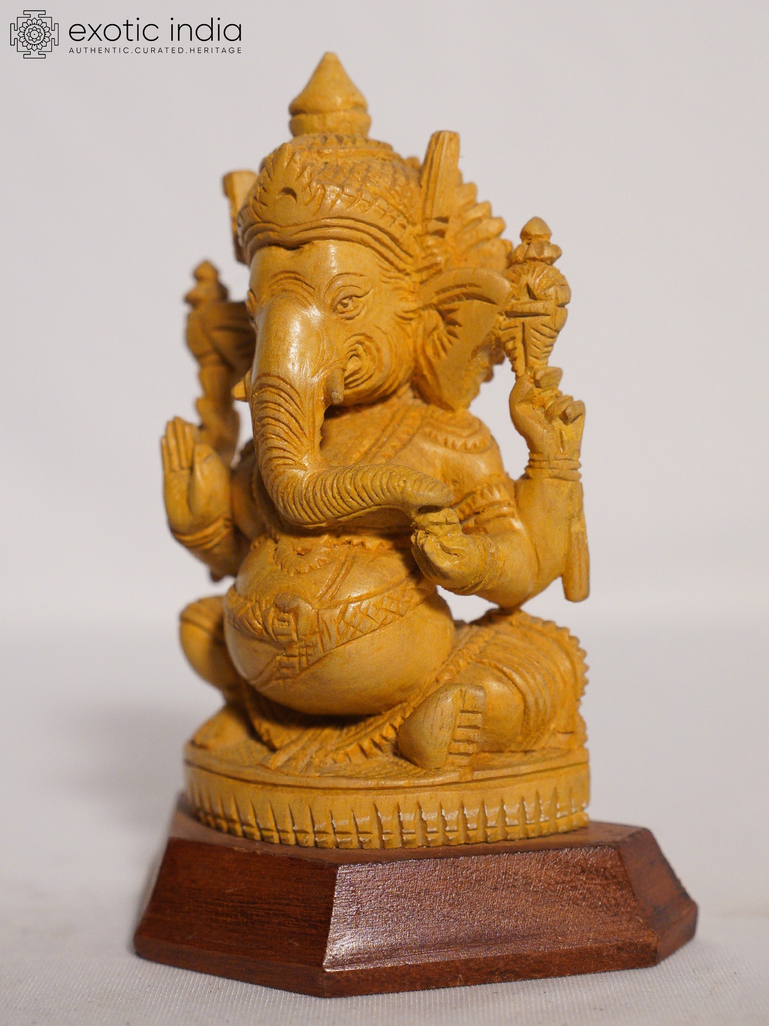 24" Chaturbhuja Lord Ganesha Seated on Lotus | Wood Carving