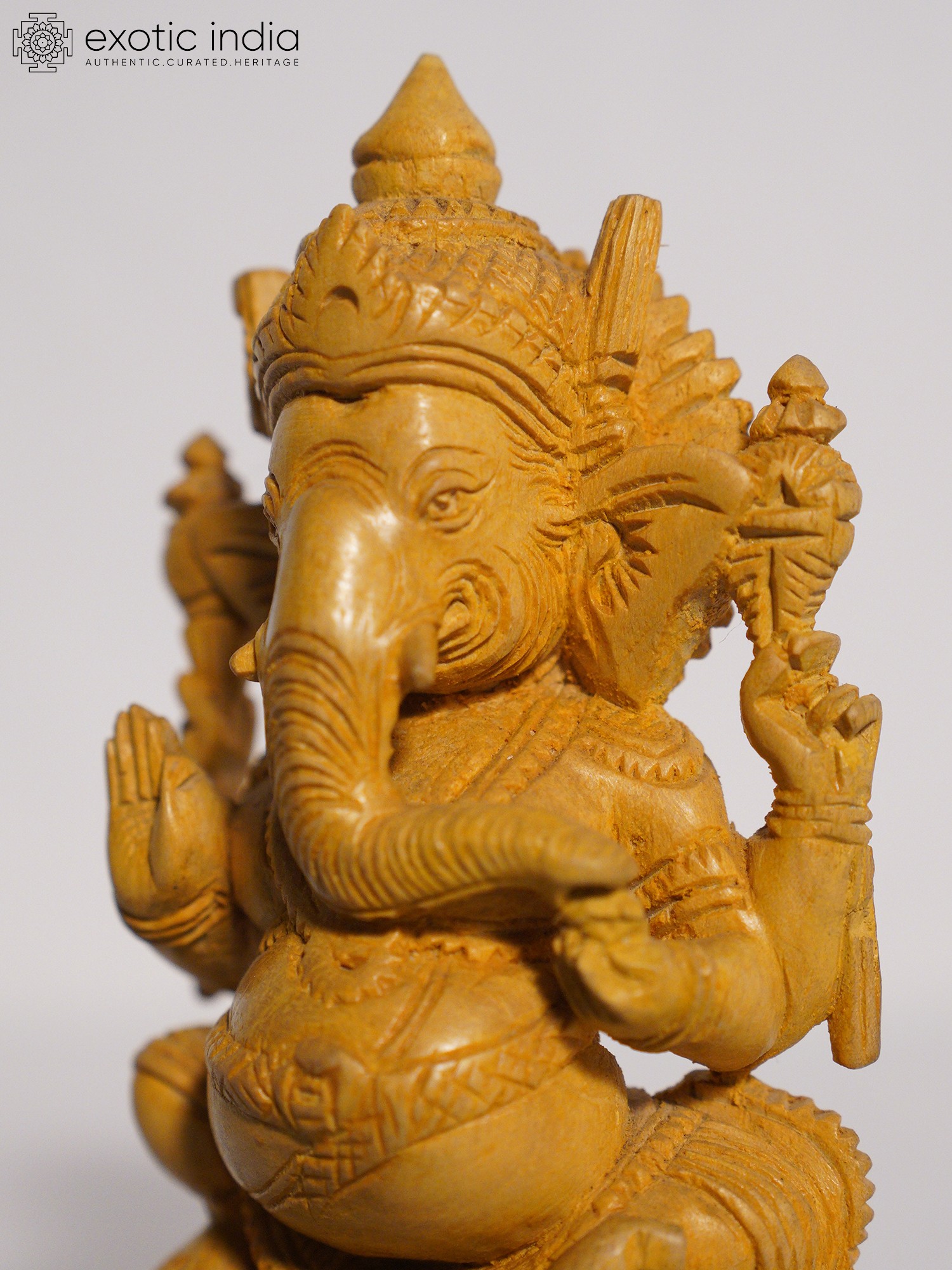 Wooden Sculpture of Lord Ganesha Plays the Shehnai