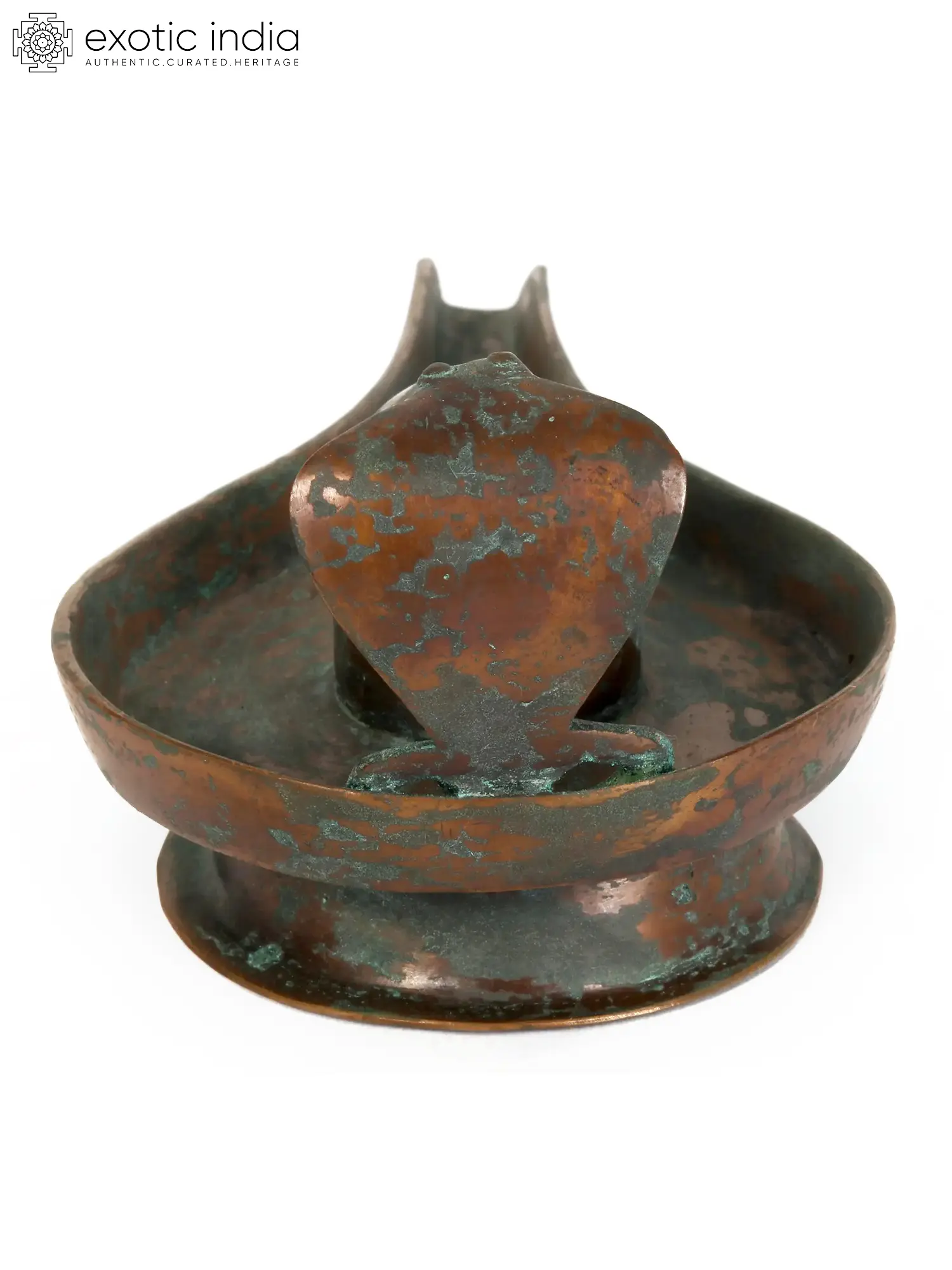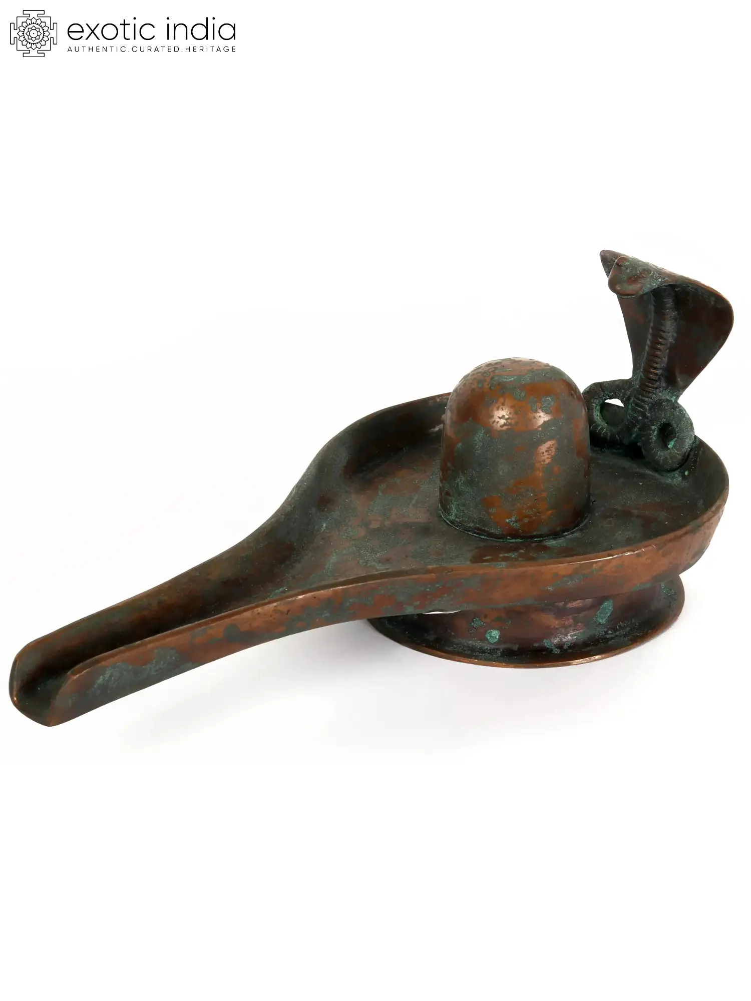 Made in solid Panchaloha bronze, this Shiva Linga is 2.5 inches tall and 6.5 inches wide. An aiconic and abstract representation of Lord Shiva - Shiva Linga, with yoni in its base is worshipped as the meeting site of the microcosmos with microcosmos, in celebration of the divine union. A transcendental symbol of Parapurusha and Parashakti, this Shiva Linga finds itself a shed under the fanged Naga King - Vasuki.