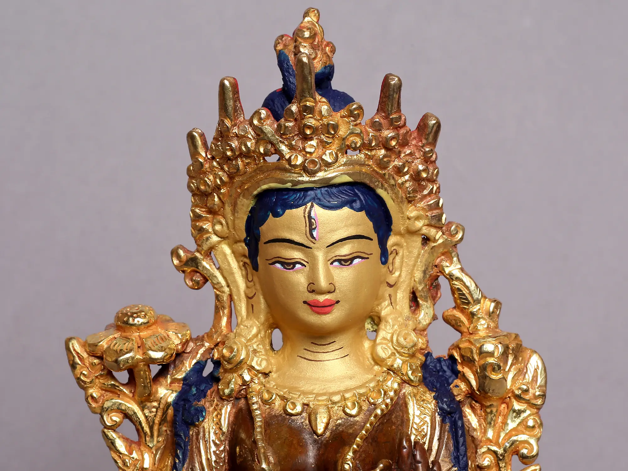 As a compassionate and nurturing figure, White Tara is believed to assist in overcoming physical, emotional, and spiritual challenges. Her serene and maternal presence serves as an inspiration for those seeking solace, healing, and the virtues of compassion in their spiritual journey.