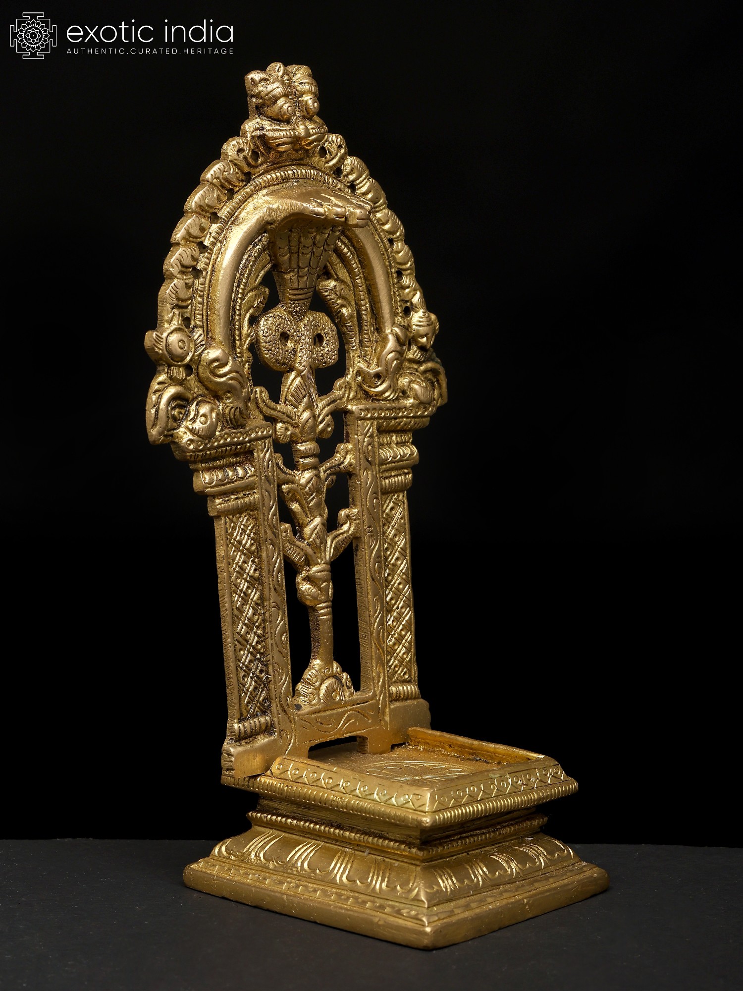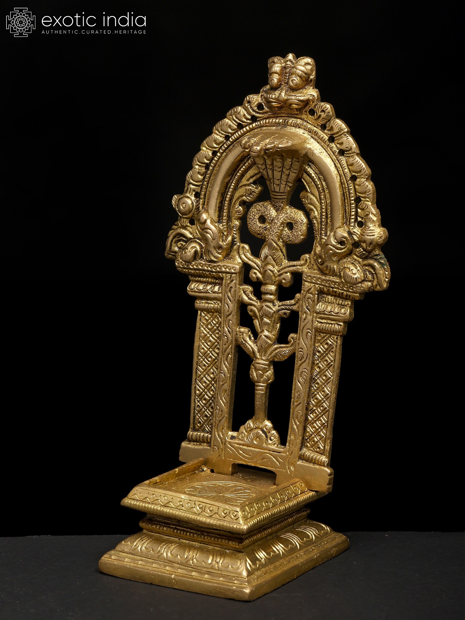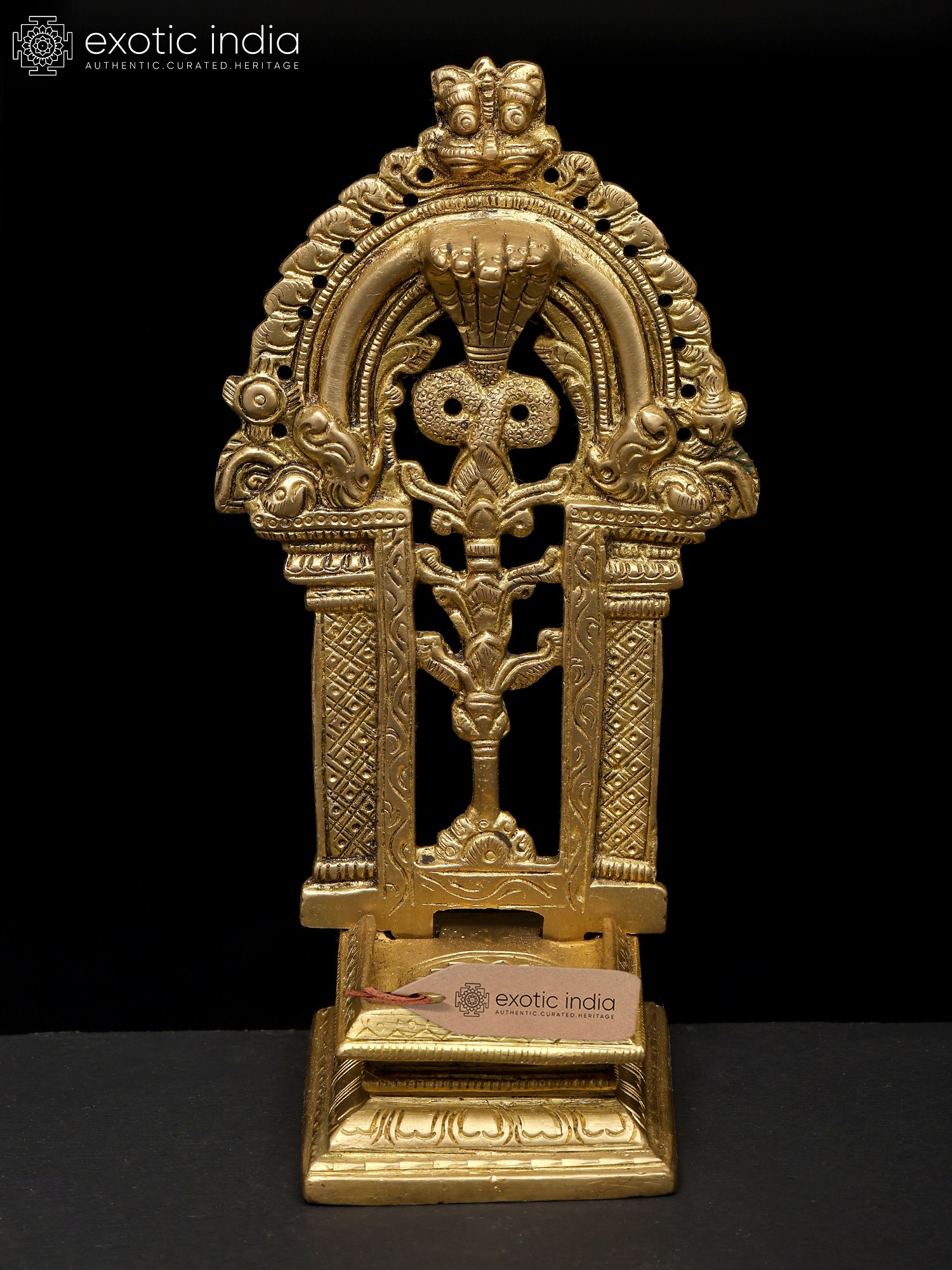 5" Small Brass Kirtimukha Throne with Five Hooded Serpent | Handmade | Made In India