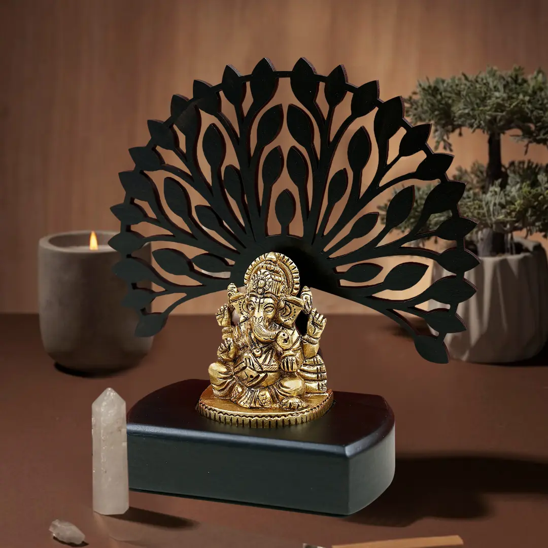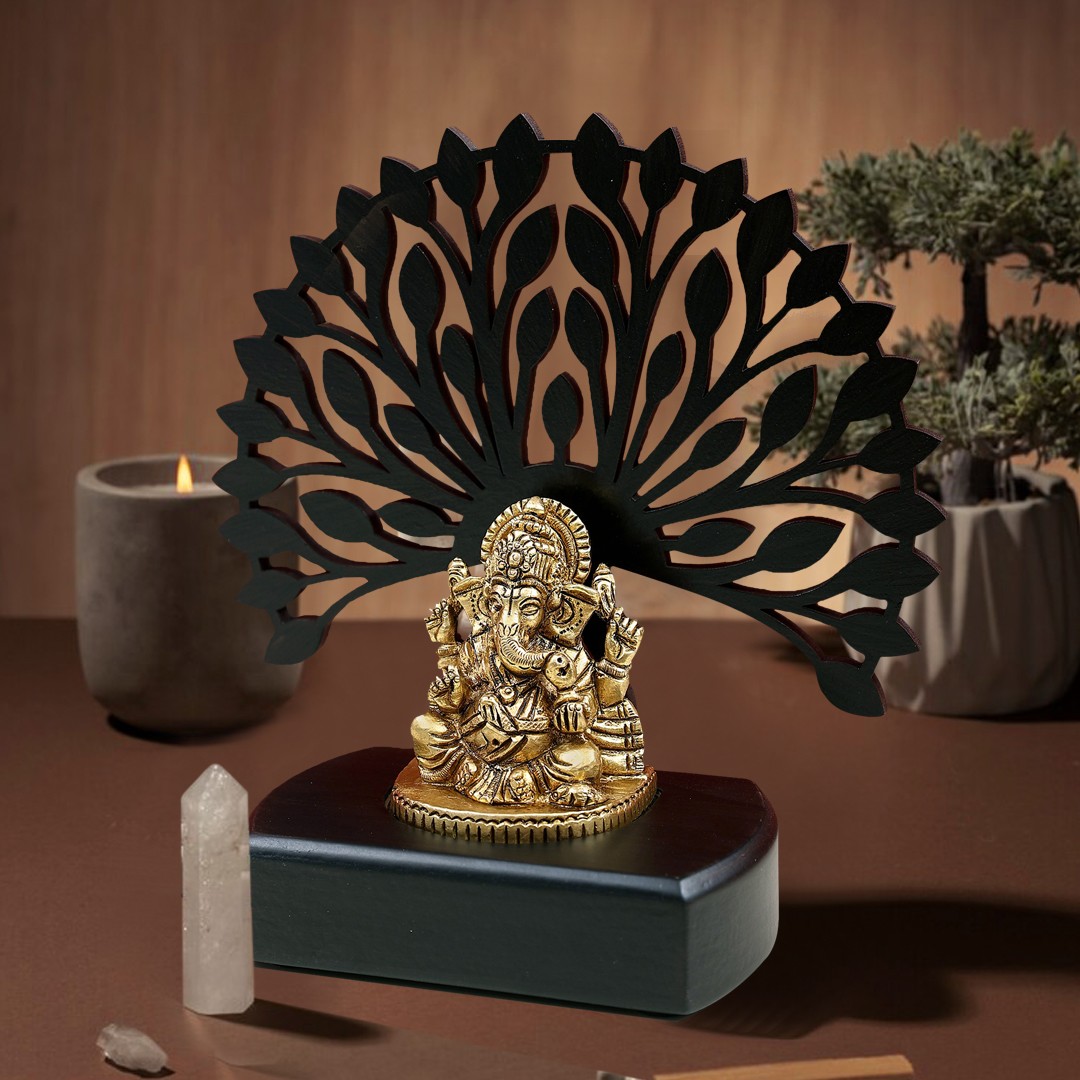 Brass sculptures are said to boost a location's spiritual aura. Hindus believe that by maintaining these statues in their homes and temples, they may create a happy and serene environment. The embodiment of Lord Ganesh's image as the deity of prosperity and expansion is this little brass sculpture of Lord Ganesha seated on a wooden stand that develops into a tree. This is a table décor that not only improves the appearance of a room but also blesses it with the goddess of Lord Ganesha's image as well as the richness of brass metal and wood.