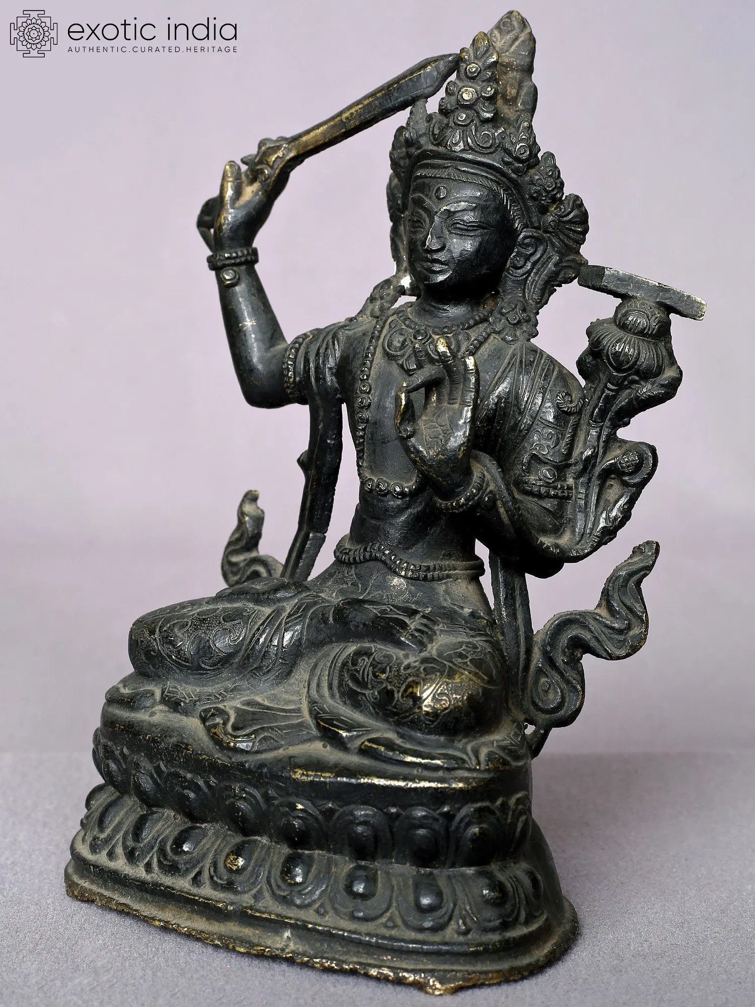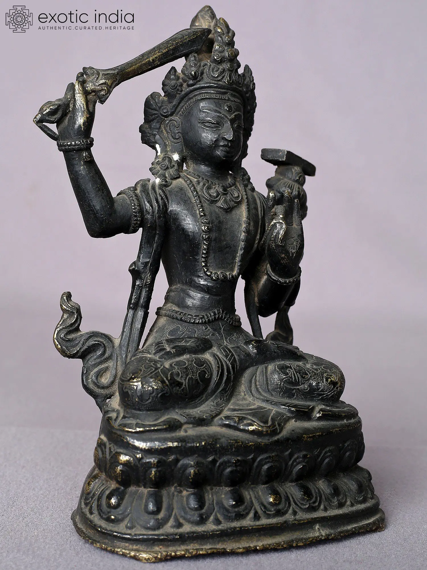 The name “Manjushri” translates to “Gentle Glory” or “Sweet Splendor.” depicted as a youthful figure holding a sword in one hand to symbolize the cutting through of ignorance and a book (often the Prajnaparamita Sutra) in the other, Manjushri signifies the union of wisdom and compassion. His iconography often emphasizes his radiant wisdom that illuminates the darkness of ignorance.