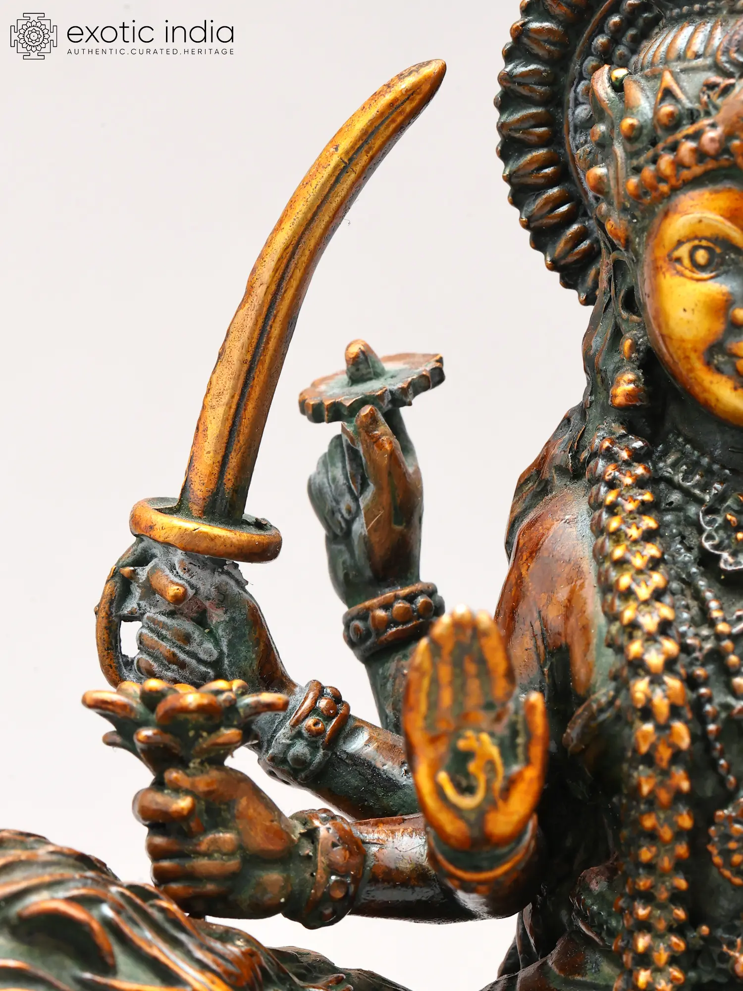 5" Small Eight Armed Goddess Durga (Sherawali Maa) | Copper Statue