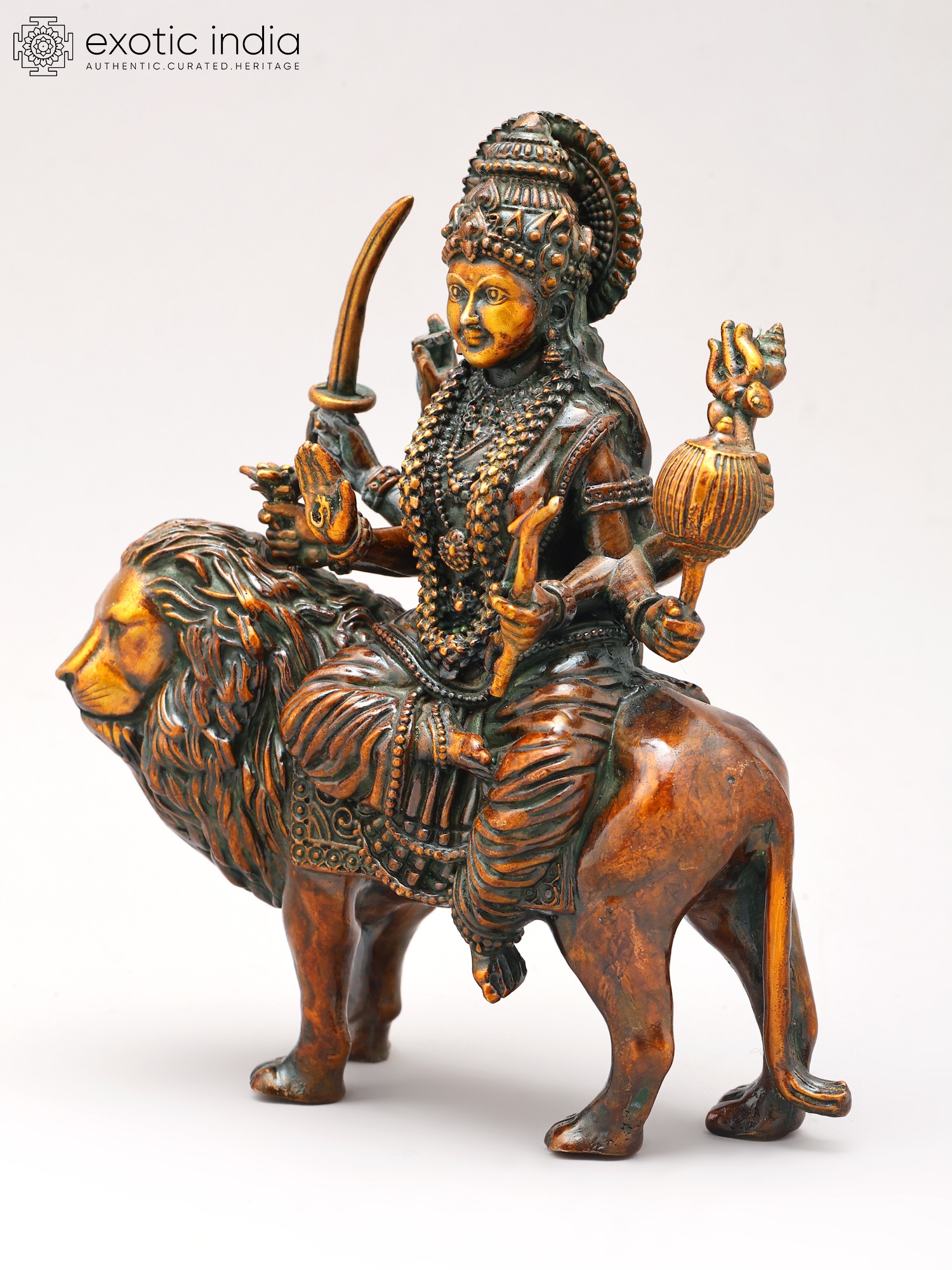 5" Small Goddess Durga (Sherawali Maa) | Copper Statue