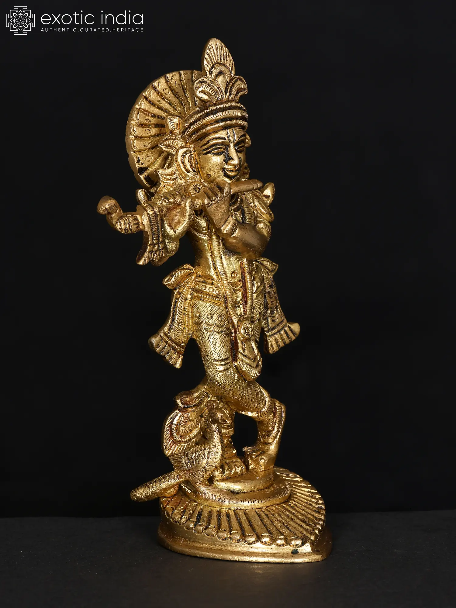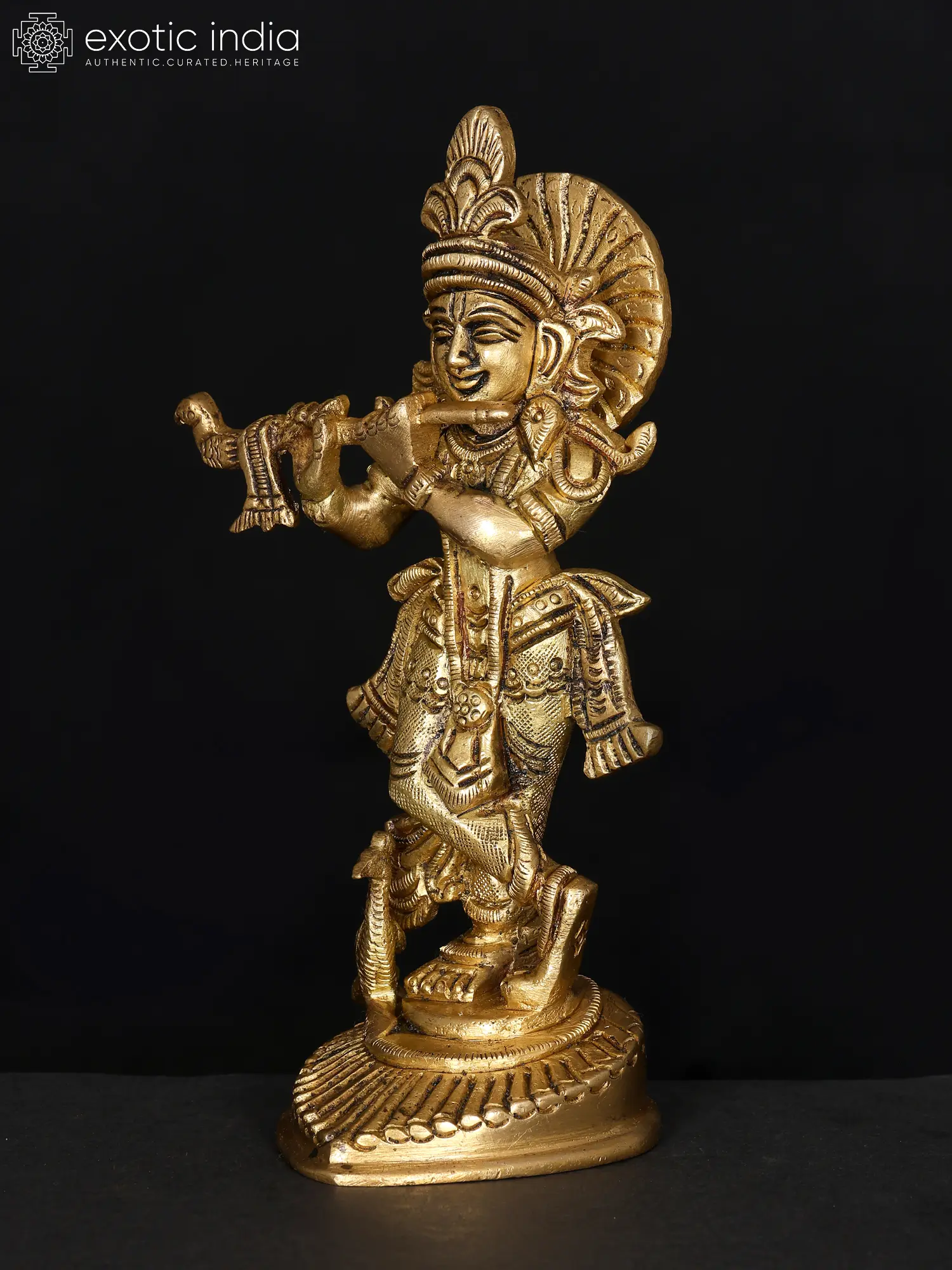 16" Murli Krishna Brass Statue | Handmade | Made in India