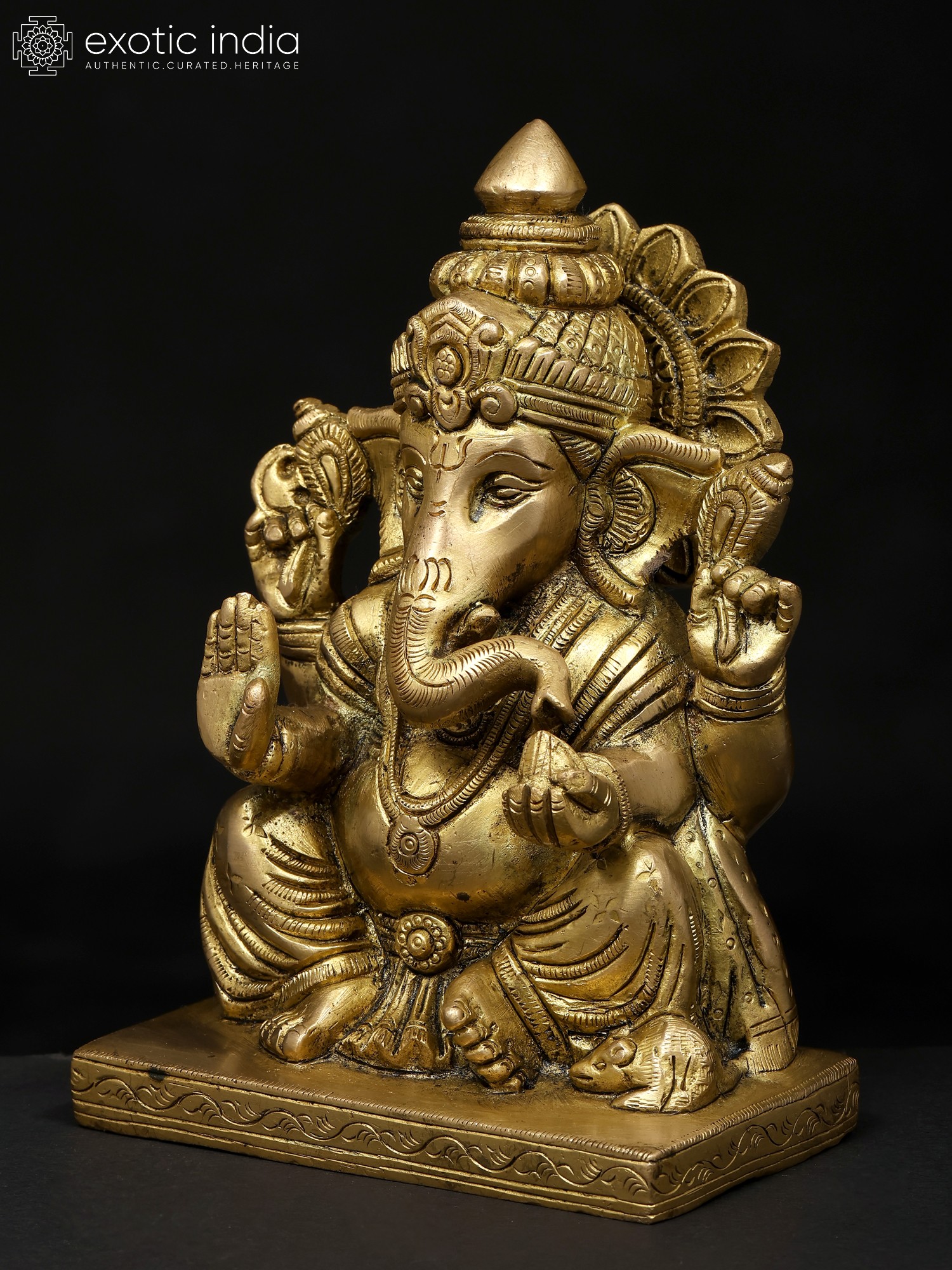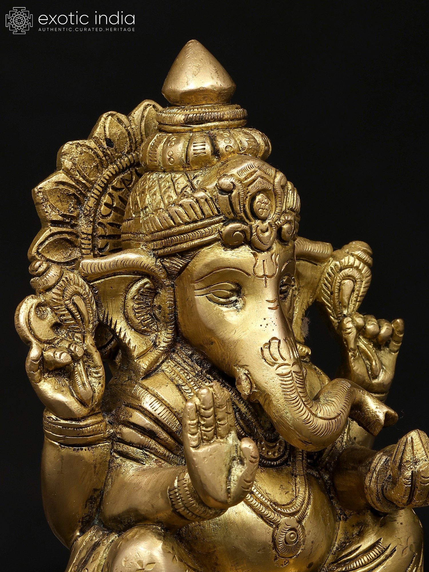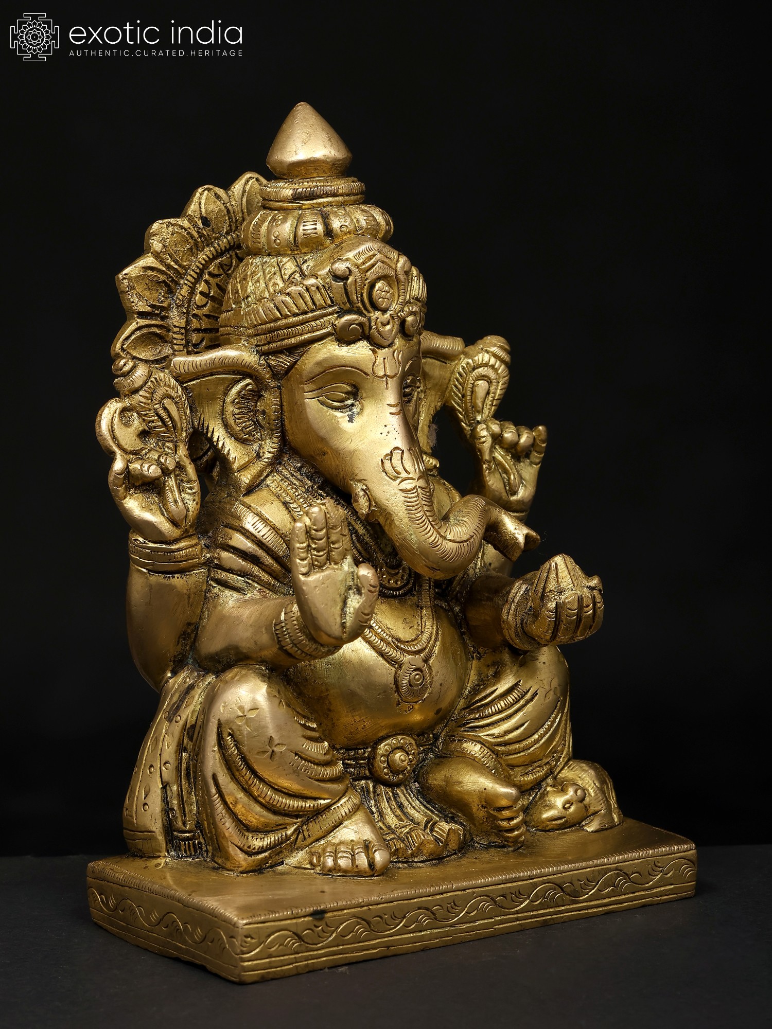 11" Four Armed Auspicious Blessing Ganesha In Brass | Handmade | Made In India