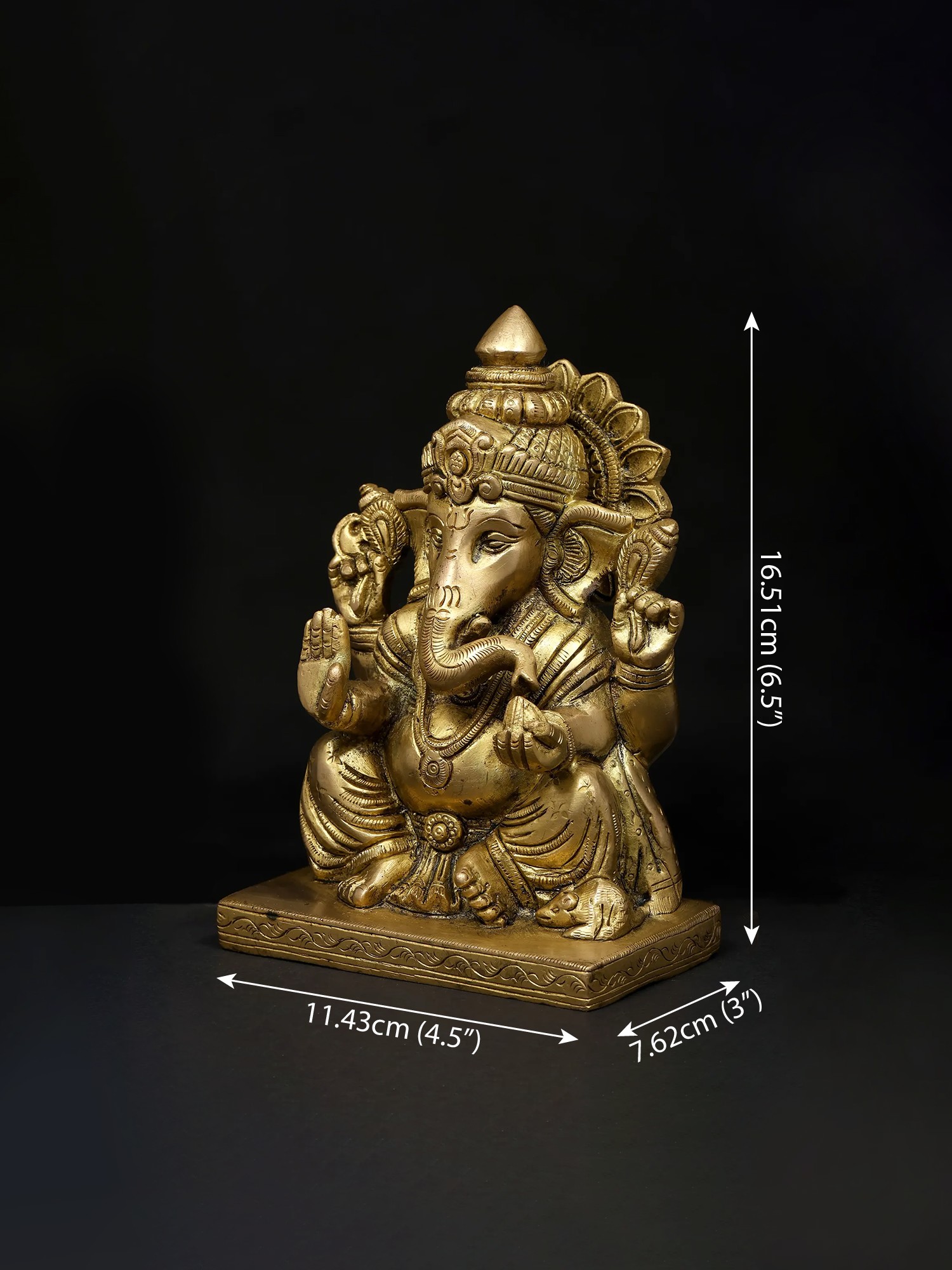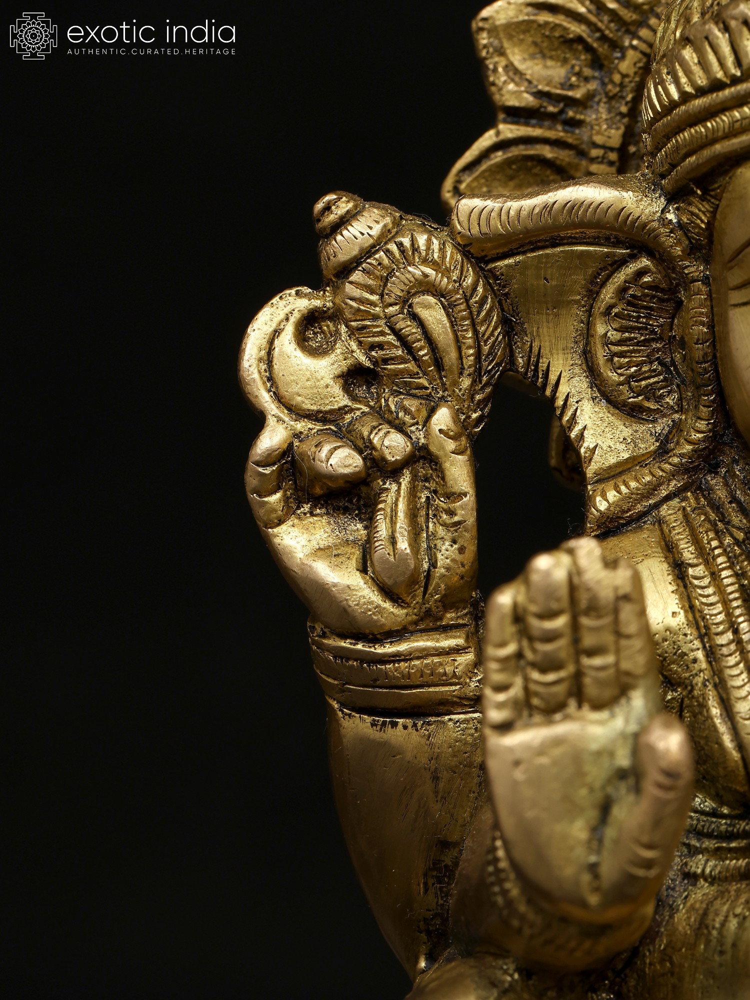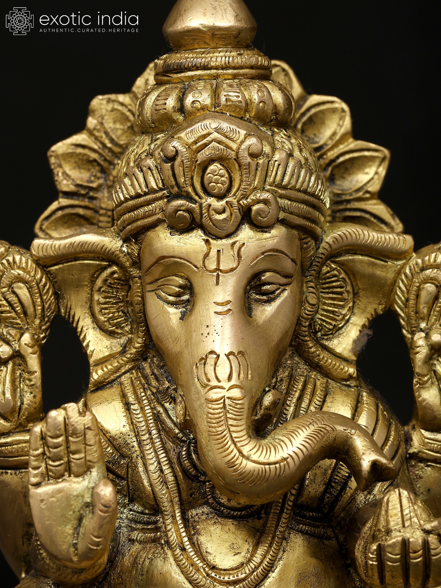 11" Four Armed Auspicious Blessing Ganesha In Brass | Handmade | Made In India