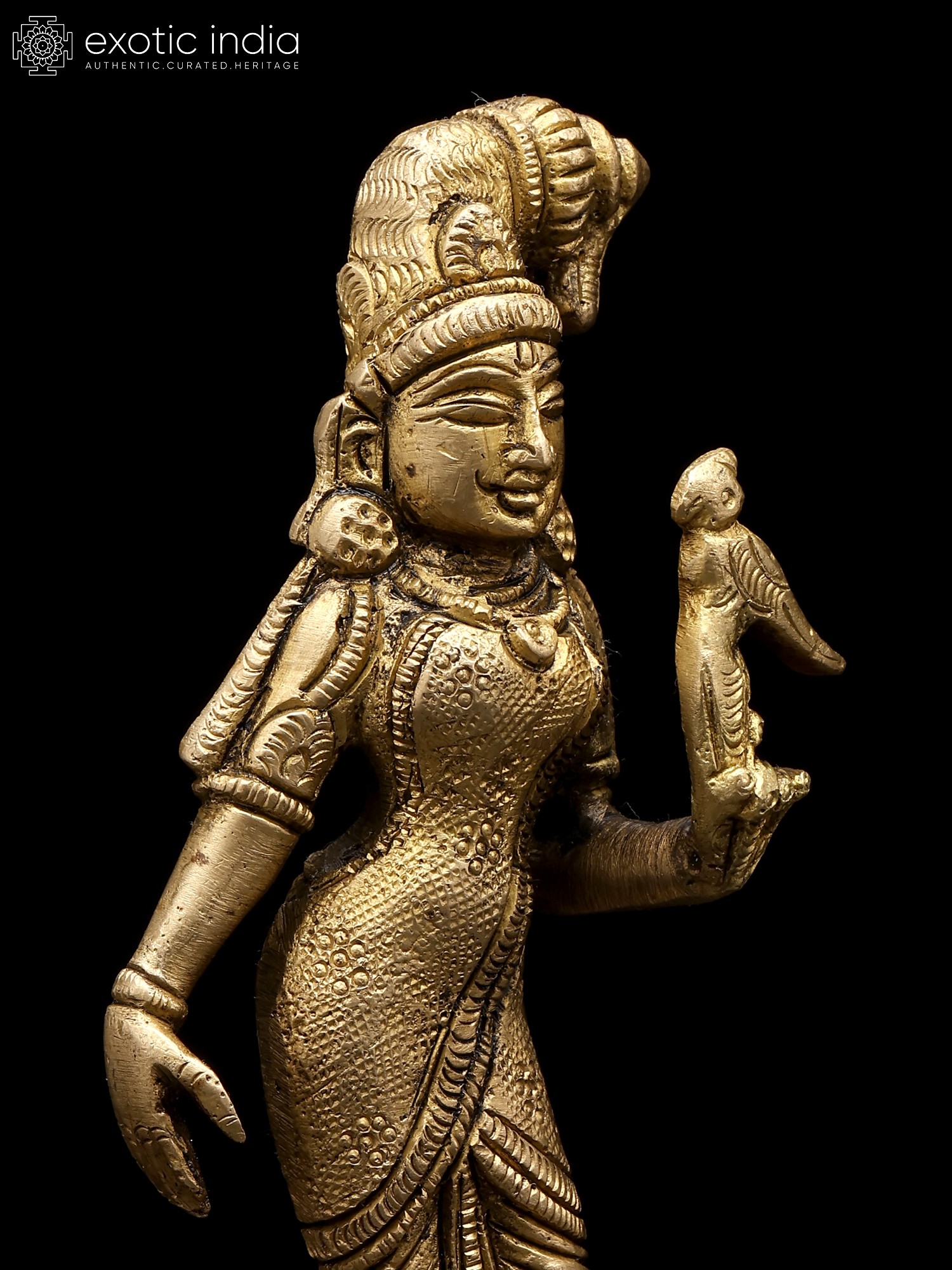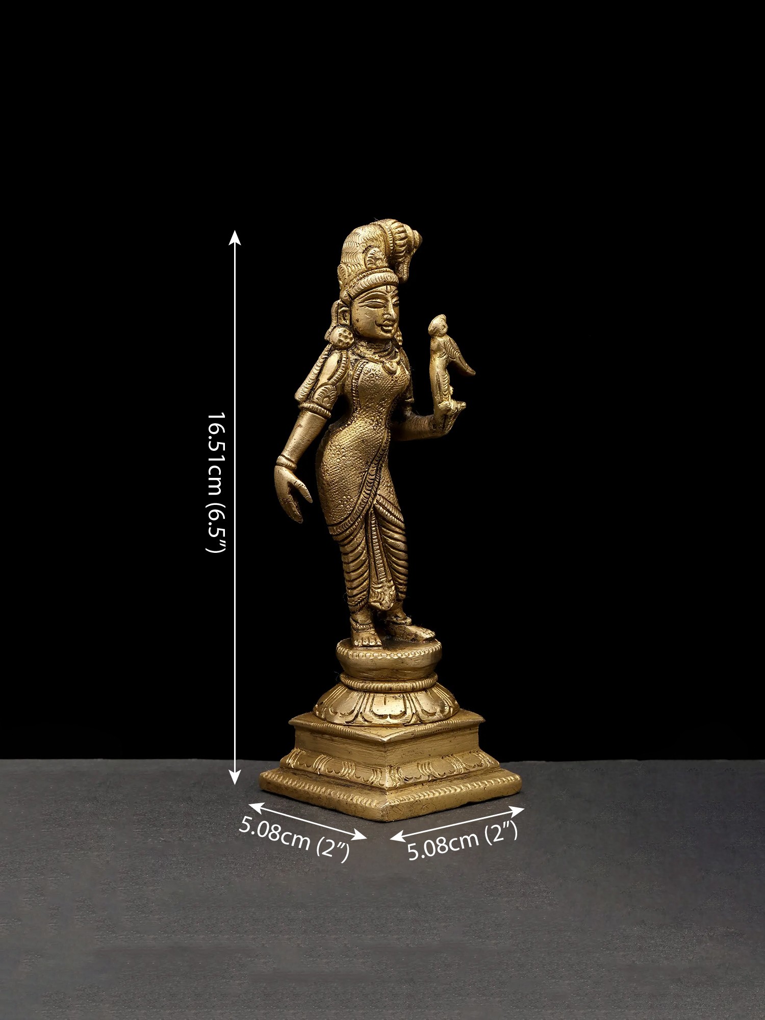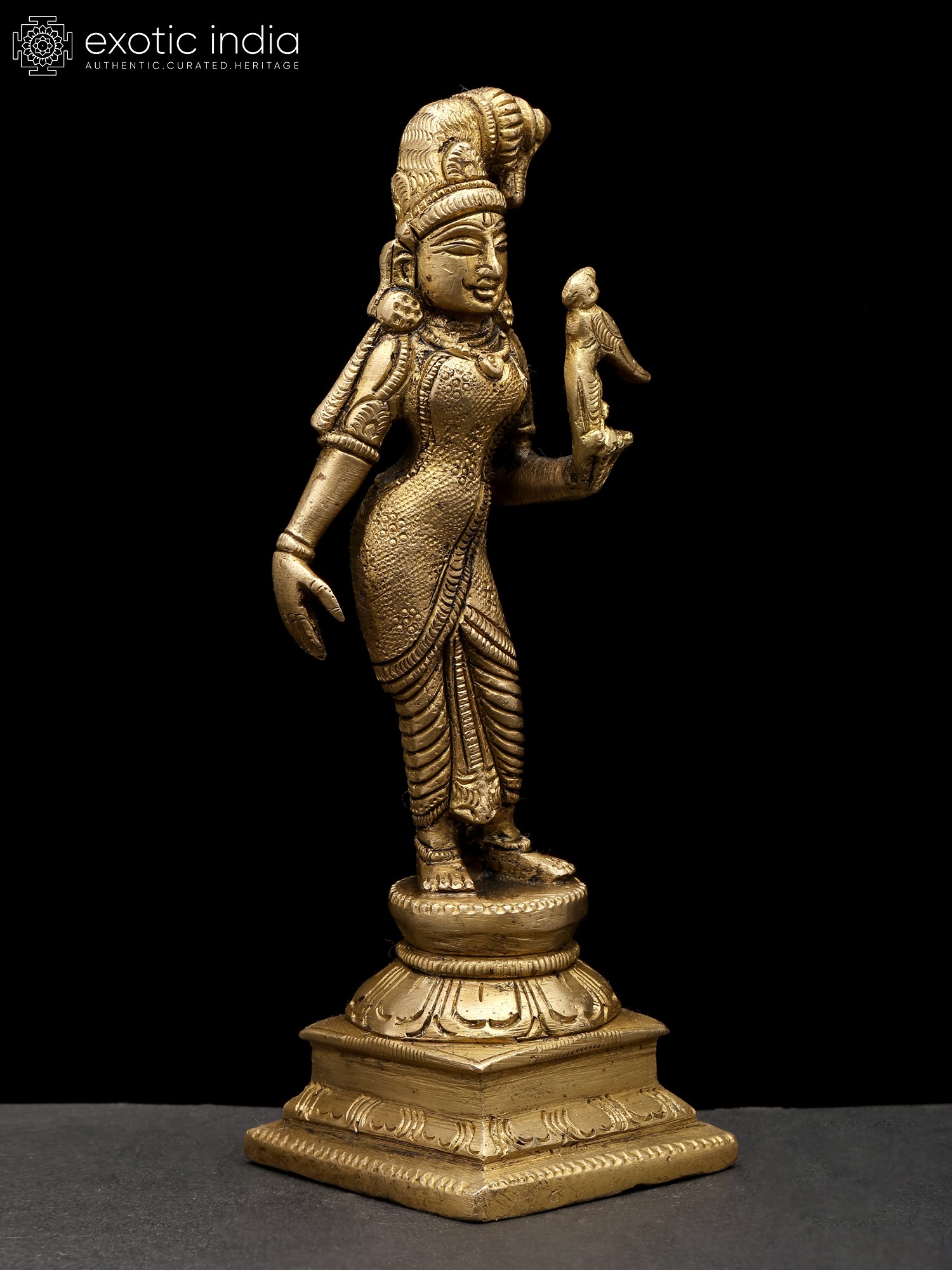 12" Andal Devi With Parrot In Brass | Handmade | Made In India