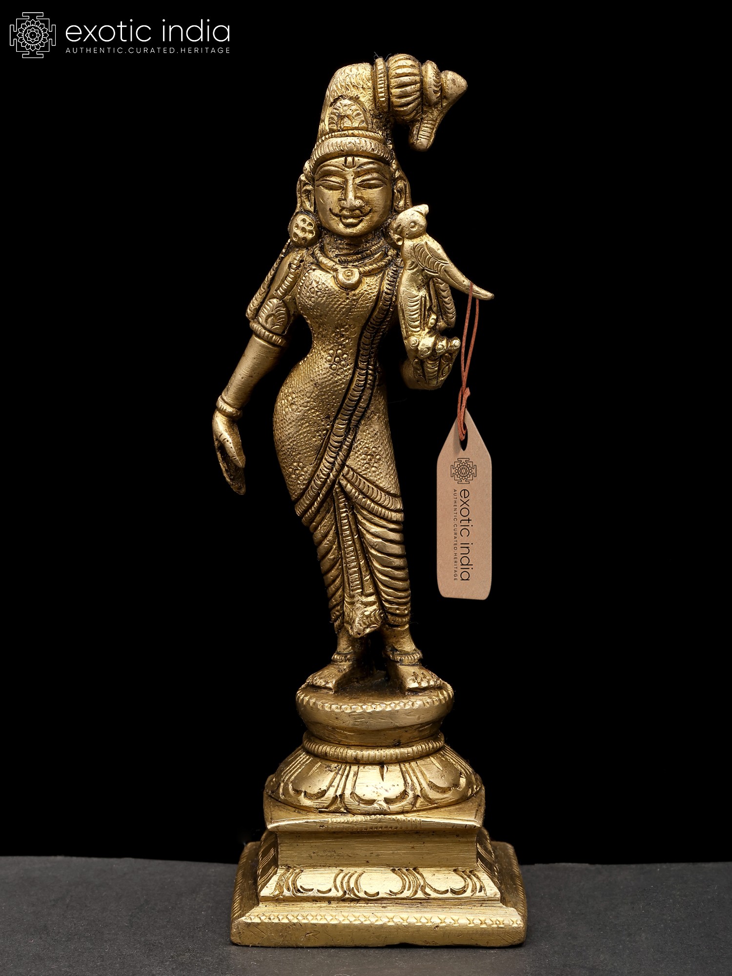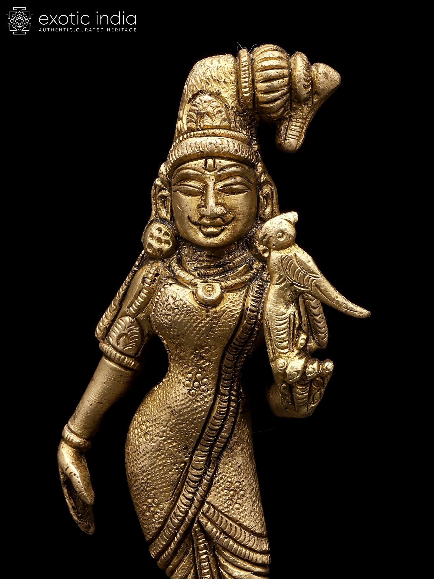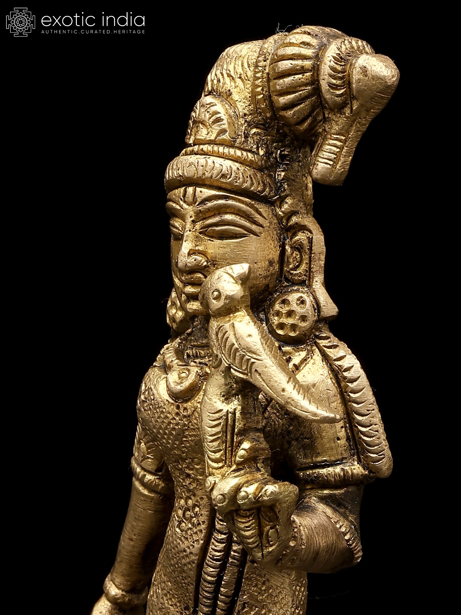 12" Andal Devi With Parrot In Brass | Handmade | Made In India