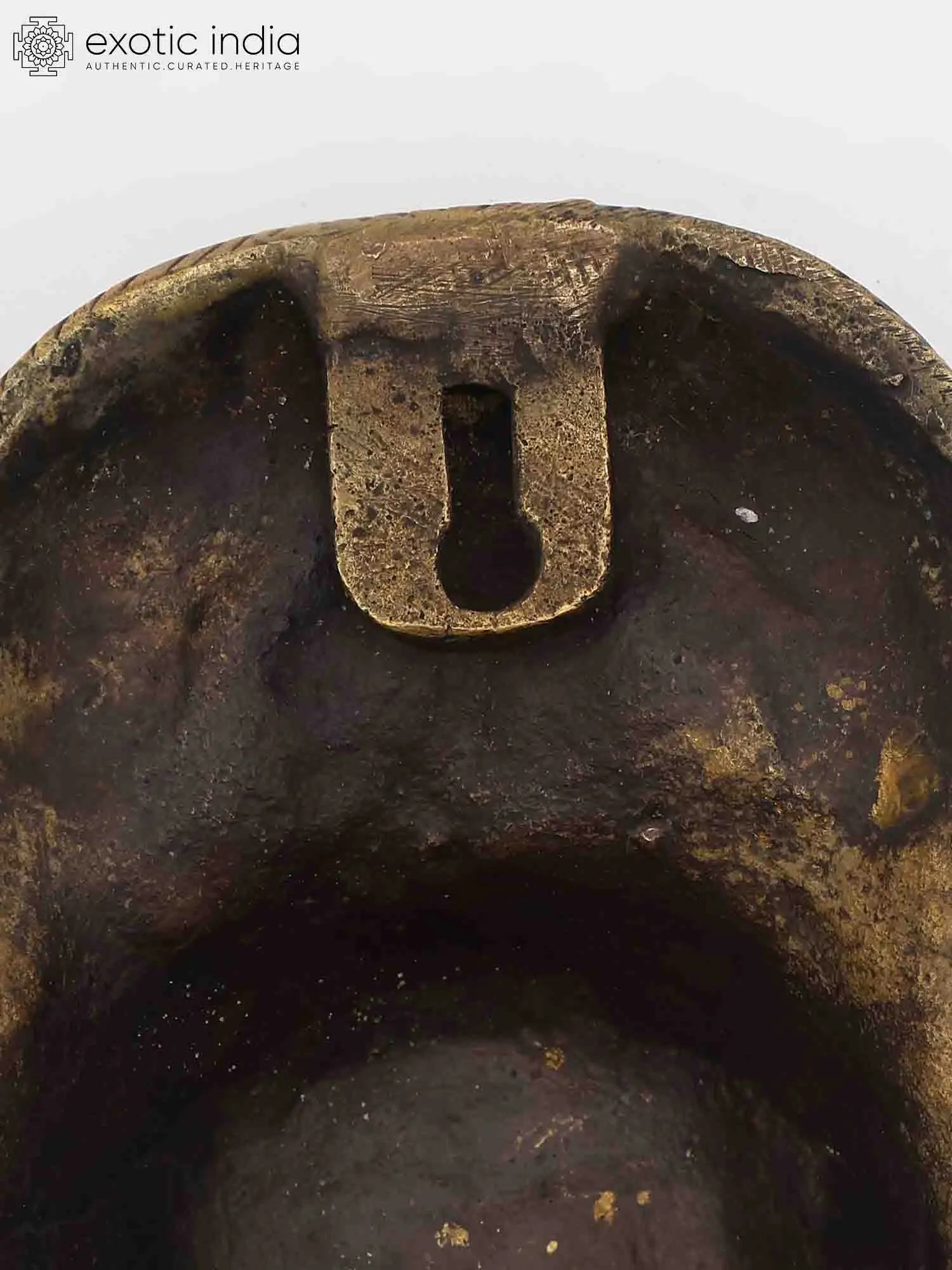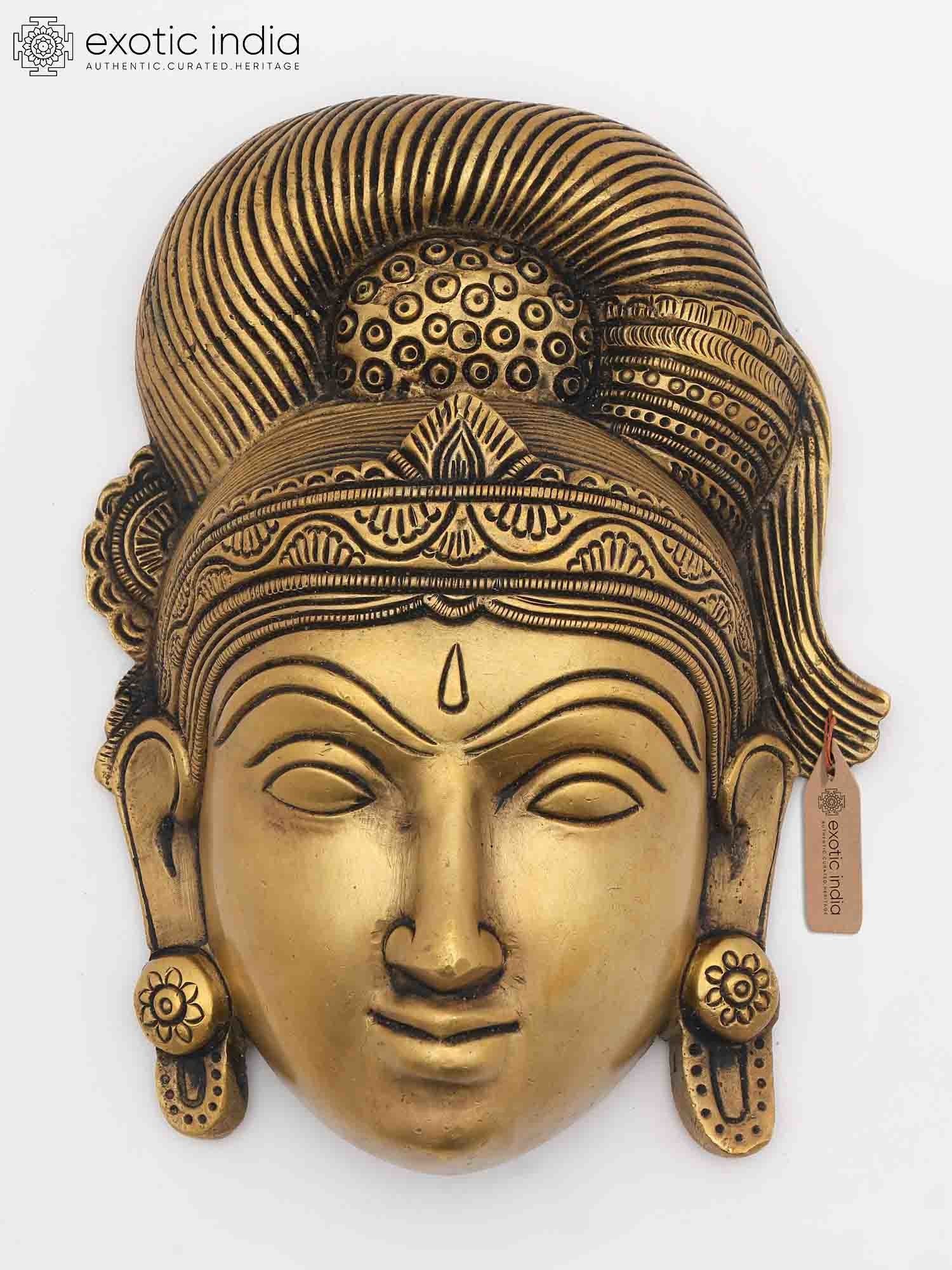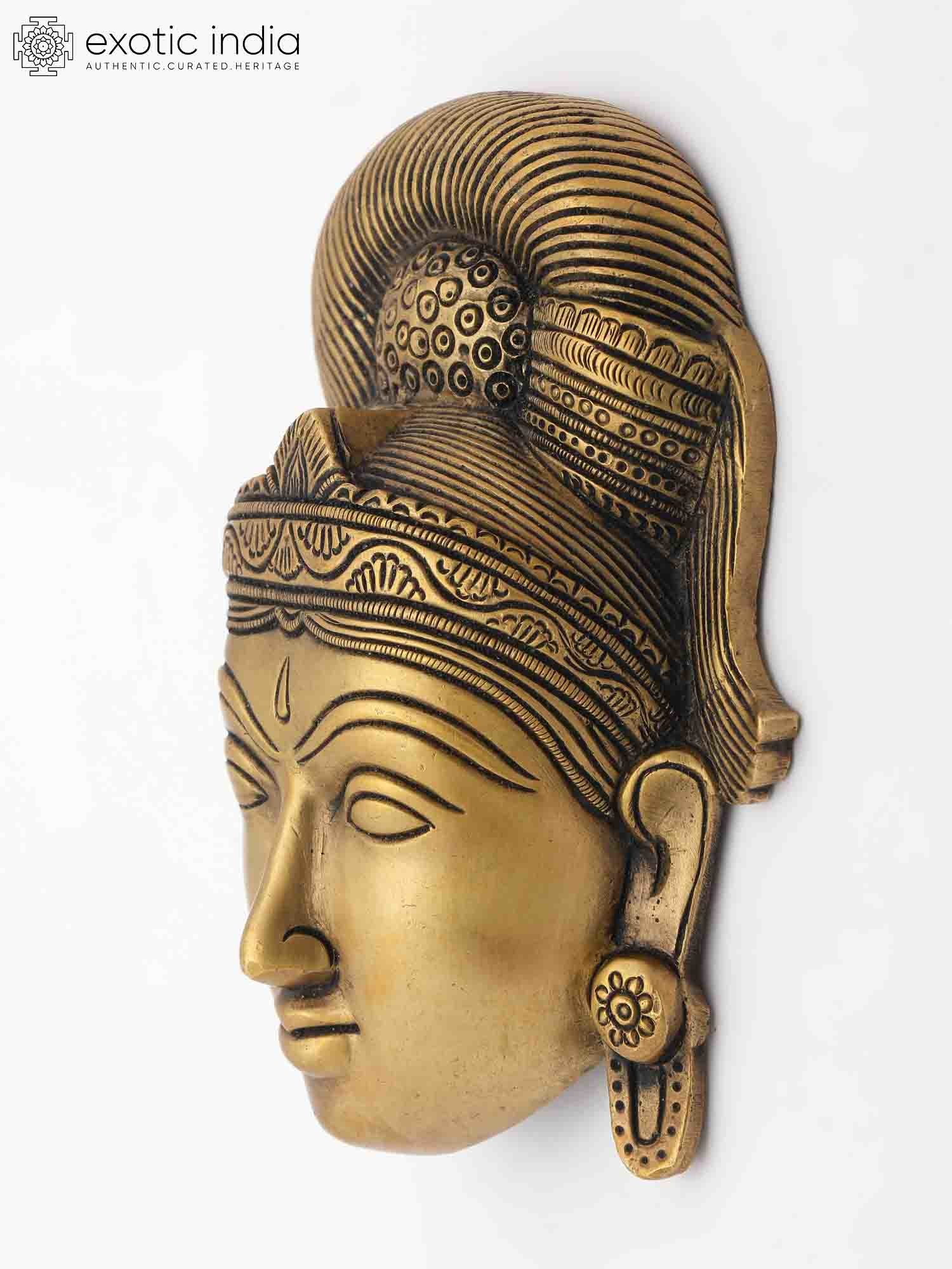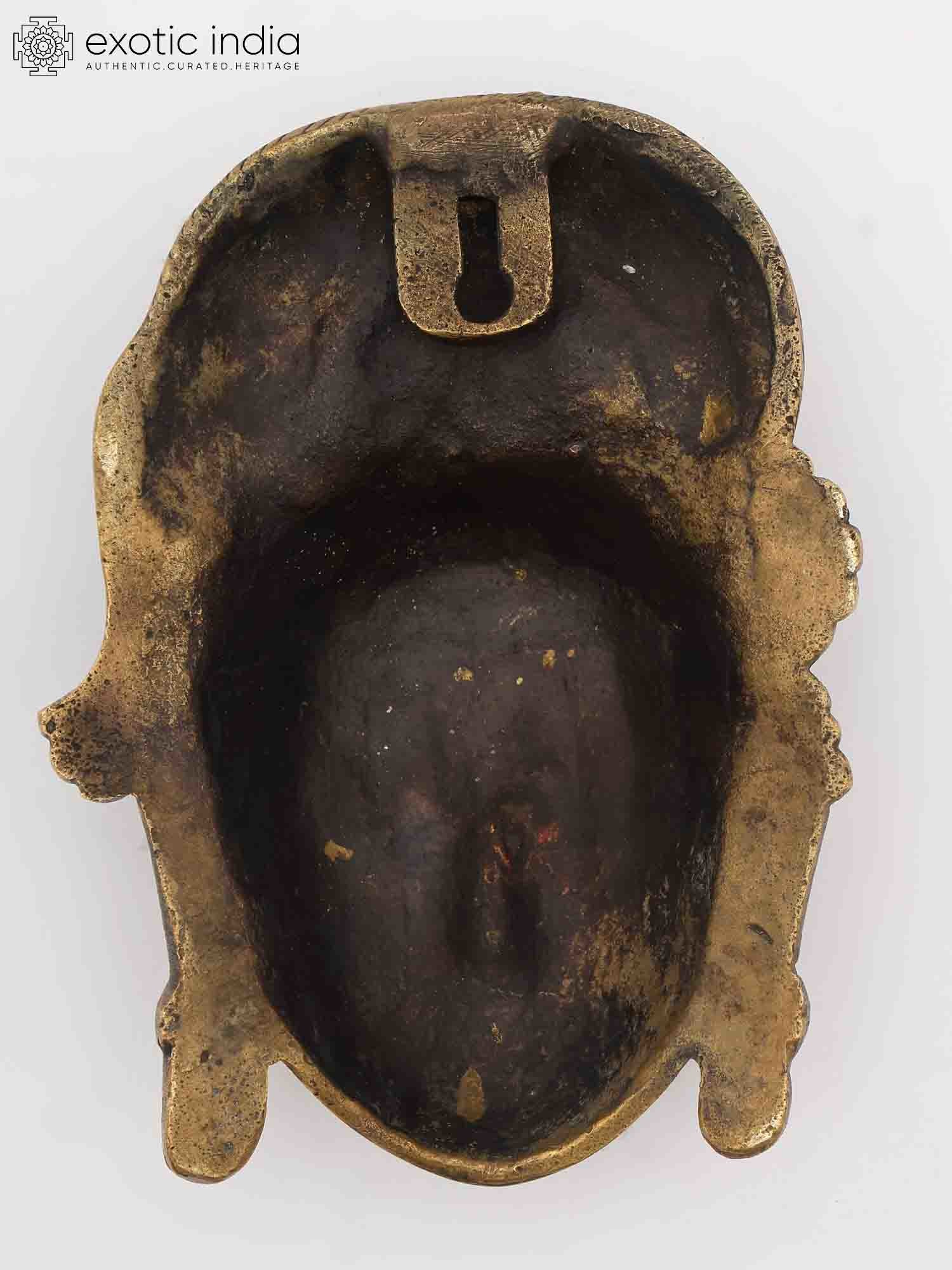 11" Brass Goddess Durga Face on Leaf | Tribal Wall Hanging