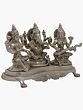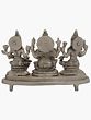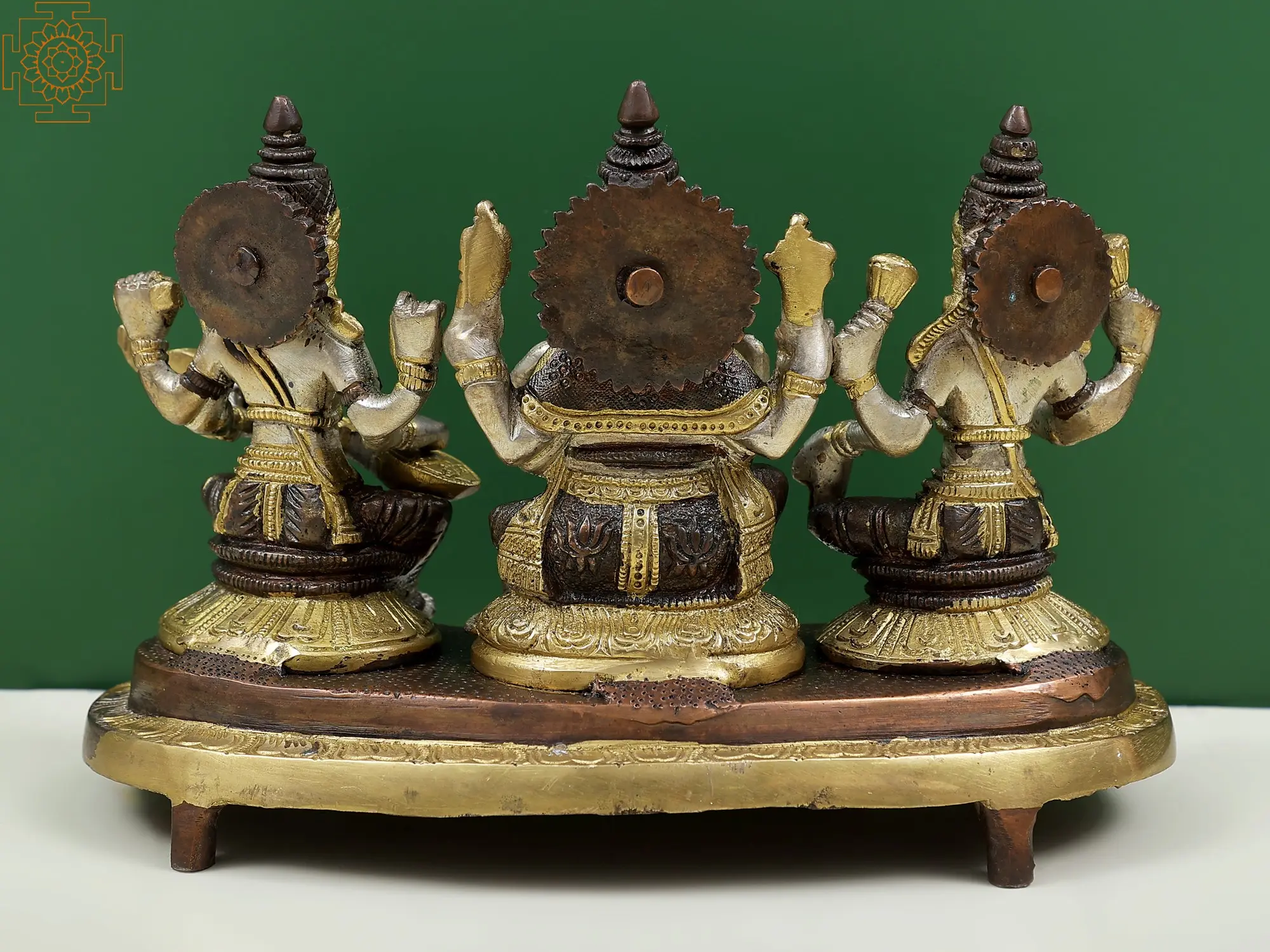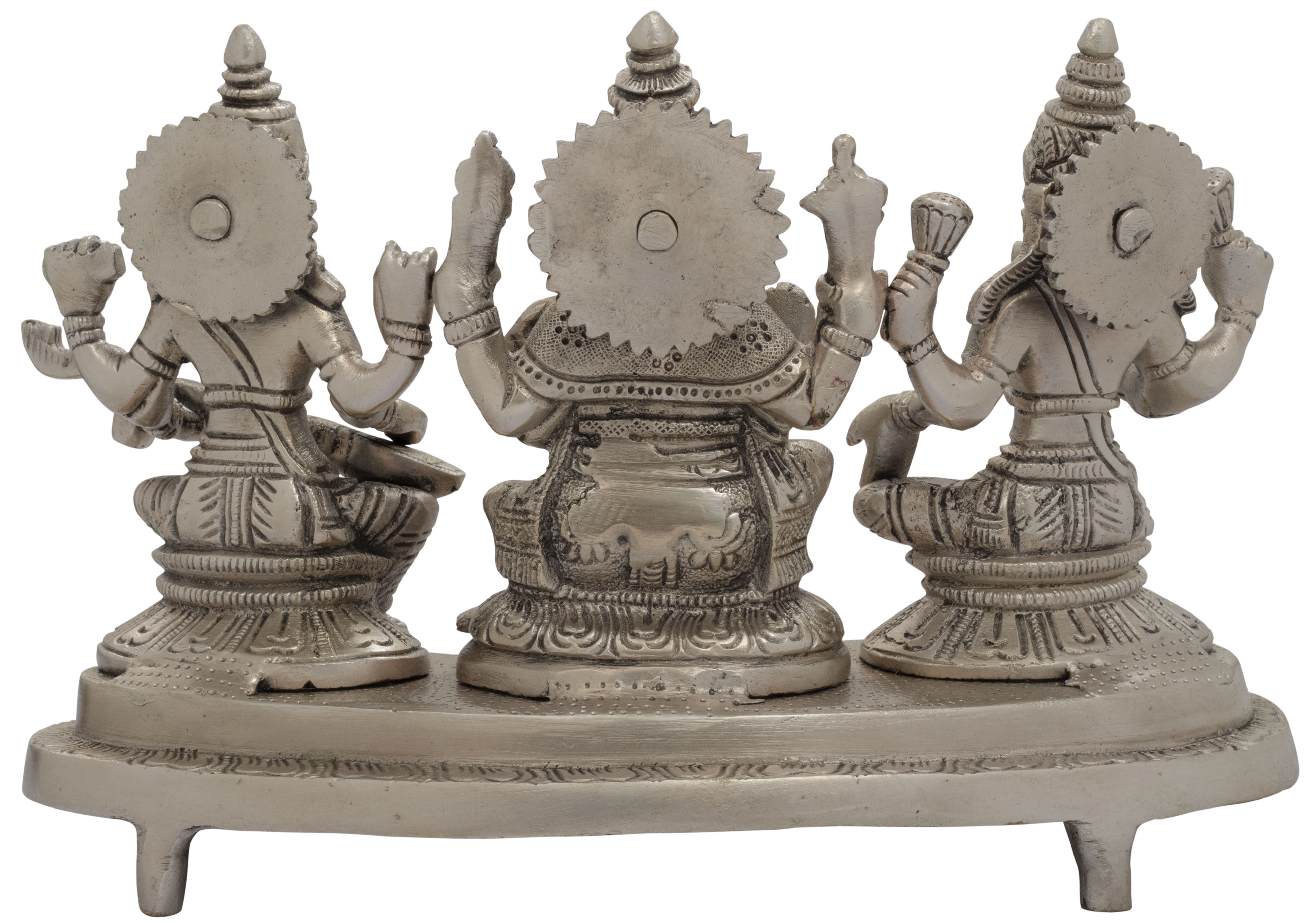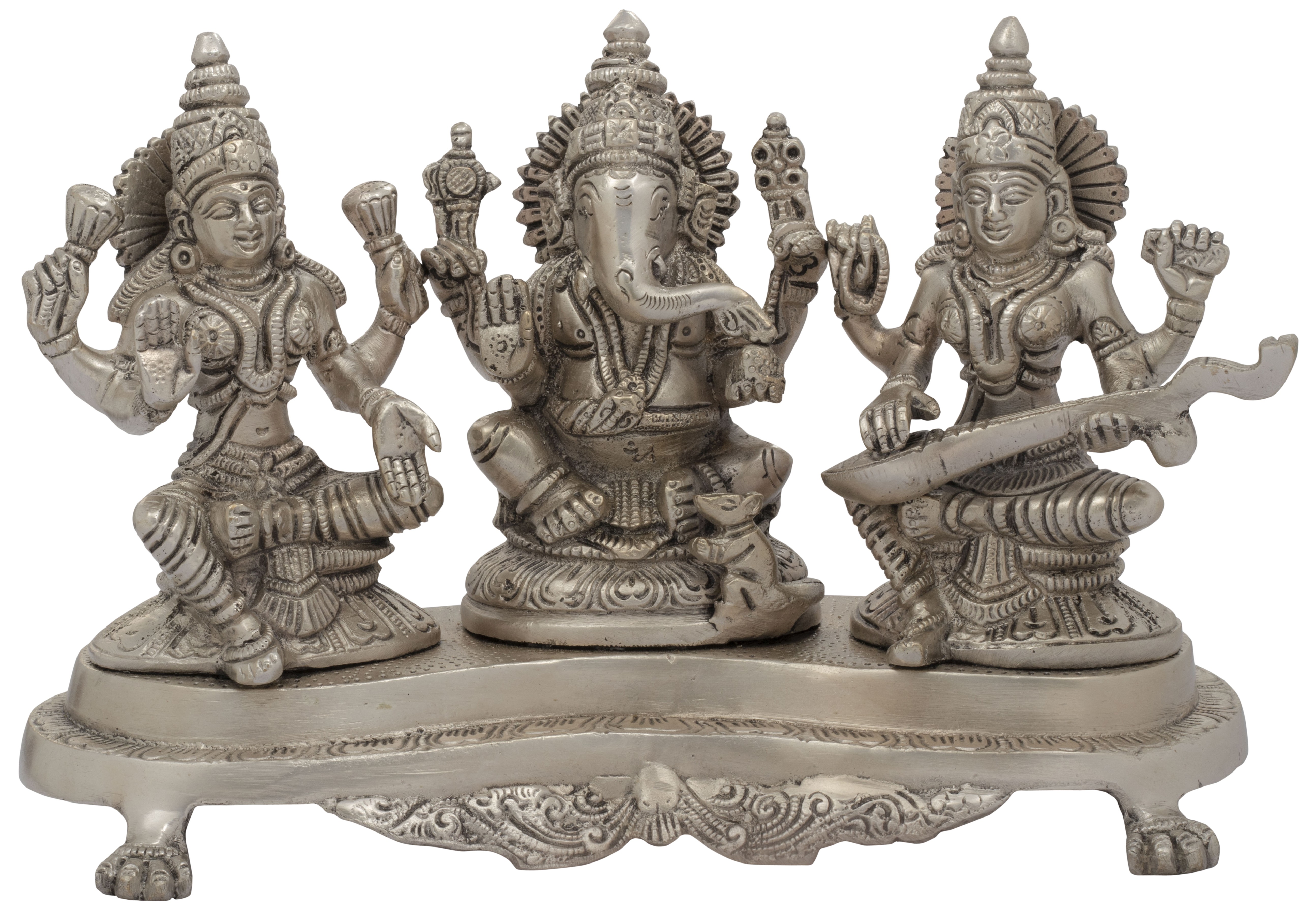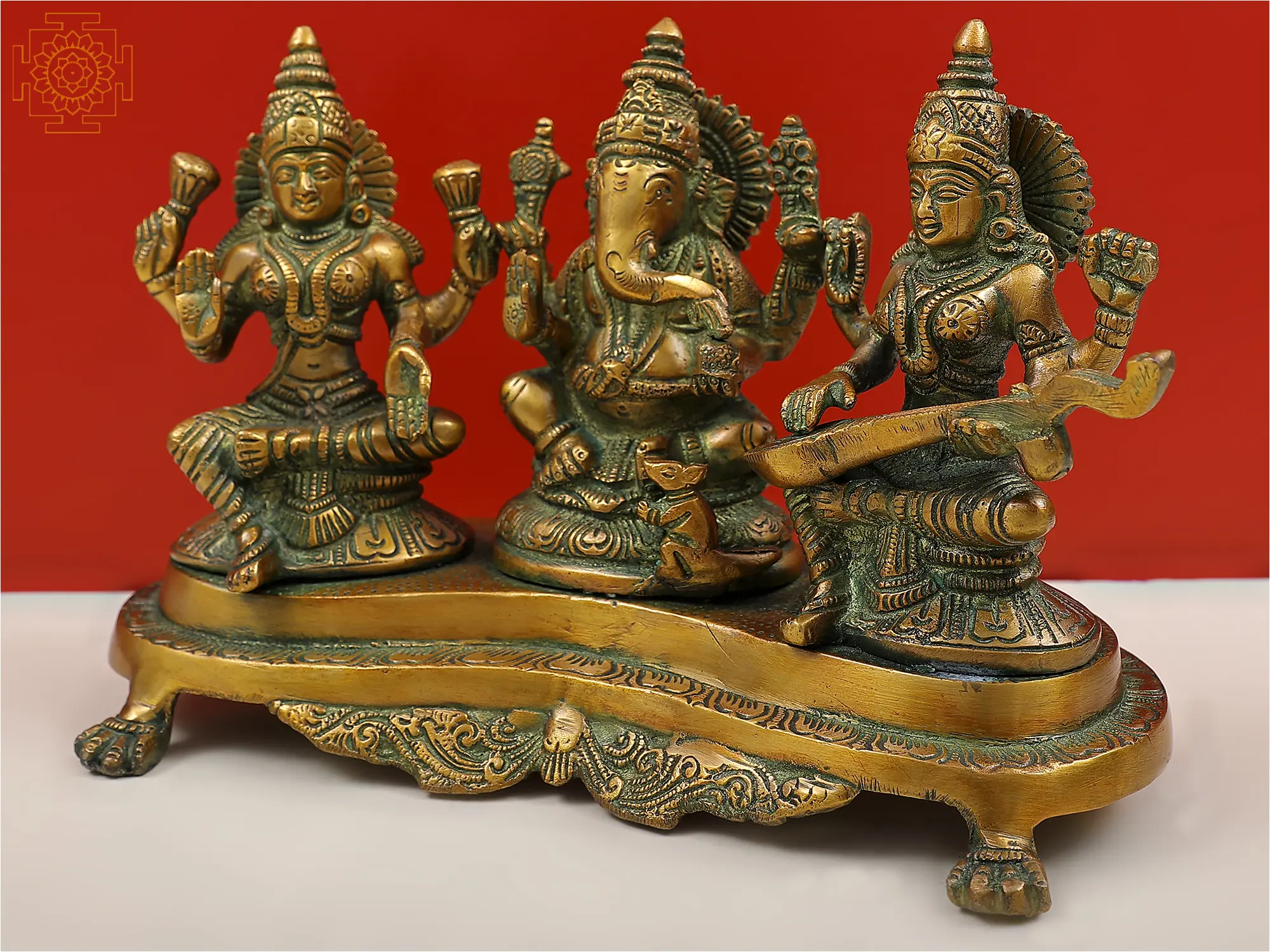 This small brass statue of Lakshmi, Ganesha, and Saraswati beautifully encapsulates the essence of a harmonious and prosperous life. In Hindu tradition, it is believed that knowledge (Gyan) leads to wealth (Dhan), and to preserve that wealth, one needs goodness (Shubh). This trio represents the perfect balance of Shubh (goodness), Labh (wealth), and Gyan (knowledge) - the essential elements for a happy and prosperous life. By placing this statue, one invites the divine energies associated with these deities, fostering positivity and attracting blessings for knowledge, wealth, and goodness. This exquisite piece is a source of inspiration and a reminder of the holistic elements necessary for a fulfilling and joyful life.