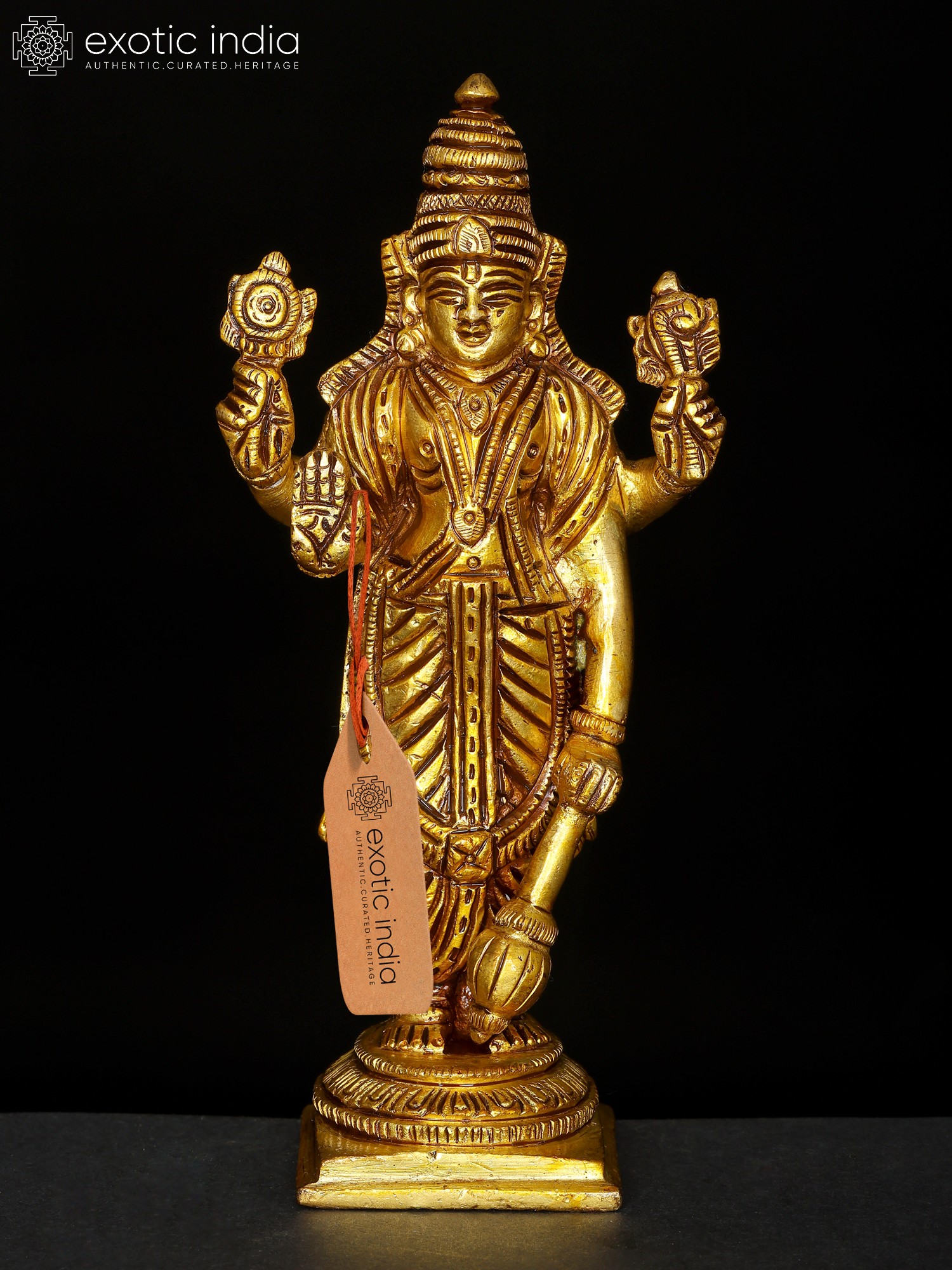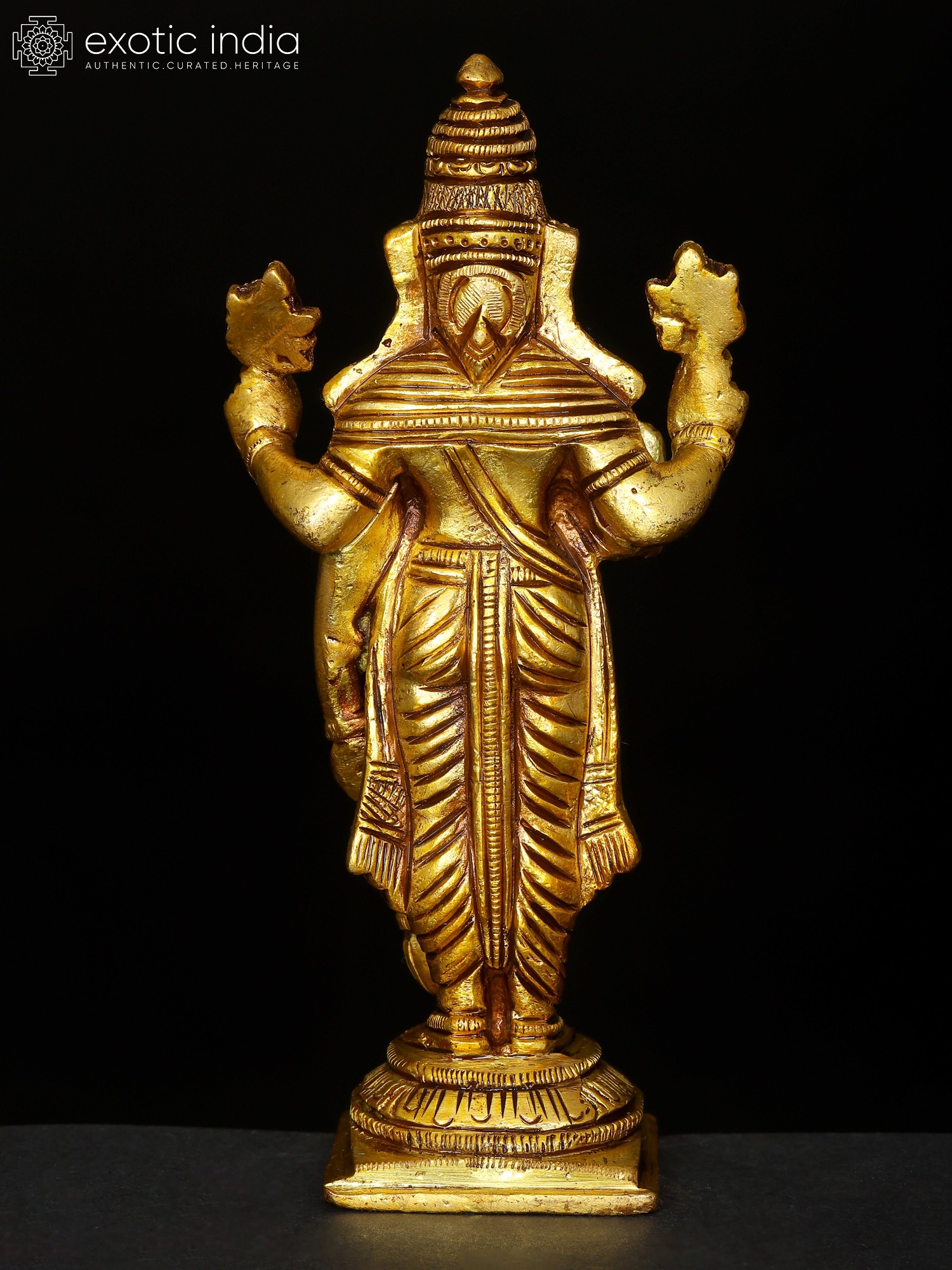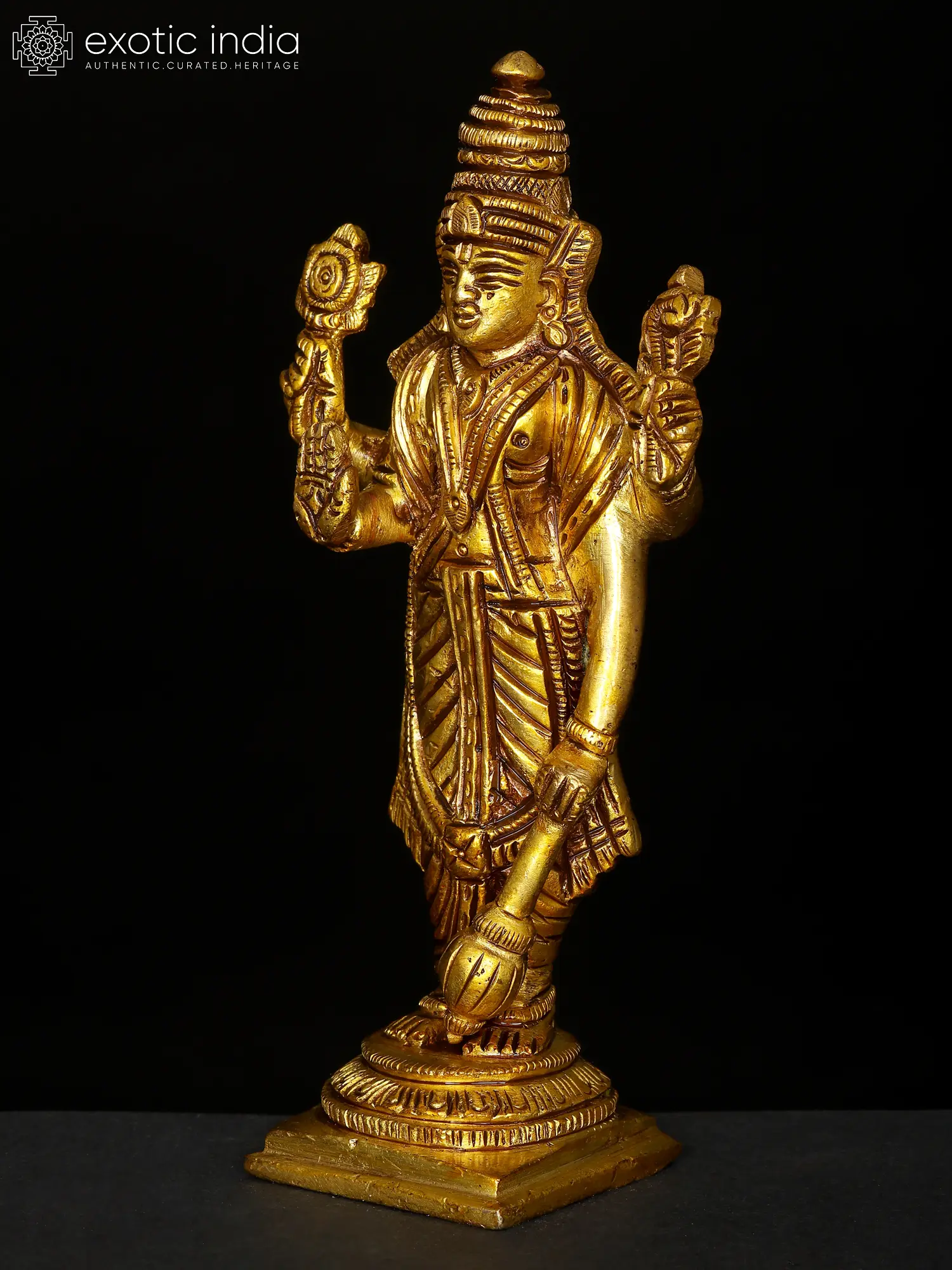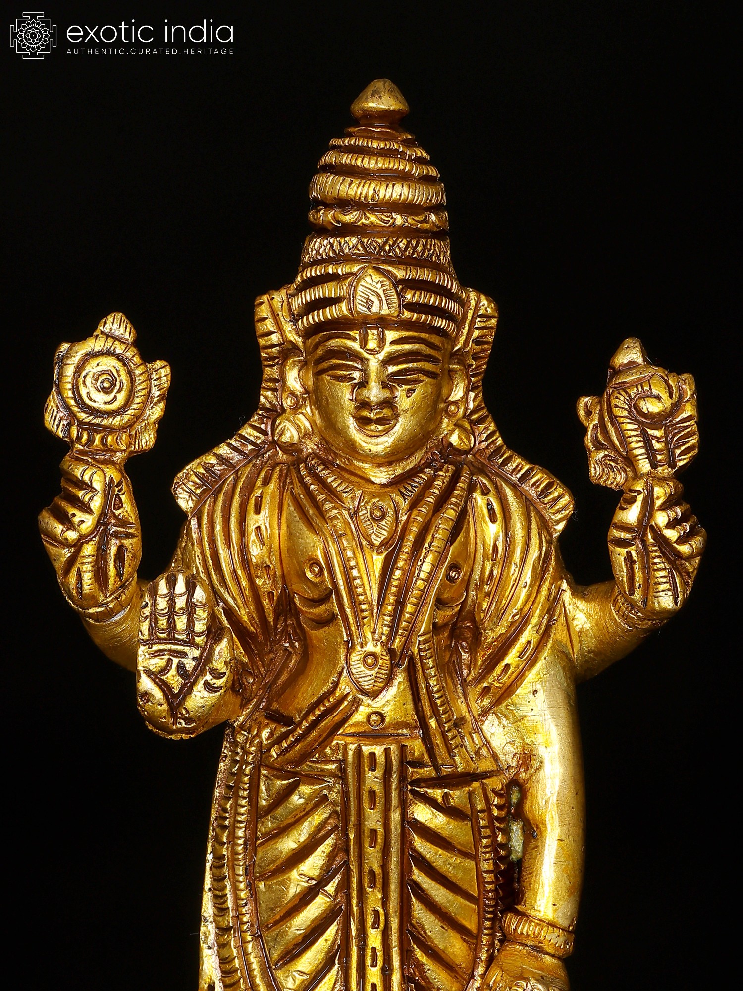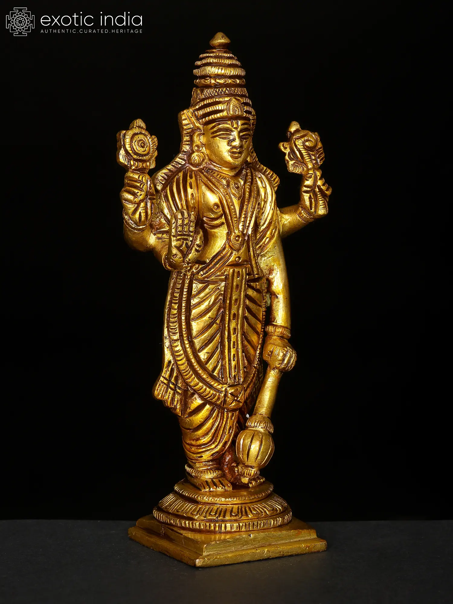13" Four Armed Standing Lord Vishnu Brass Statue | Home Temple Murti