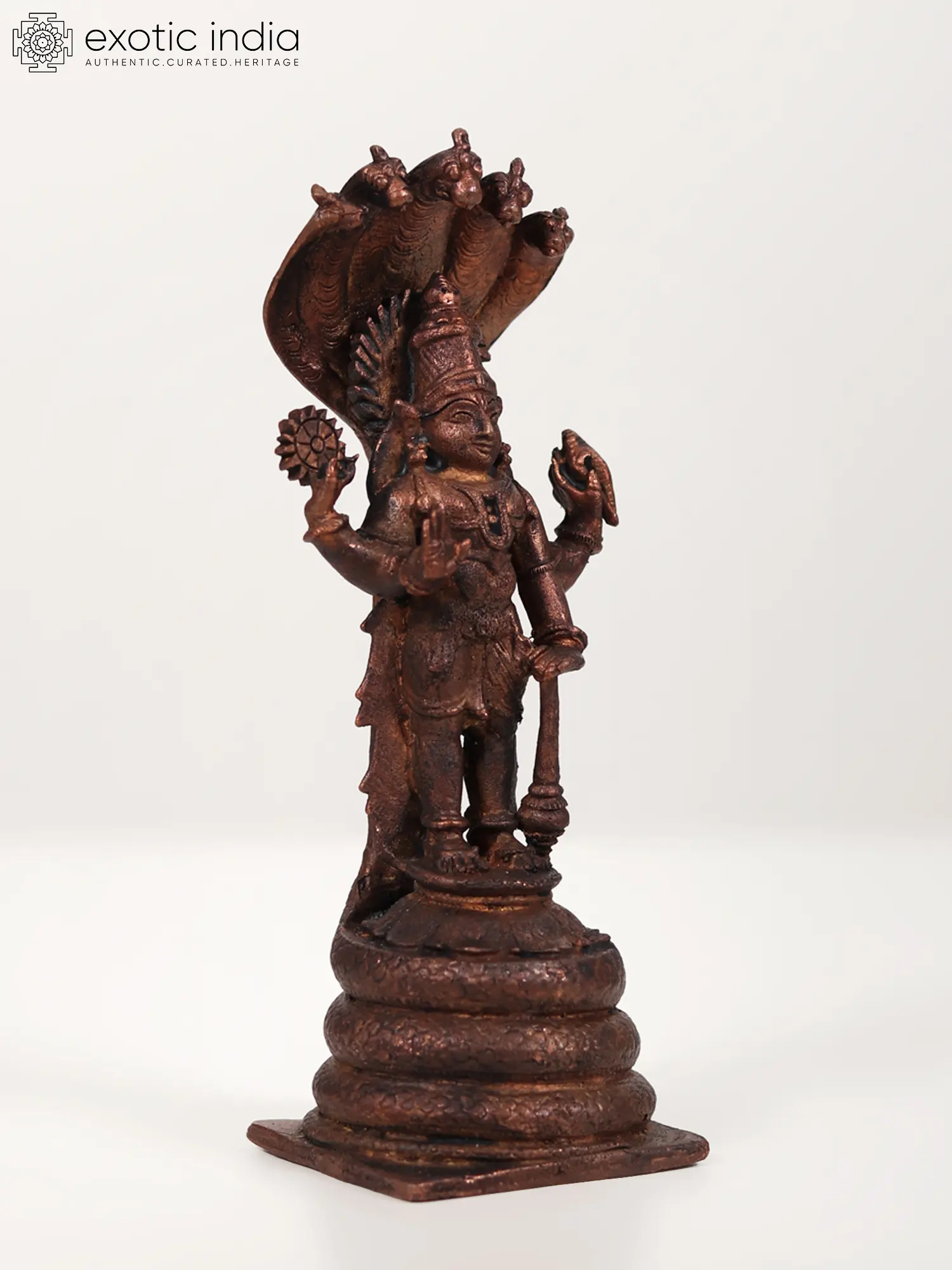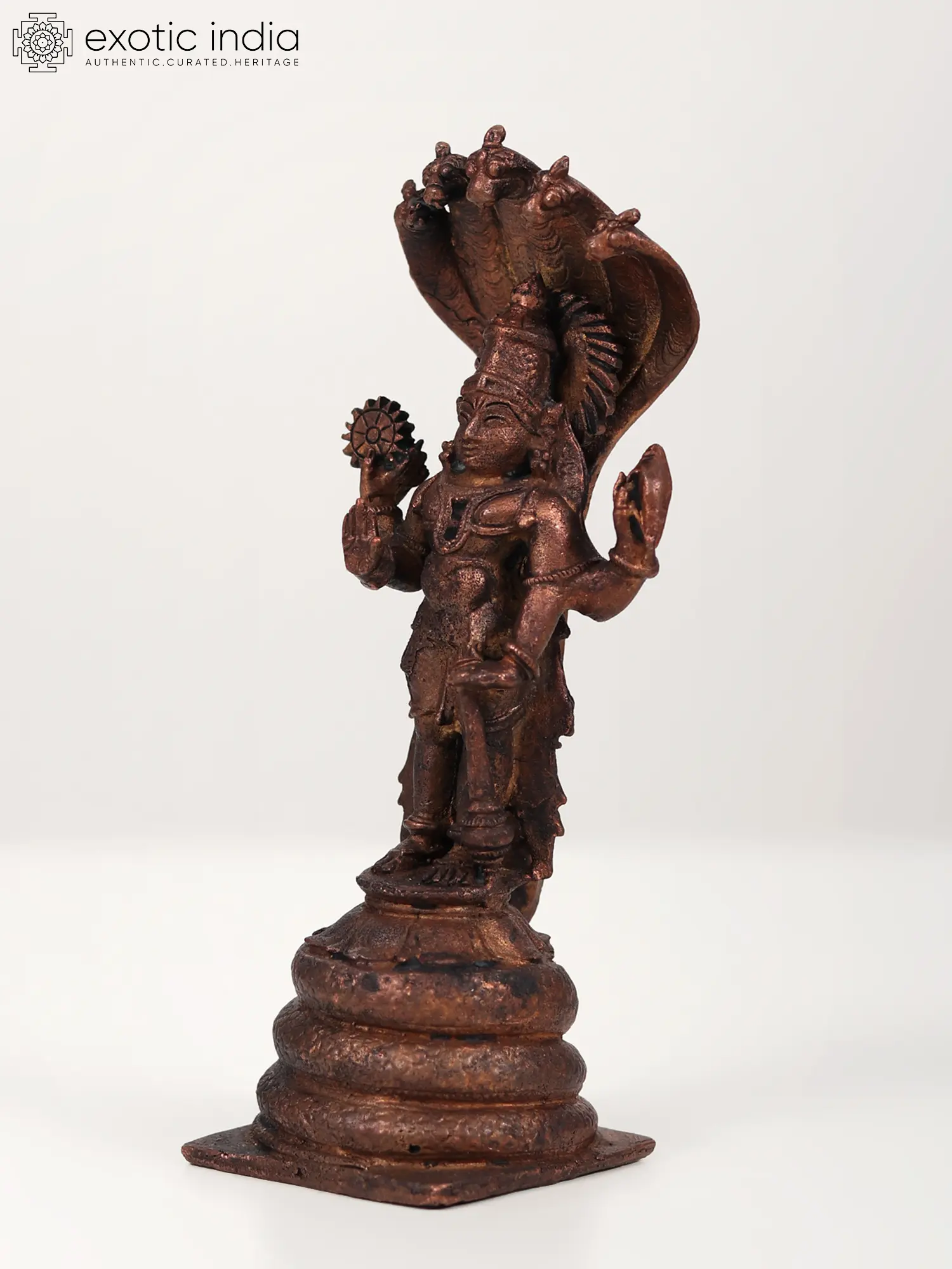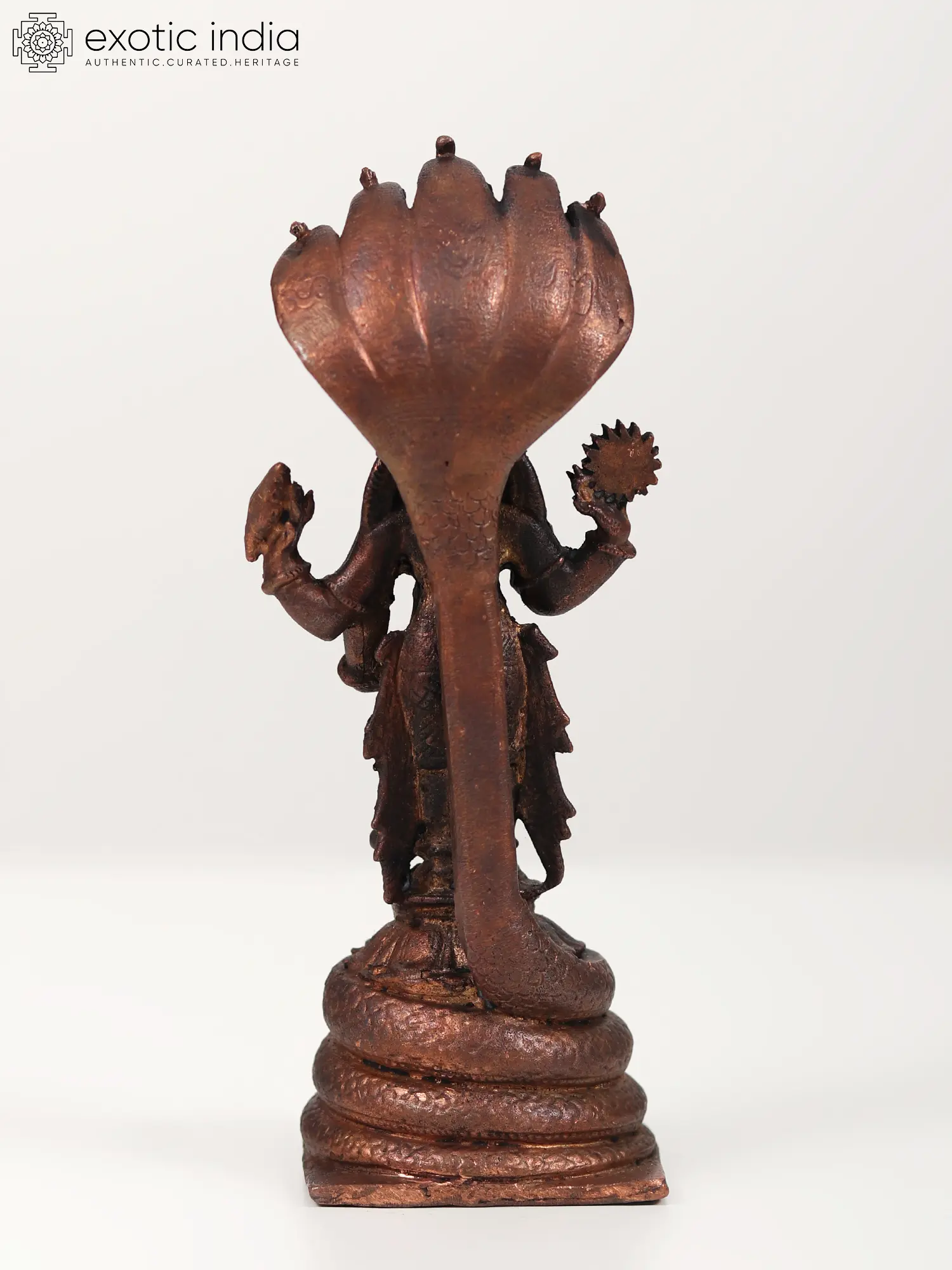 6" Small Lord Vishnu Idol Standing on Sheshnag | Copper Statue