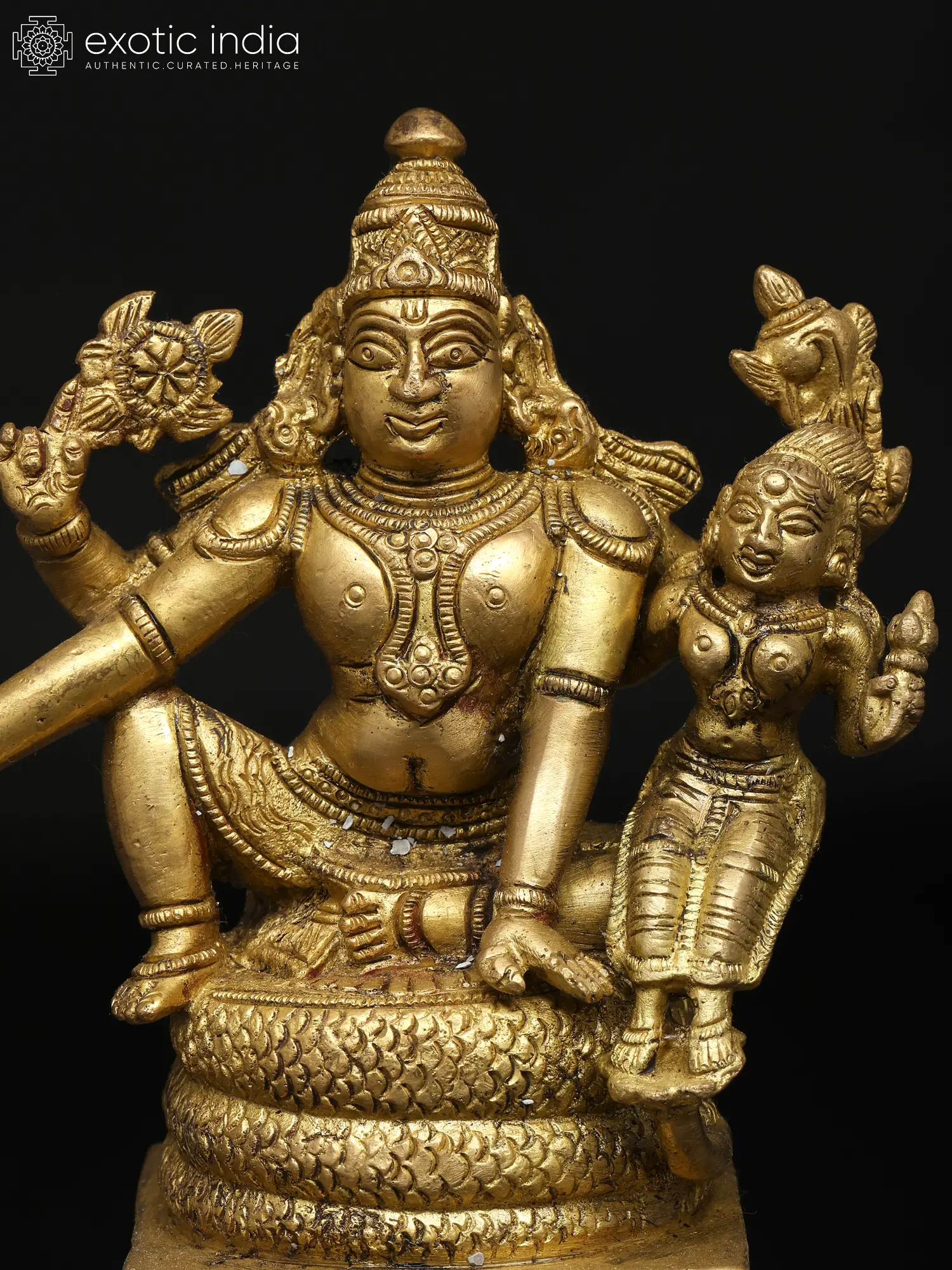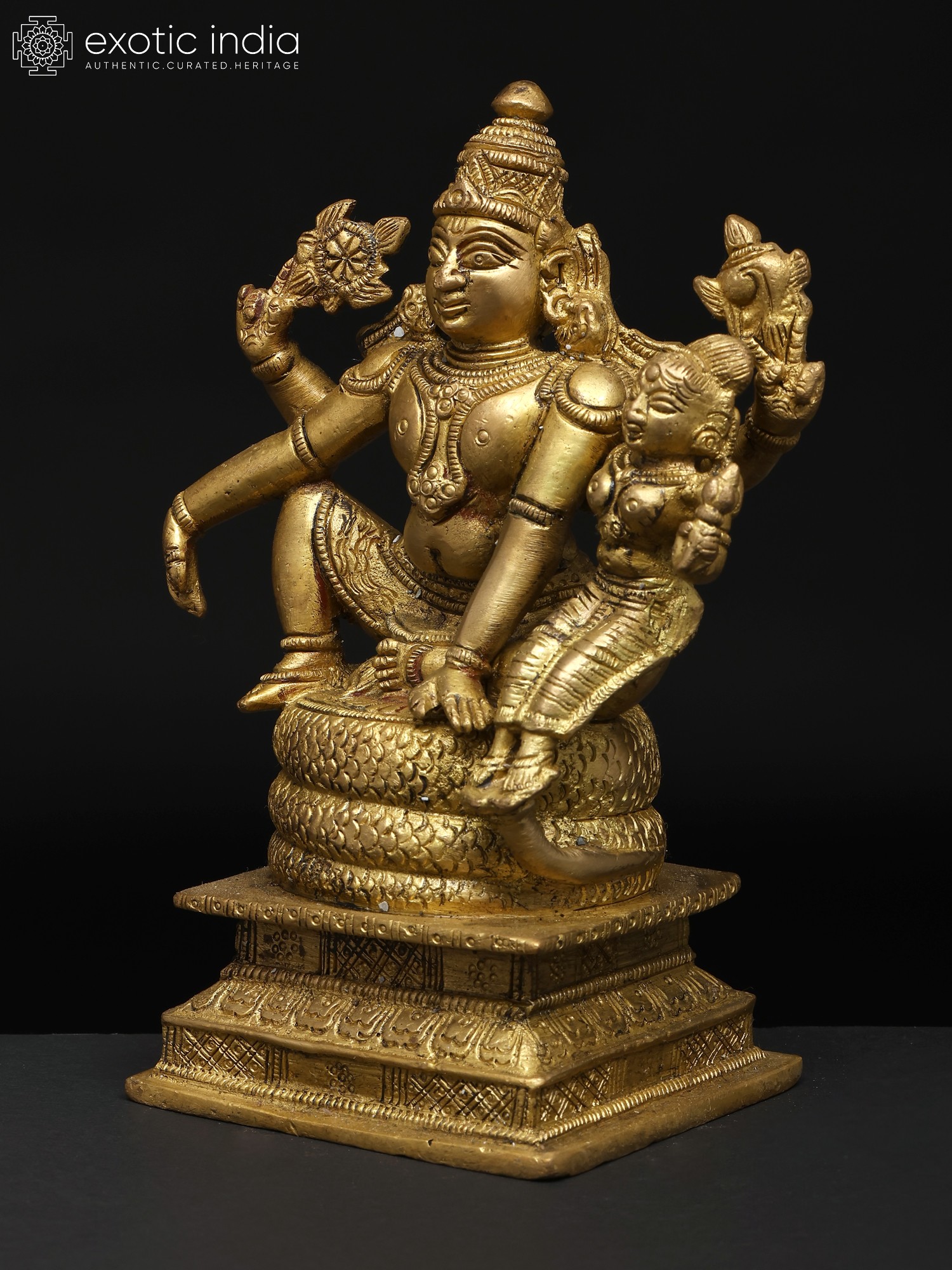 9" Lord Vishnu and Goddess Lakshmi In Brass | Handmade | Made In India