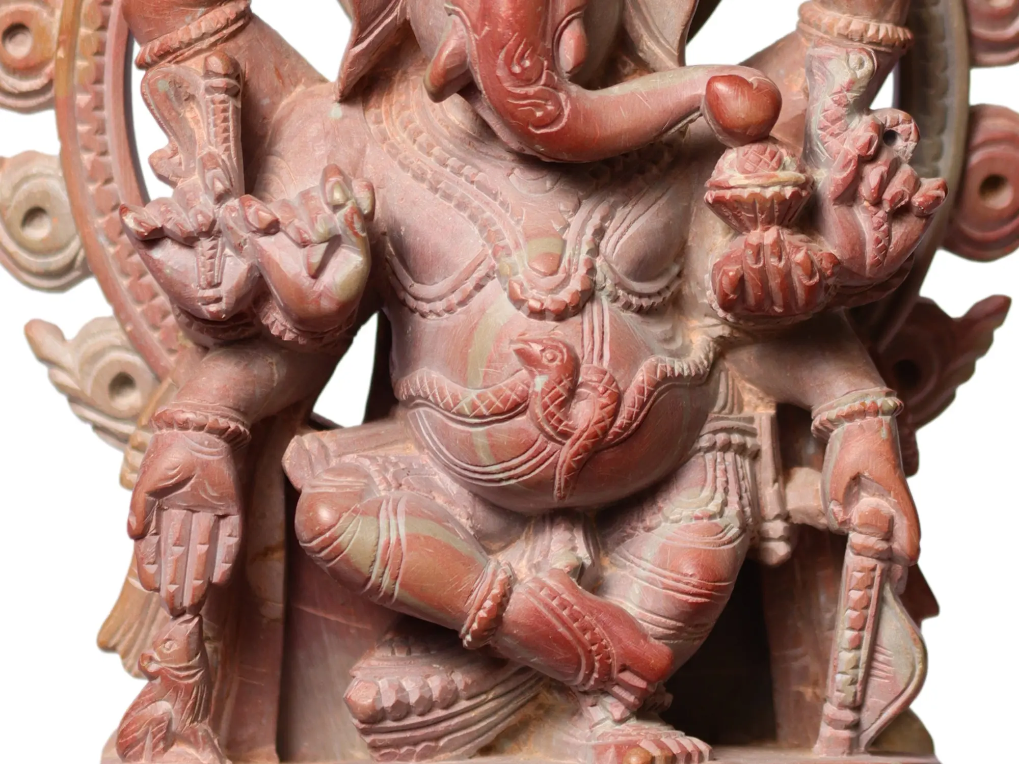 5" Brass Lord Ganesha Statue Sitting on Traditional Khat