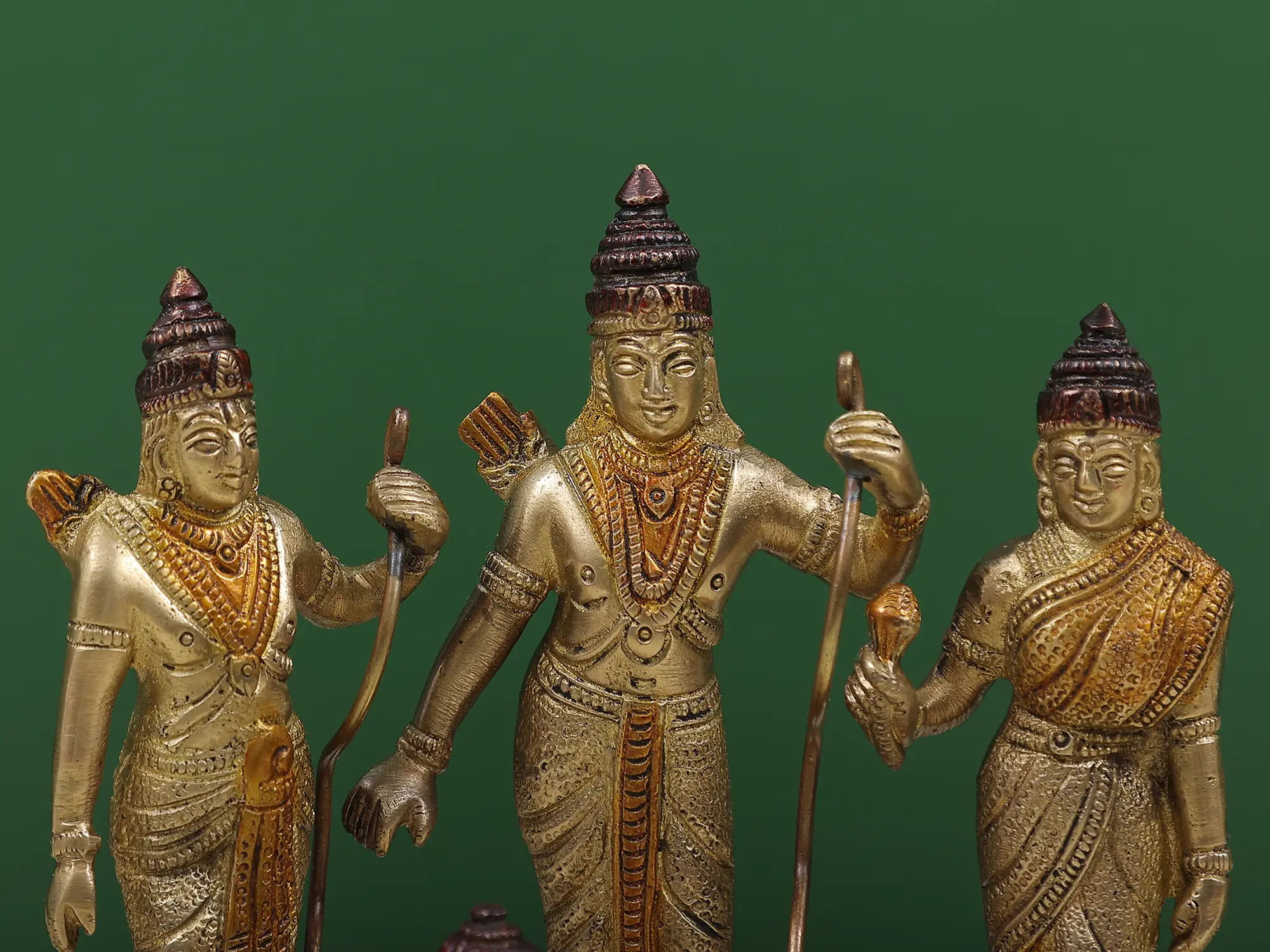 Enter the enchanting world of Indian mythology and divine grace with this beautiful Ram Durbar in Brass. This exquisite brass sculpture captures the essence of Lord Rama's royal court, a place where righteousness and divine wisdom reigned supreme. This Rama Durbar in Brass is a window into the epic tale of the Ramayana, where virtue triumphs over vice and divine ideals guide human existence.