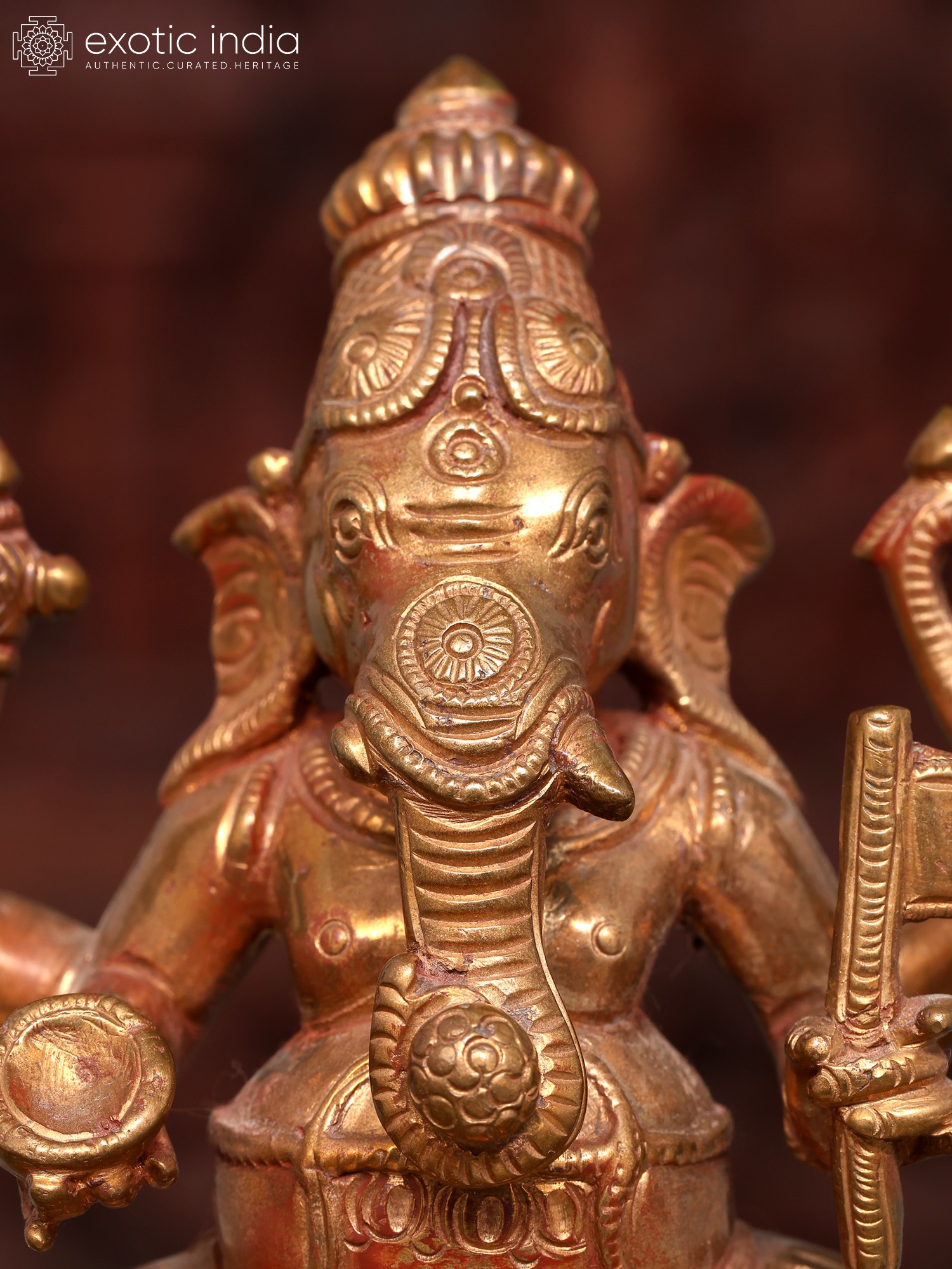 6" Small Lord Ganapati Seated on Rat | Bronze Statue