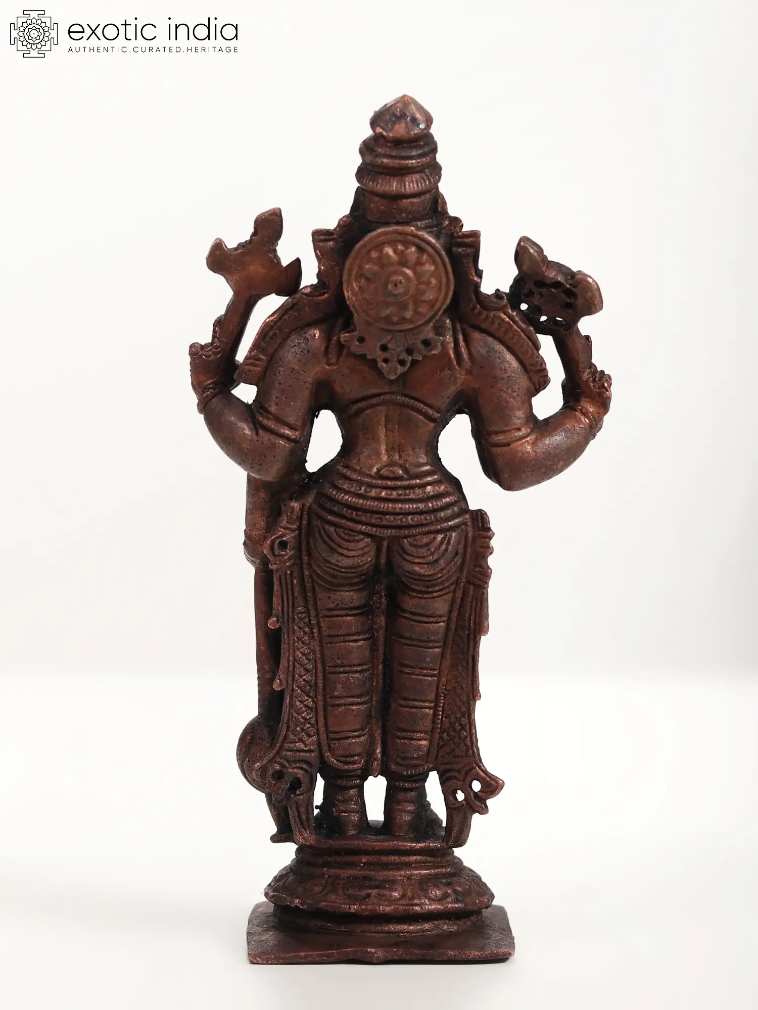 This Small Standing Lord Narasimha in Blessing Gesture Copper Statue exudes divine grace and power. Lord Narasimha, a unique incarnation of Lord Vishnu, is finely crafted in copper. The statue captures the moment of divine assurance as Narasimha extends his hand in a blessing gesture, symbolizing protection and fearlessness.