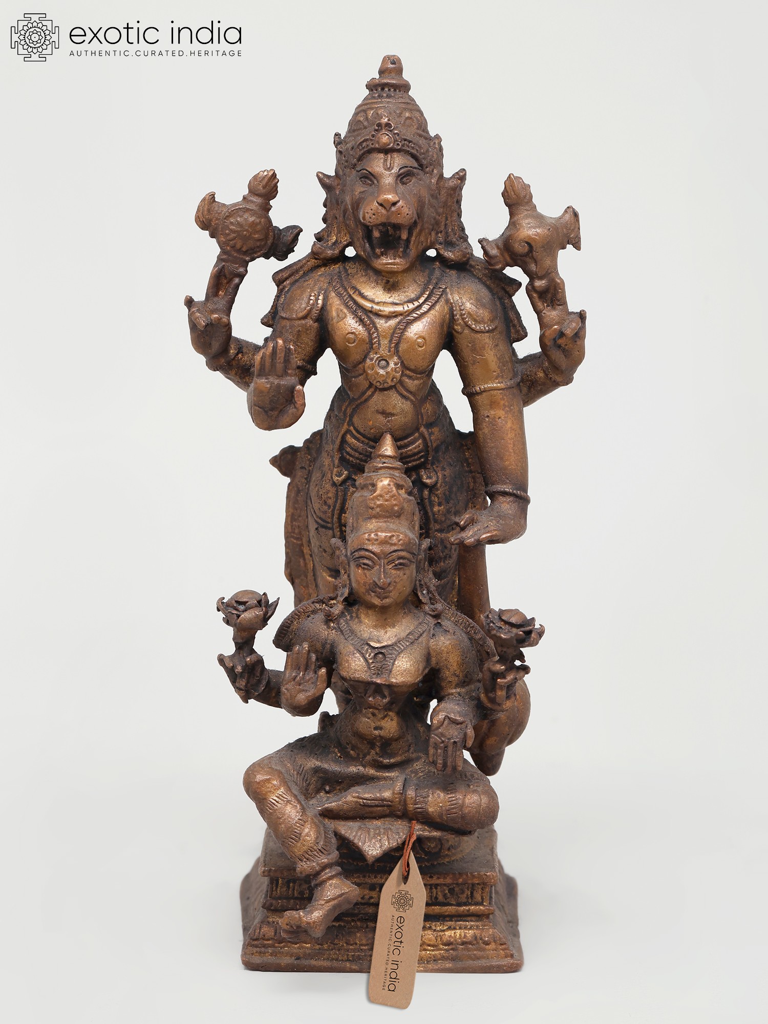5" Small Lakshmi - Narasimha Seated on Sheshnag | Copper Statue
